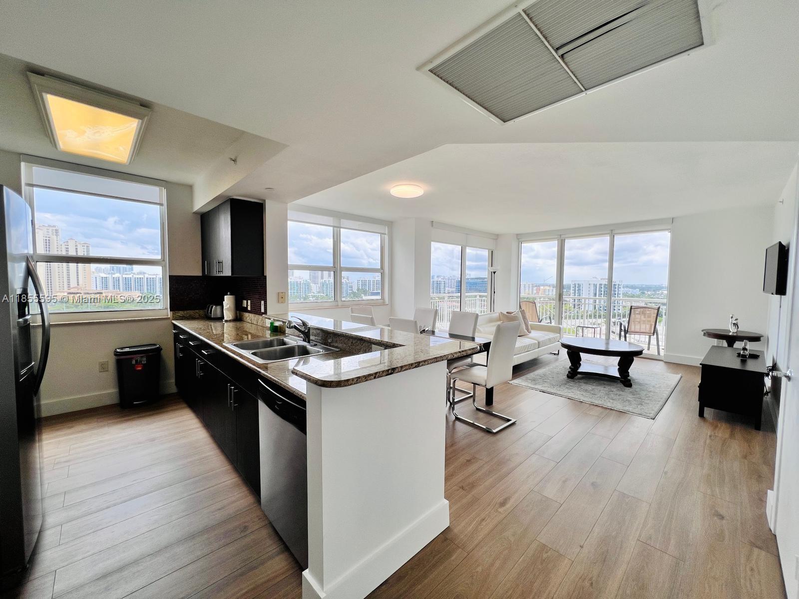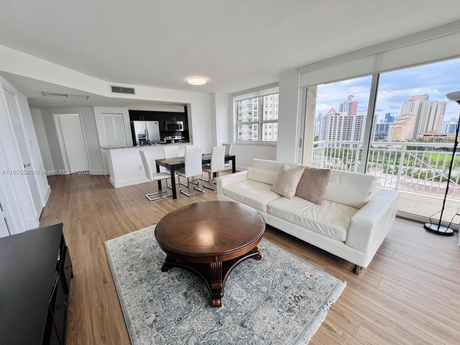 beautiful and spacious 2 bedroom 2 bathroom apartment. Kitchen w/granite countertops, stainless steel appliances & mosaic backsplash. Amazing views of the city, all amenities included, close to great schools, Aventura shopping and restaurants. 6 month minimum lease. For showings please call or text listing agents with 24 hr notice!