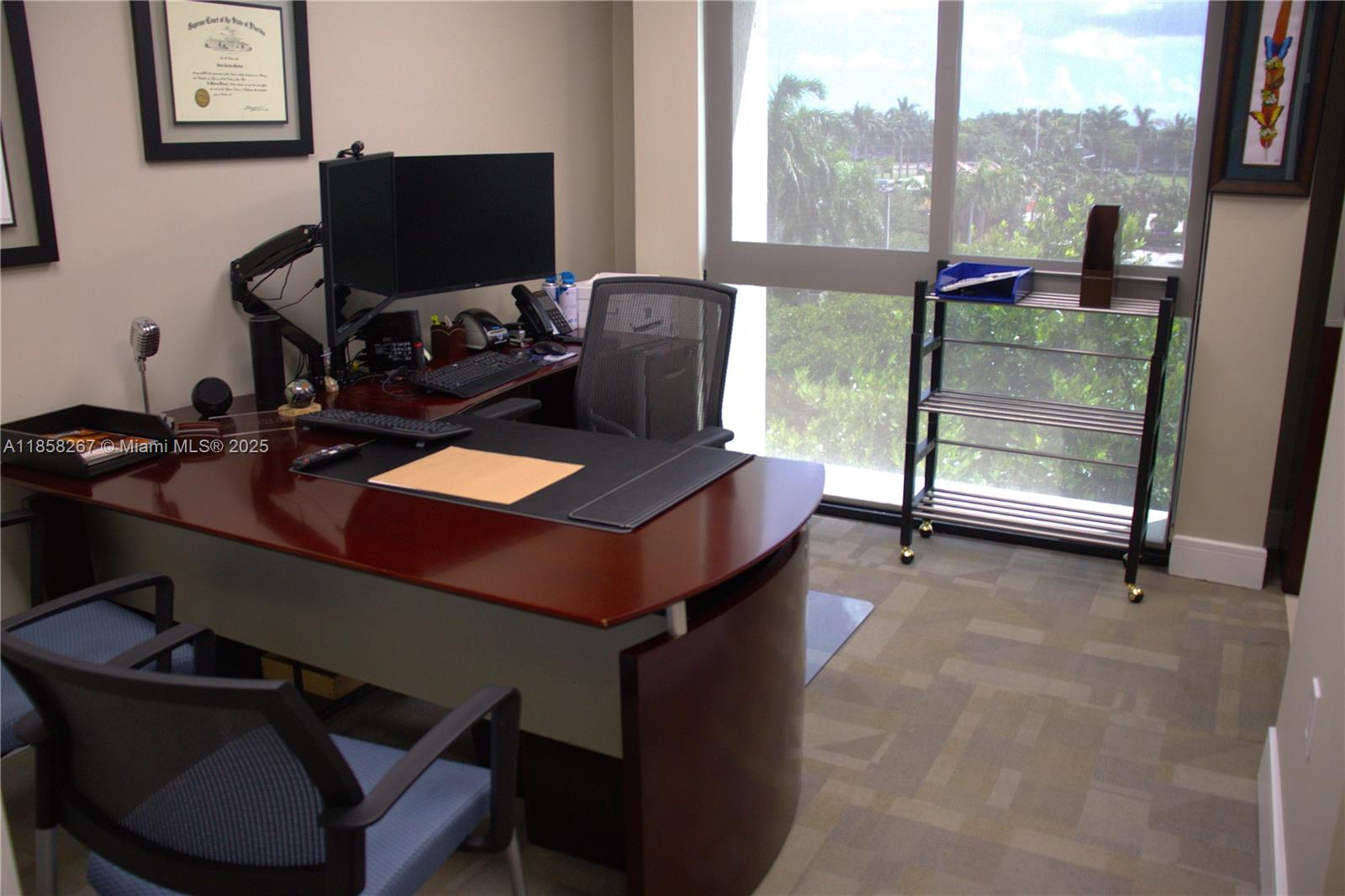 Great furnished office with reception area, six private offices and conference room, great location 3 minutes from the Turnpike entrance at 57 Ave, great location, just north Dade and Broward county line. Triple net rent, unit is currently occupied, it will be available at the beginning of Oct 2025. 2 assigned parking spaces and lot of free, as per owner, all windows are impact, parking in front of the building.
