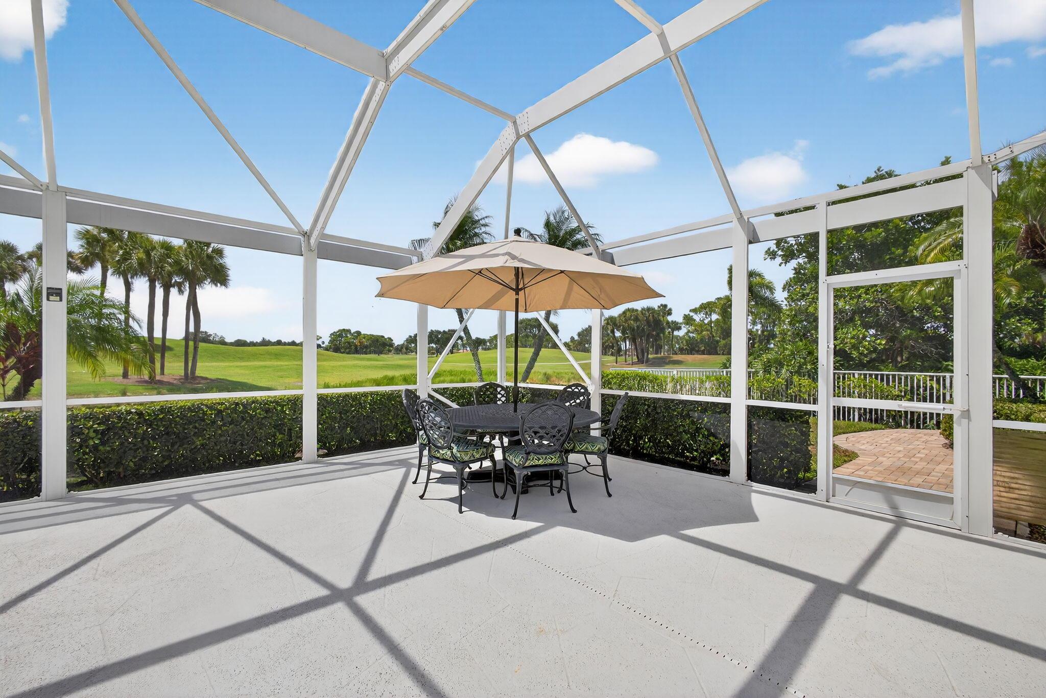 Spend the winter season in this beautifully appointed, clean, & bright home located in the desirable gated community of Augusta Pointe in PGA National. Overlooking the famed Champion Course where the Cognizant Classic is played, you can watch players walk from the 17th green to the 18th tee right from your patio. The property features a large heated pool, perfect for laps, & a spacious screened-in patio with oversized awnings for shade--ideal for entertaining or relaxing, Impact Windows & Doors, & a full house gas generator. Inside, the home is tastefully furnished, comfortable, and move-in ready, offering everything needed to enjoy Florida's warm winter weather & beautiful sunsets. Augusta Pointe combines a prime, location with the luxury lifestyle of PGA National.