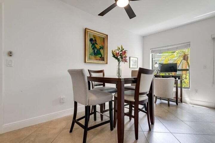 This beautifully maintained and move in ready first floor 1 bedroom 1 bath fully furnished residence is located in the highly desirable Tennis Lodges within Palm Beach Polo Club. The home offers a full kitchen appointed with stainless steel appliances and tile throughout the unit. The spacious primary suite includes a walk in closet and sliding glass doors that open to a spacious covered patio, perfect for relaxing outdoors. Enjoy a prime location within Wellington plus convenient parking and guest parking just steps away. Residents benefit from a gated community with 24 hour security patrols, beautiful walking trail and restaurants within walking distance.This unit is available for seasonal, off season or
