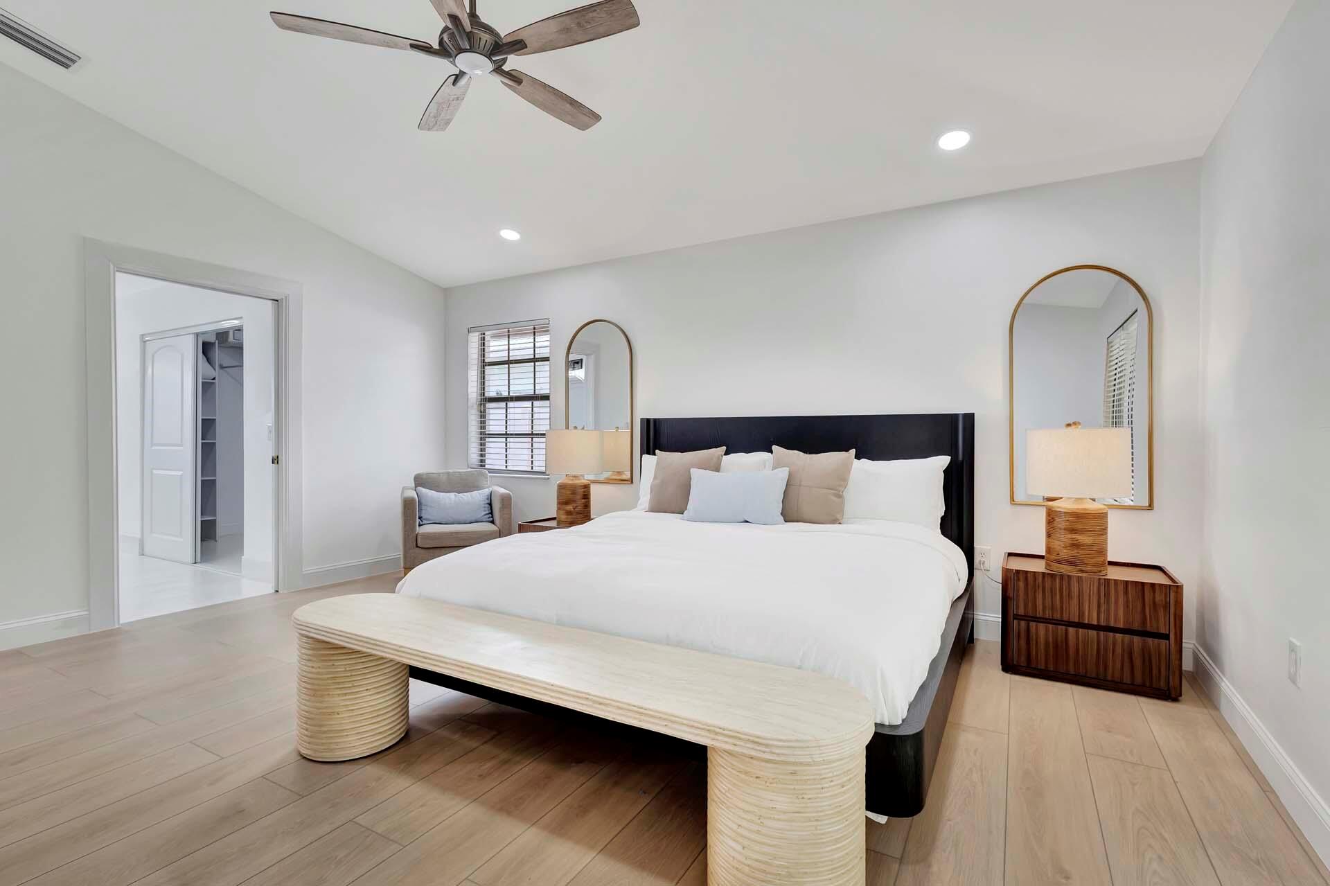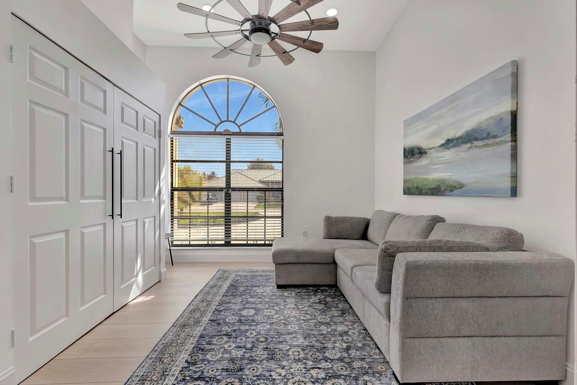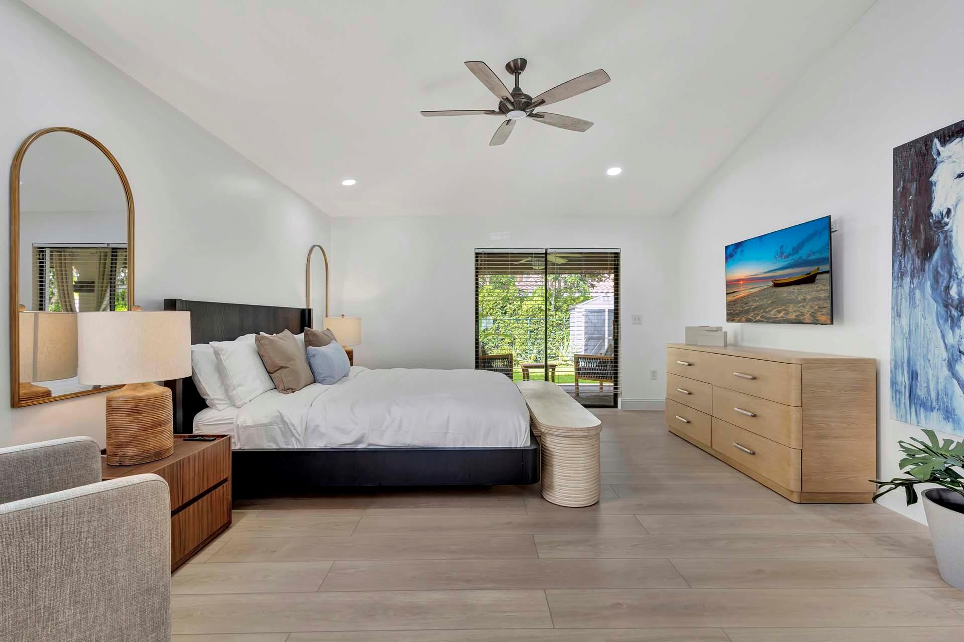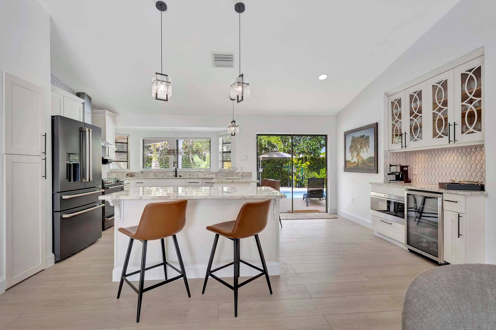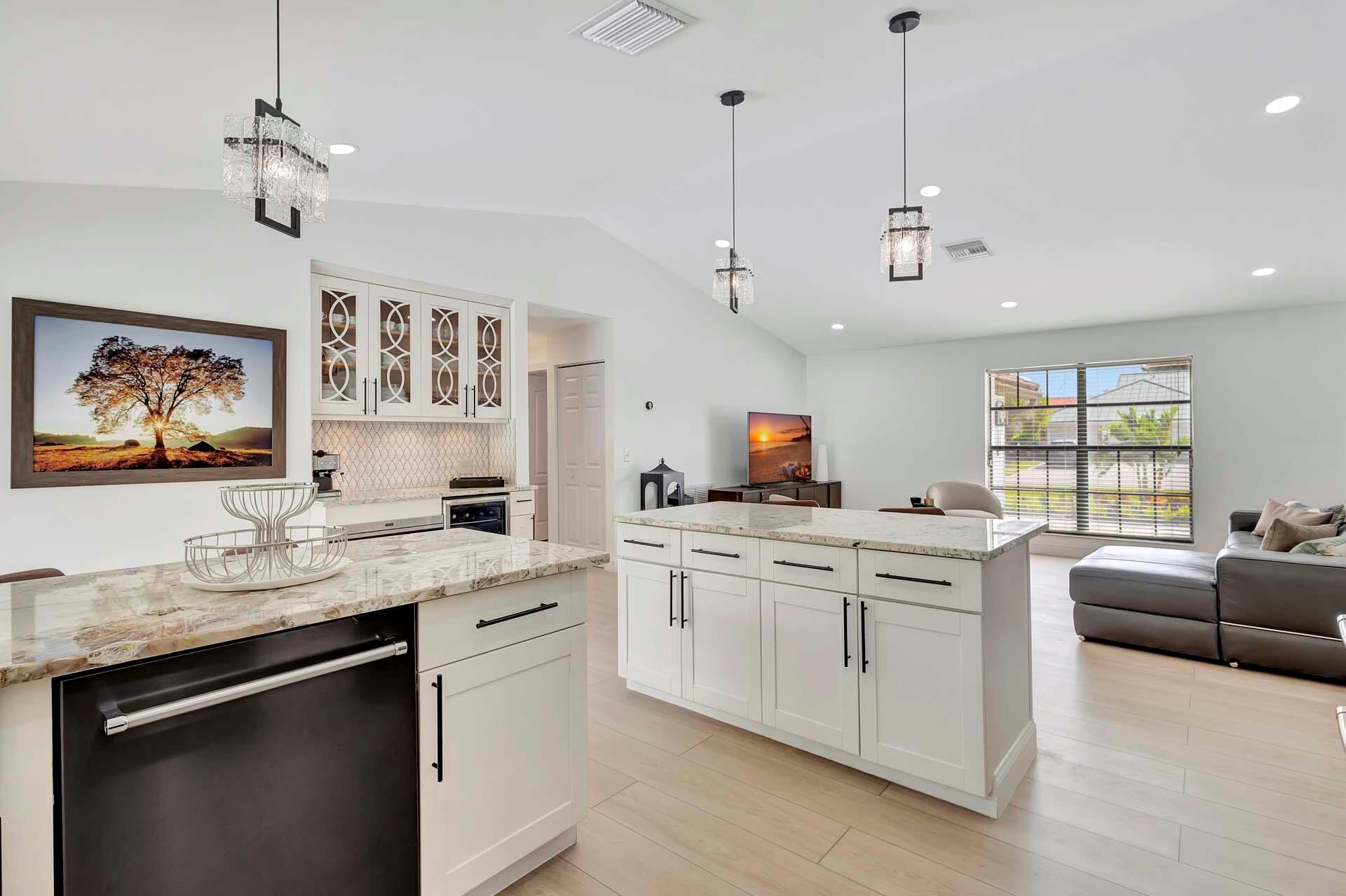 This stunning 4-bedroom, 2-bath home exemplifies luxury living. Completely updated with brand-new furnishings. Enjoy a spacious split floor plan and an open-concept design that will impress. The fourth bedroom, furnished with a double sofa bed, serves as a versatile den/office. This home offers multiple exquisite living and entertaining spaces, leading to a fully fenced, private tropical oasis with a large lanai, pool, and several gazebos for shade and relaxation. It features a 2-car garage and an oversized driveway for ample parking. Conveniently located, it's just a short distance from all amenities and less than 3 miles from Wellington International and Global. The roof was replaced in 2021. New impact doors and windows.
