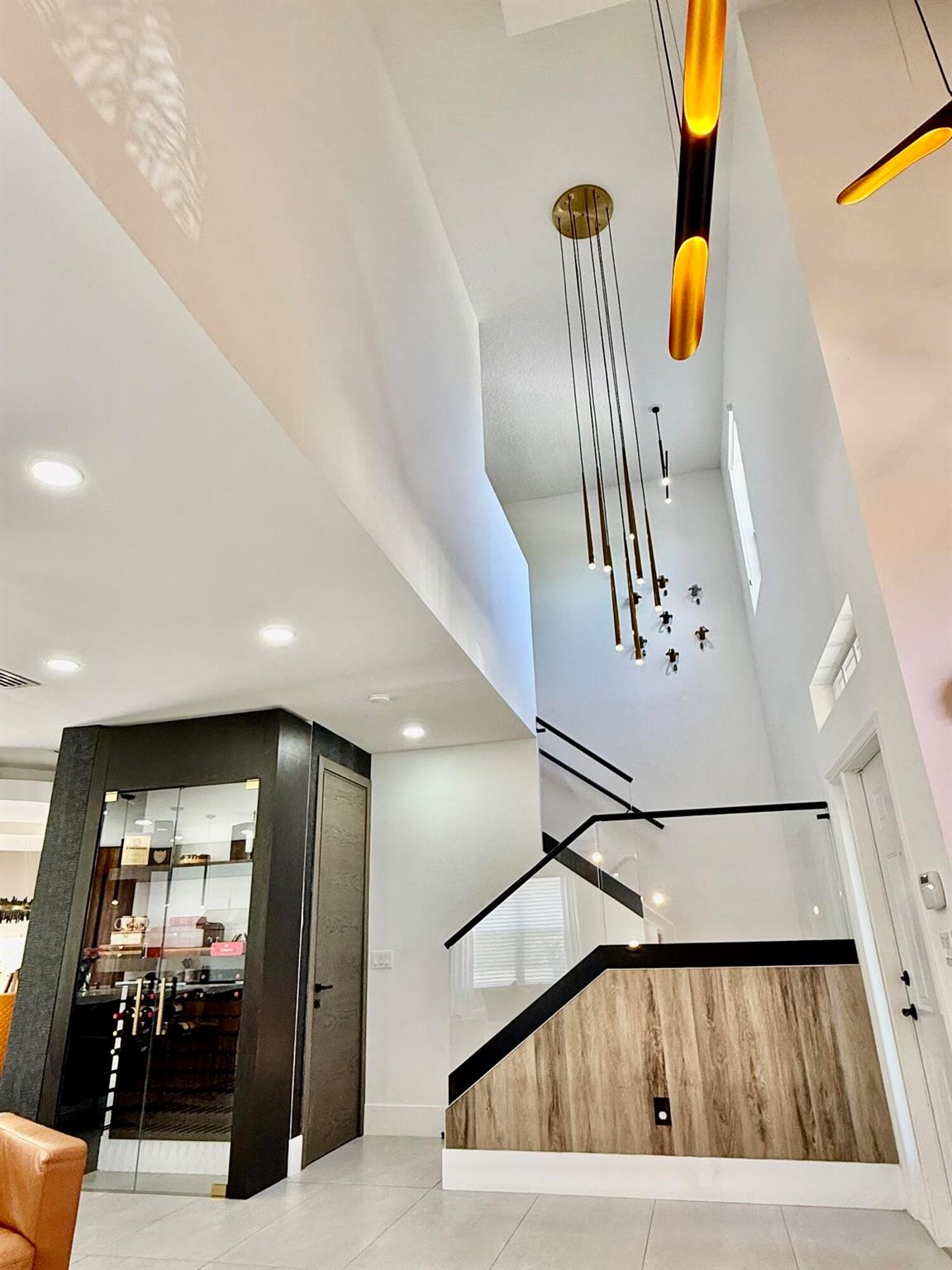 This newly renovated 4-bed, 2.5-bath home is located in a secure, family-oriented gated community. Featuring luxury finishes and modern updates throughout, this turn-key property offers both style and comfort. Inside, the kitchen is a true showstopper, boasting an oversized white quartz waterfall island with custom cabinetry, perfect for entertaining or casual dining. The kitchen is outfitted with high-end Viking appliances, including a gas stove with hood and a premium refrigerator. Additional fridge space is available in the garage. The open-concept living areas include elegant porcelain tile floors downstairs, gorgeous lighting fixtures in the living room and stairwell, and a custom-built, glass-enclosed wine rack set into the wall. The upstairs features four spacious bedrooms all