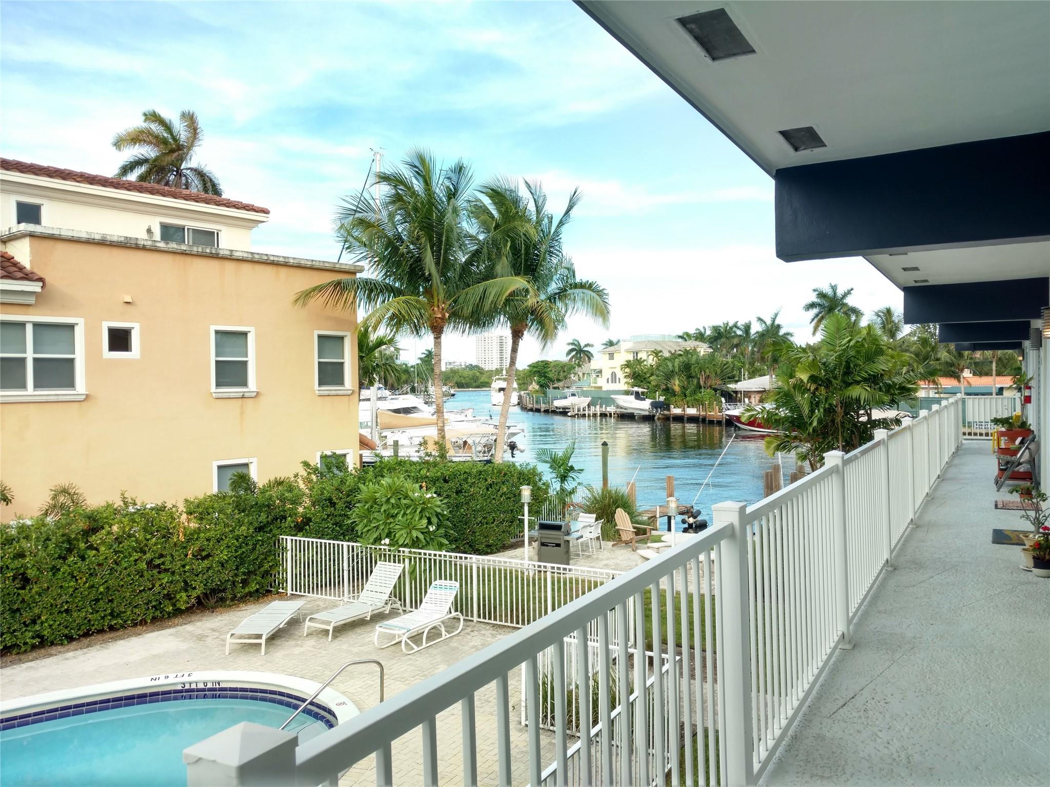 Rarely available 1-bedroom, 1-bath unit in the highly sought-after East Fort Lauderdale/Coral Ridge area. Awesome 2nd-floor unit in a boutique-style complex located directly on Seminole Lake off the Intracoastal. Features include an updated kitchen and bath, and beautiful laminate flooring throughout. Relax by the pool, which is steps from your front door, or enjoy the water views from your window. Live where the millionaires live, close to George English Park, the Galleria Mall, fine restaurants, Publix, and Starbucks. Laundry on premise, Annual Lease - unfurnished. Fast Approval.
