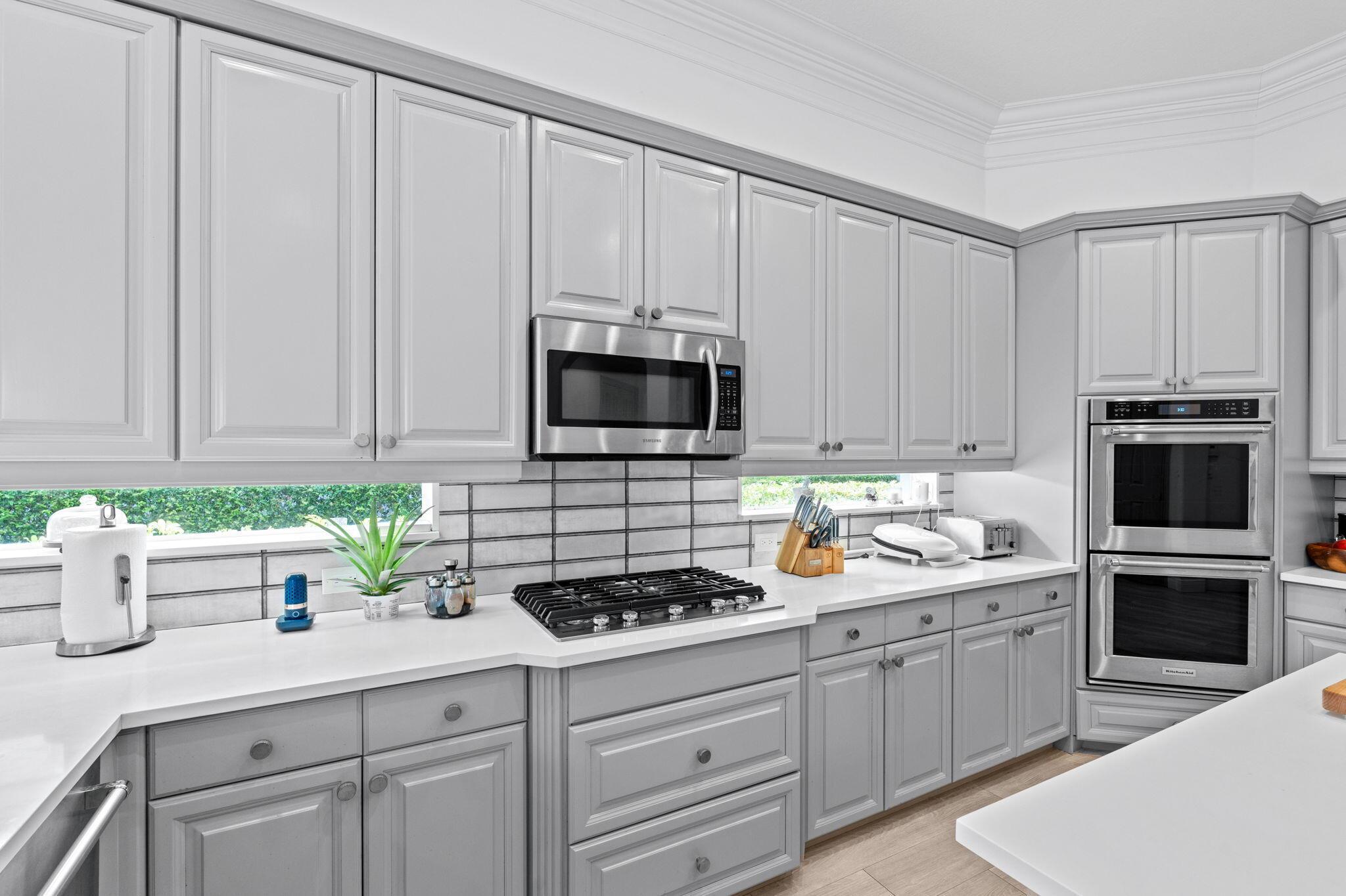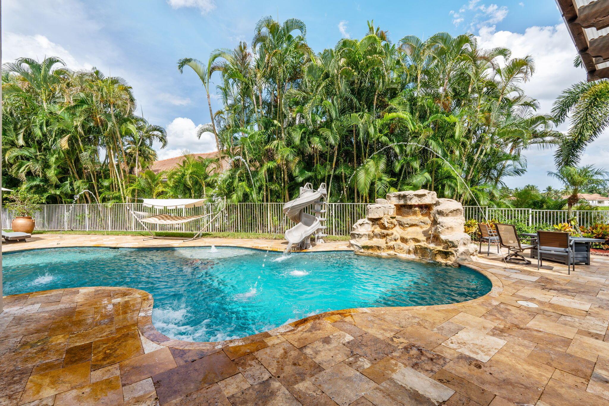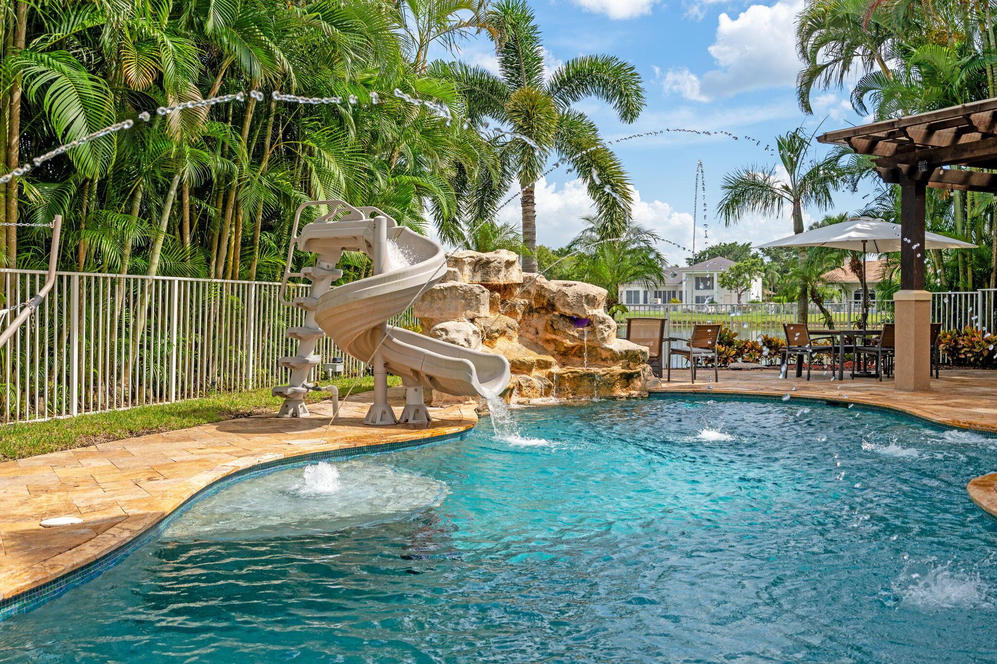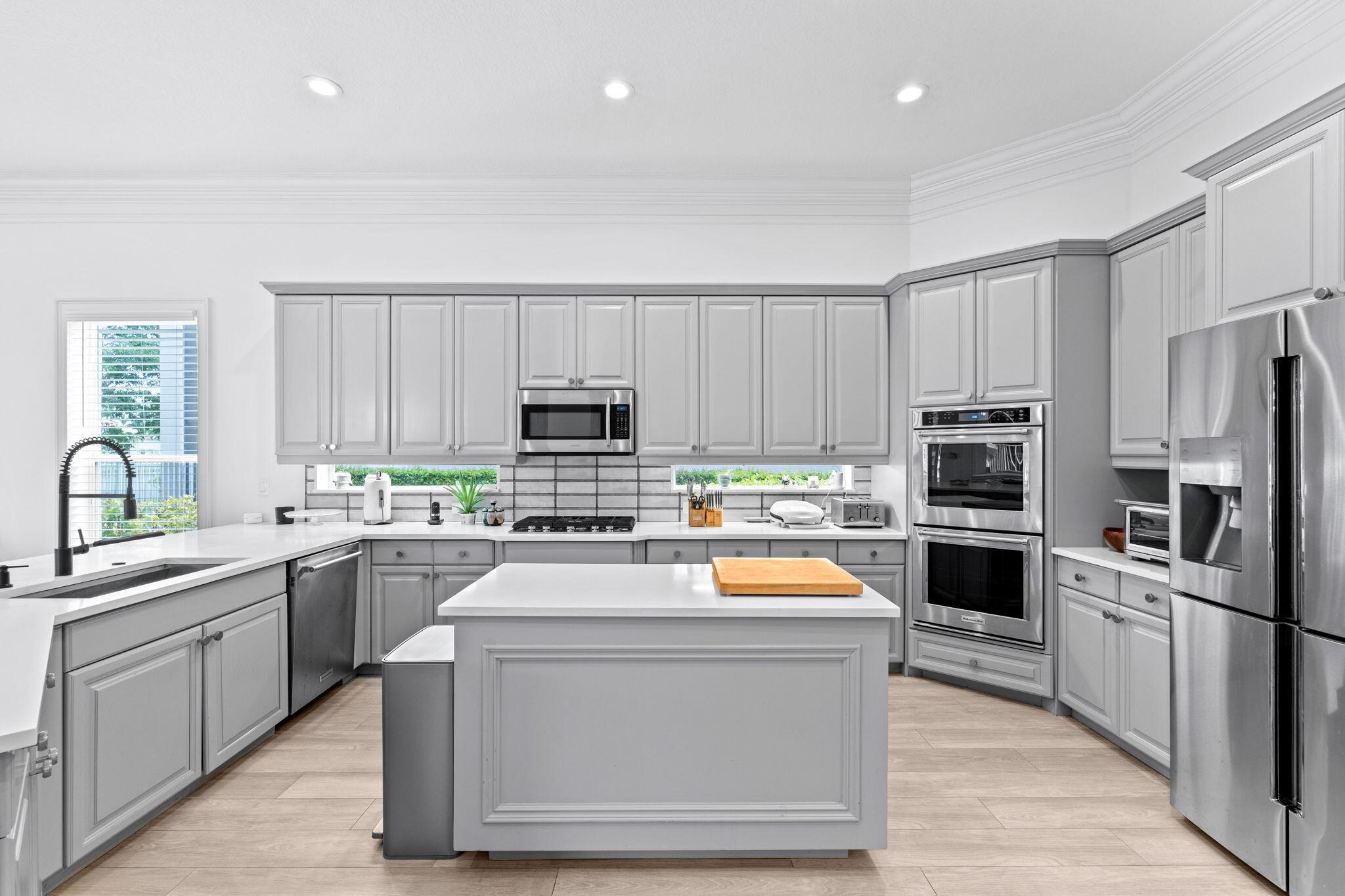 Welcome to this beautiful light-filled 6-bedroom, 4.5-bath seasonal rental offering luxurious comfort, space, and style. Upon entering, a striking floor-to-ceiling rear window greets you, framing the backyard, resort-style pool, and water, filling the home with light and serenity, with abundant space and storage throughout. The first floor features wood-tile flooring, a guest suite with a cabana bath and pool access, and flexible living and dining areas perfect for entertaining. The open family room and breakfast nook flow seamlessly into the gourmet kitchen with a 5-burner double oven, oversized island, walk-in pantry, and backsplash windows that bring in even more natural light.