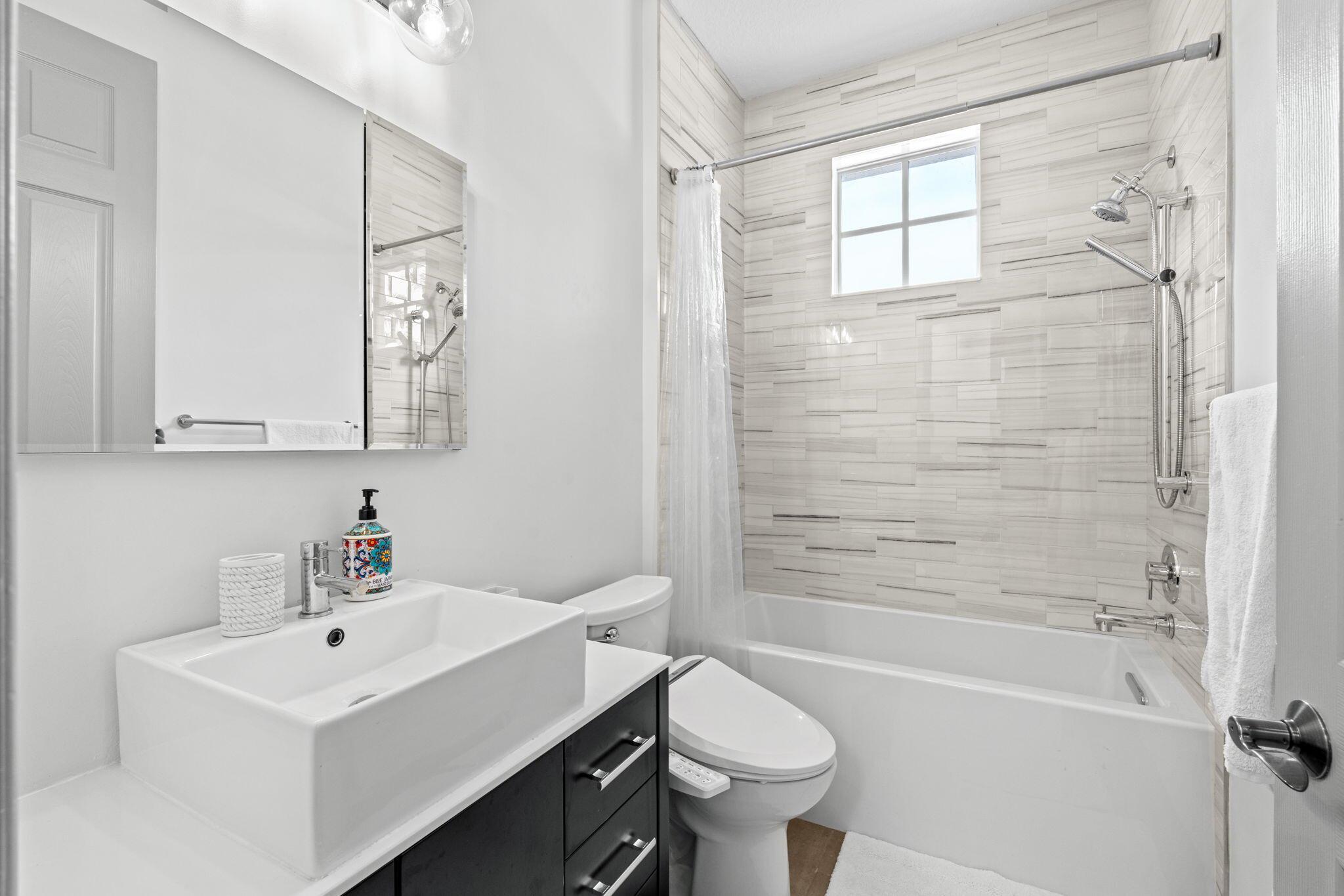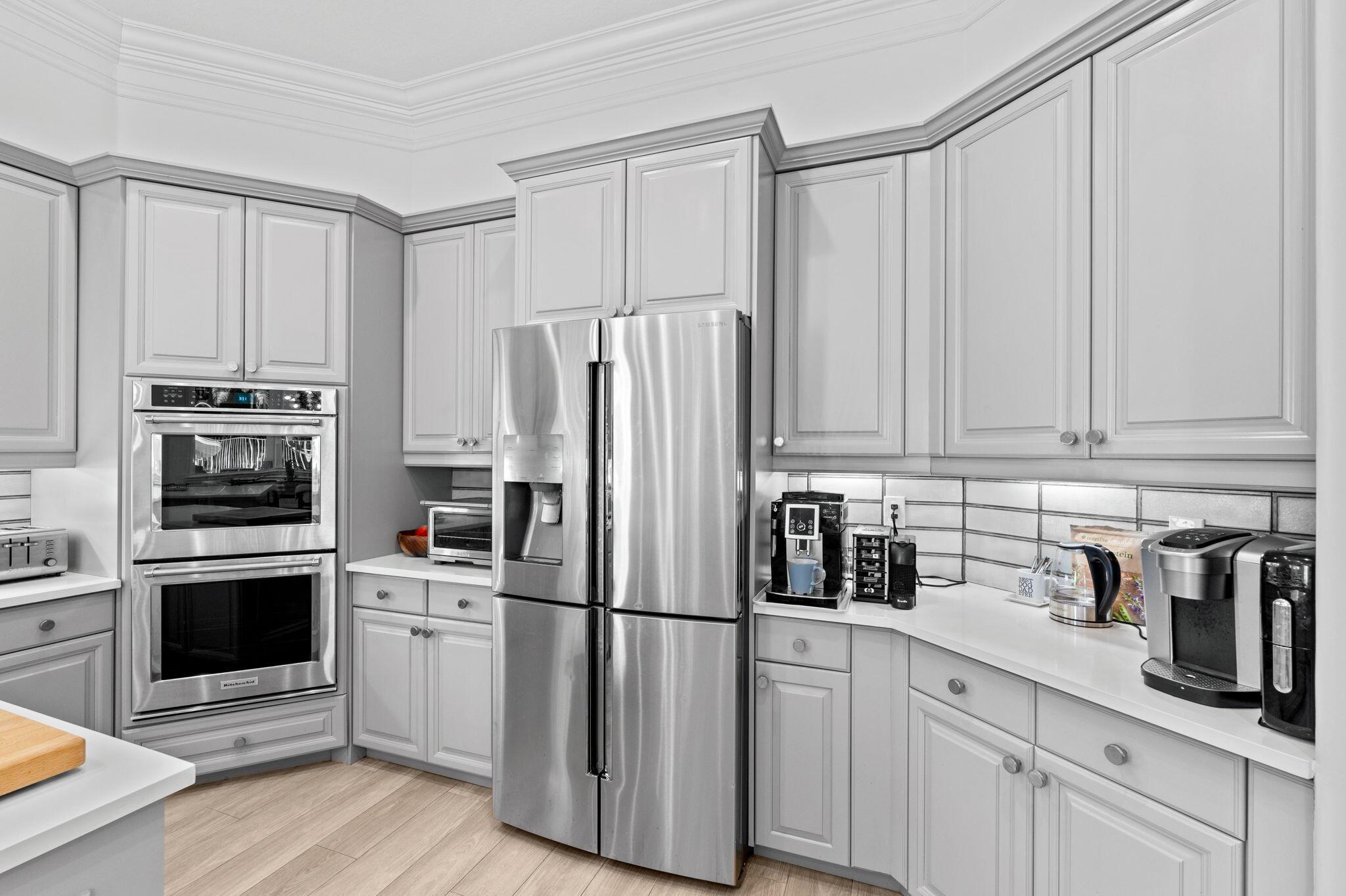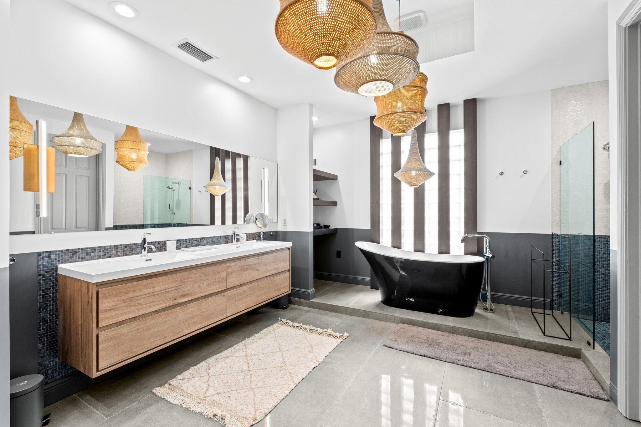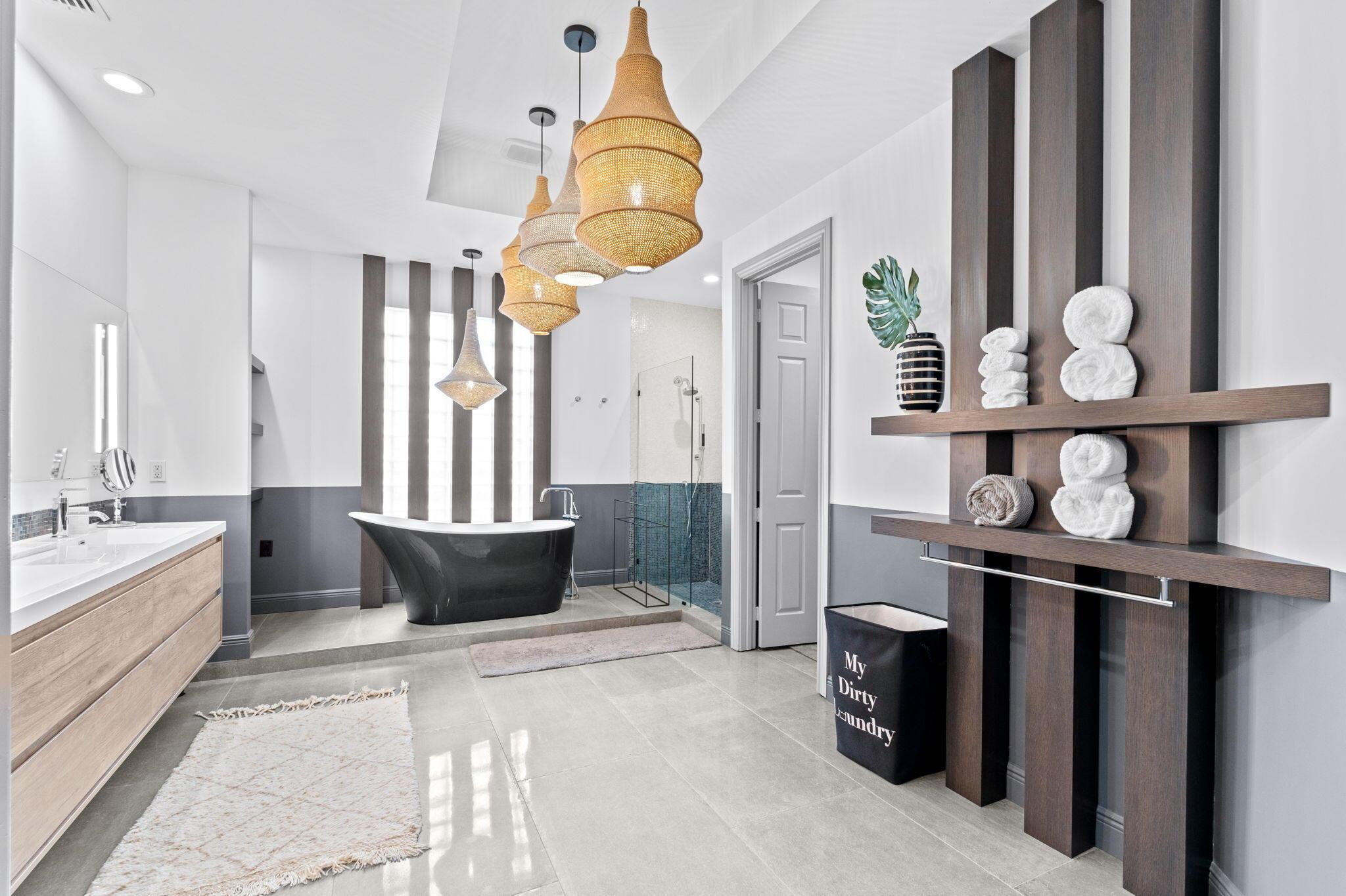 Welcome to this beautiful light-filled 6-bedroom, 4.5-bath seasonal rental offering luxurious comfort, space, and style. Upon entering, a striking floor-to-ceiling rear window greets you, framing the backyard, resort-style pool, and water, filling the home with light and serenity, with abundant space and storage throughout. The first floor features wood-tile flooring, a guest suite with a cabana bath and pool access, and flexible living and dining areas perfect for entertaining. The open family room and breakfast nook flow seamlessly into the gourmet kitchen with a 5-burner double oven, oversized island, walk-in pantry, and backsplash windows that bring in even more natural light.