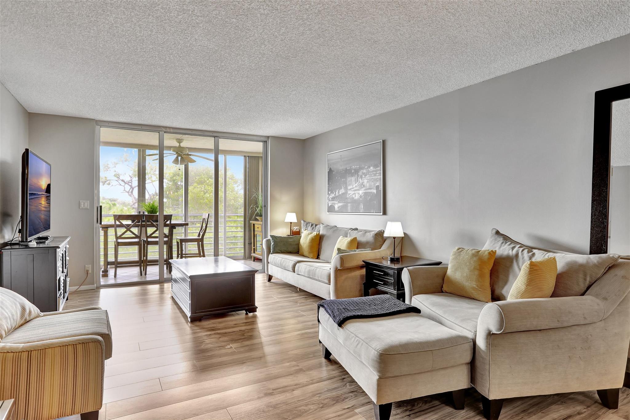 Live the resort lifestyle in this spectacular 2BR/2BA Palm Aire condo with an enclosed patio showcasing breathtaking golf course views! This stunning home is fully updated with granite counters, stainless steel appliances and a chef sink. Marble bathrooms, jacuzzi tub, large walk-in closets, and an in-unit washer/dryer, Newer AC (2023). Impact windows & doors provide comfort and peace of mind. Enjoy world-class amenities including a newly renovated clubhouse, 2 heated outdoor pools, lush tropical landscaping, BBQ area, and the security of a safe community with 24-hour guards. Maintenance fee covers all utilities, cable TV & internet (except electricity). Could furnish for a fee. Minutes to the beach, new Pompano Casino, dining & entertainment—this one has it all!