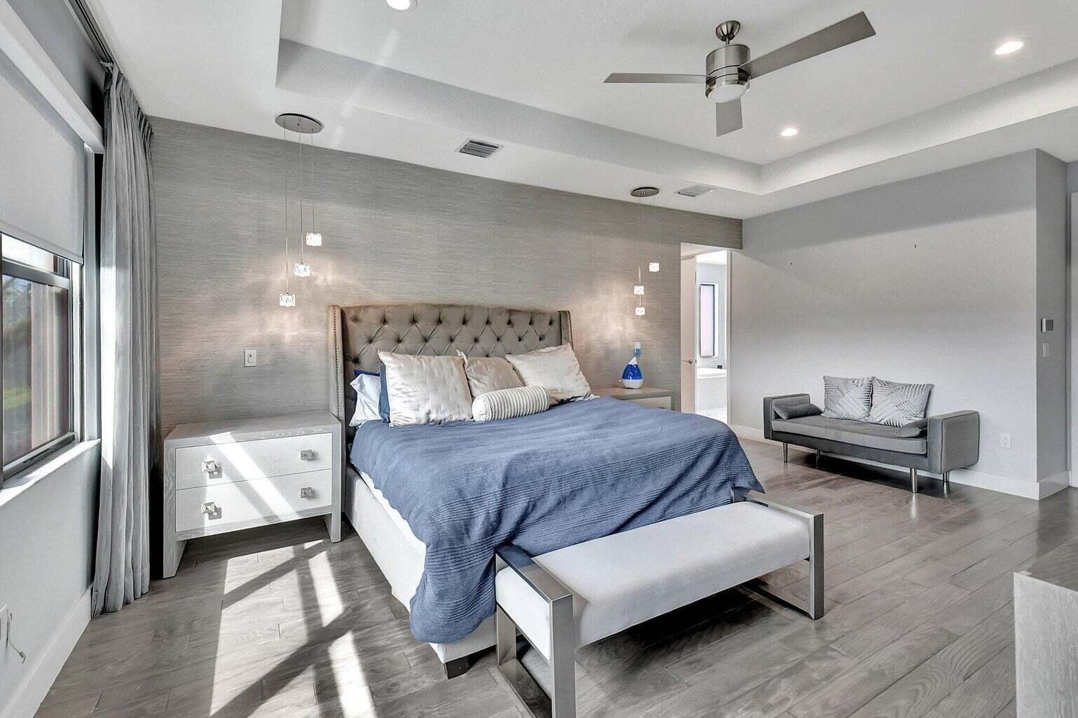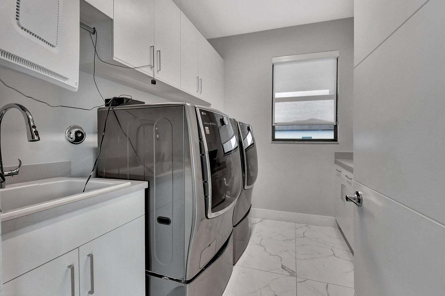 Polynesia model located in the lifestyle community of Lotus, Boca Raton! This house sits on a very quiet lot with a gorgeous salt water pool, lake views and is equipped with a natural gas generator. As you step inside this 5 bedroom, 7 bathroom home you'll notice the high ceilings and gorgeous staircase with glass railing. The open floor plan blends indoor and outdoor living spaces and the gourmet kitchen features all stainless steel appliances, quartz countertops, natural gas stove and eat in kitchen. The main level features one bedroom/office, with en suite bathroom, great room, separate dining room and cabana bathroom.Upstairs you'll find the primary bedroom with 2 en-suite bathrooms and custom walk-in closets, as well as 3 additional bedrooms, 2 of which have en-suite bathrooms.