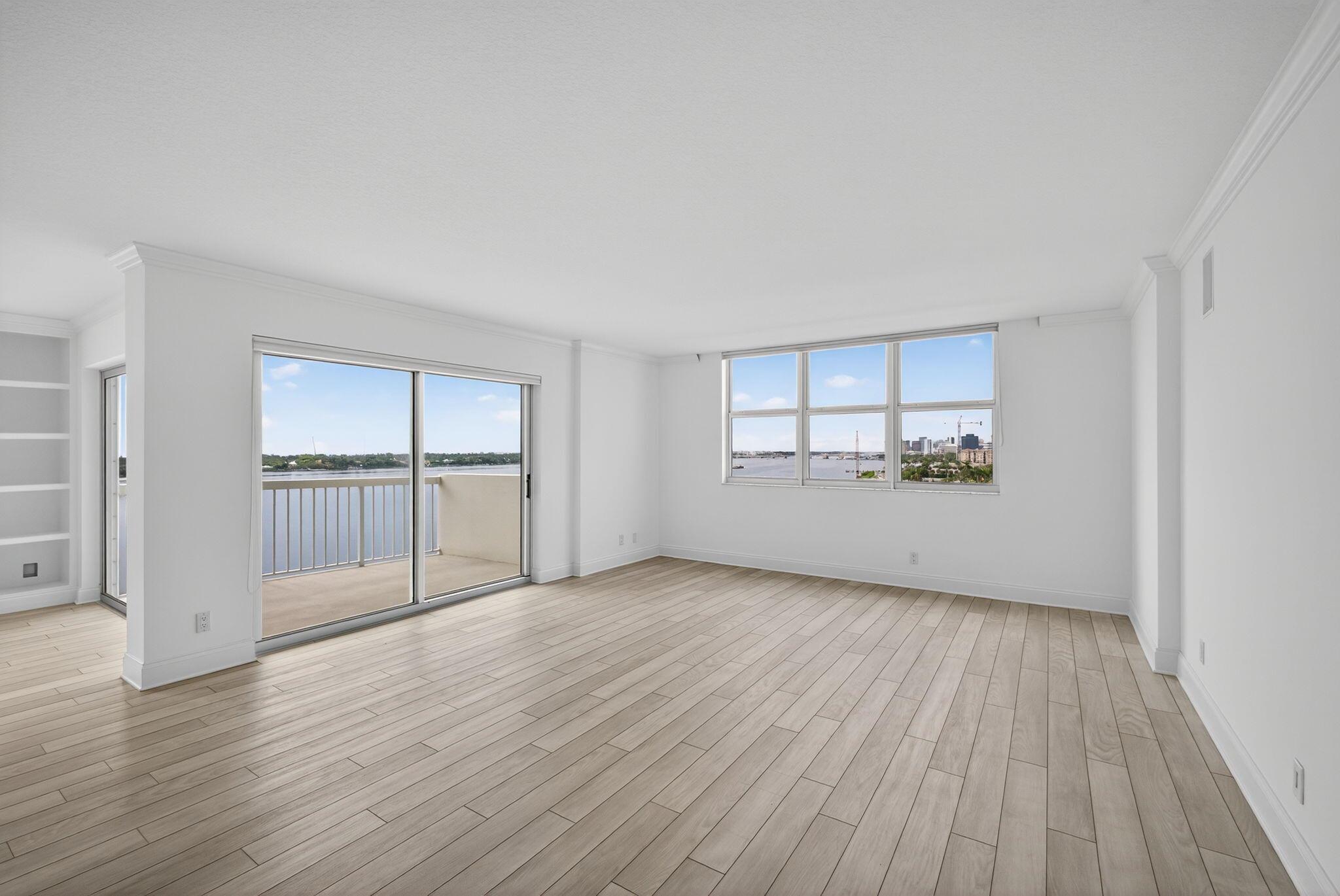 Live where the yachts glide by and the sunrises steal the show. This completely renovated 2-bedroom, 2-bath condo with a spacious den and great room offers direct Intracoastal views, as well as views of the mansions of Palm Beach and the Atlantic Ocean. Offered unfurnished for annual rental, this unit blends luxury, location, and lifestyle in one of West Palm Beach's most vibrant neighborhoods: Northwood. Some of the features in this sleek condo include an open-concept great room with floor-to-ceiling water views, a Den for flexible living or for an office, granite countertops in the kitchen, very spacious bedrooms, and updated bathrooms. Feel secure and safe with the 24-hour doorman, gated entry, and assigned parking this beautiful condo offers. Located in Northwood, just steps from