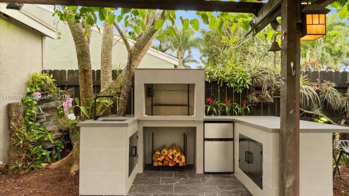 This recently updated single-family home offers 3 bedroom, 2.5 bathrooms, and a spacious office that can be converted into a fourth bedroom. The home features new impact hurricane windows and doors, and a 2-car garage with extra driveway parking. A huge balcony is also connected to a new outdoor kitchen, with a workstation sink, a coal barbecue with a rotisserie grill system, and a bar. Fire pit area, large west-facing completely fenced-in. This private backyard includes mature trees and fruit trees around the entire property. The backyard also includes a charming pergola, waterfall fountain, and one more covered space. Located in Boca Landings.