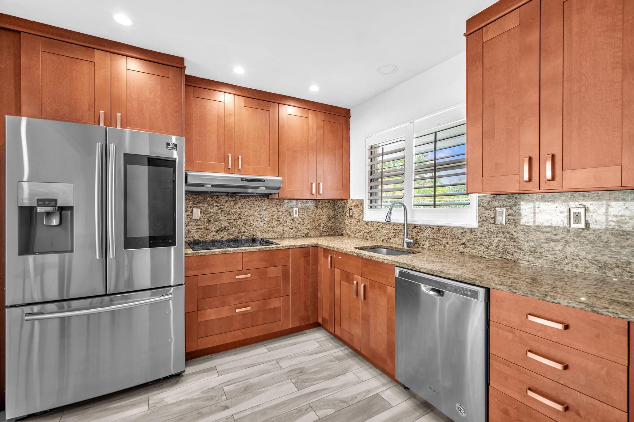 A beautiful totally updated home in Royal Oak Hill just 6 minutes to the beach. Two private outdoor spaces, -front courtyard & tropical pool area-. 2 car garage. Saltwater Heated Pool, open contemporary split floor plan, Hurricane-impact windows & doors. Smart fridge, The eloquent landscape, and outdoor design make the home great for entertaining. NO association approval. This charming corner lot home is located just 2 miles from the ocean, boat ramps, a variety of restaurants, upscale shops, downtown, Boca Regional Hospital, Town center mall, FAU, and A+ rated schools. Established a quiet superb neighborhood. Available for immediately occupancy.