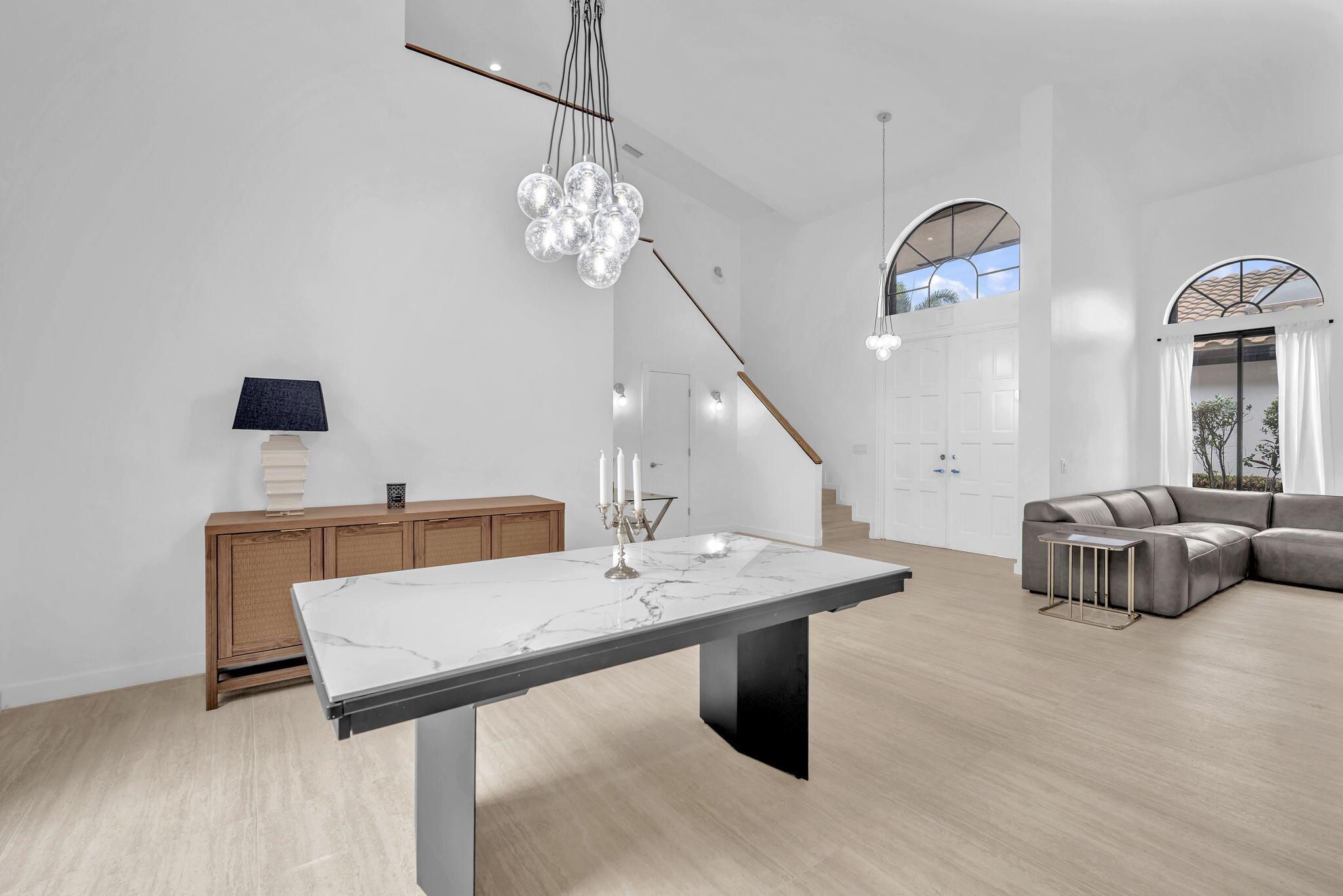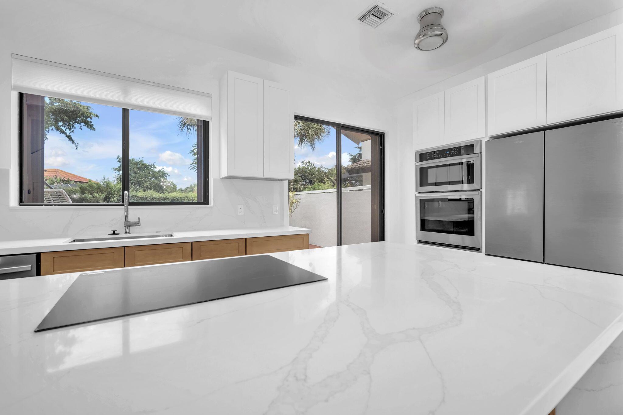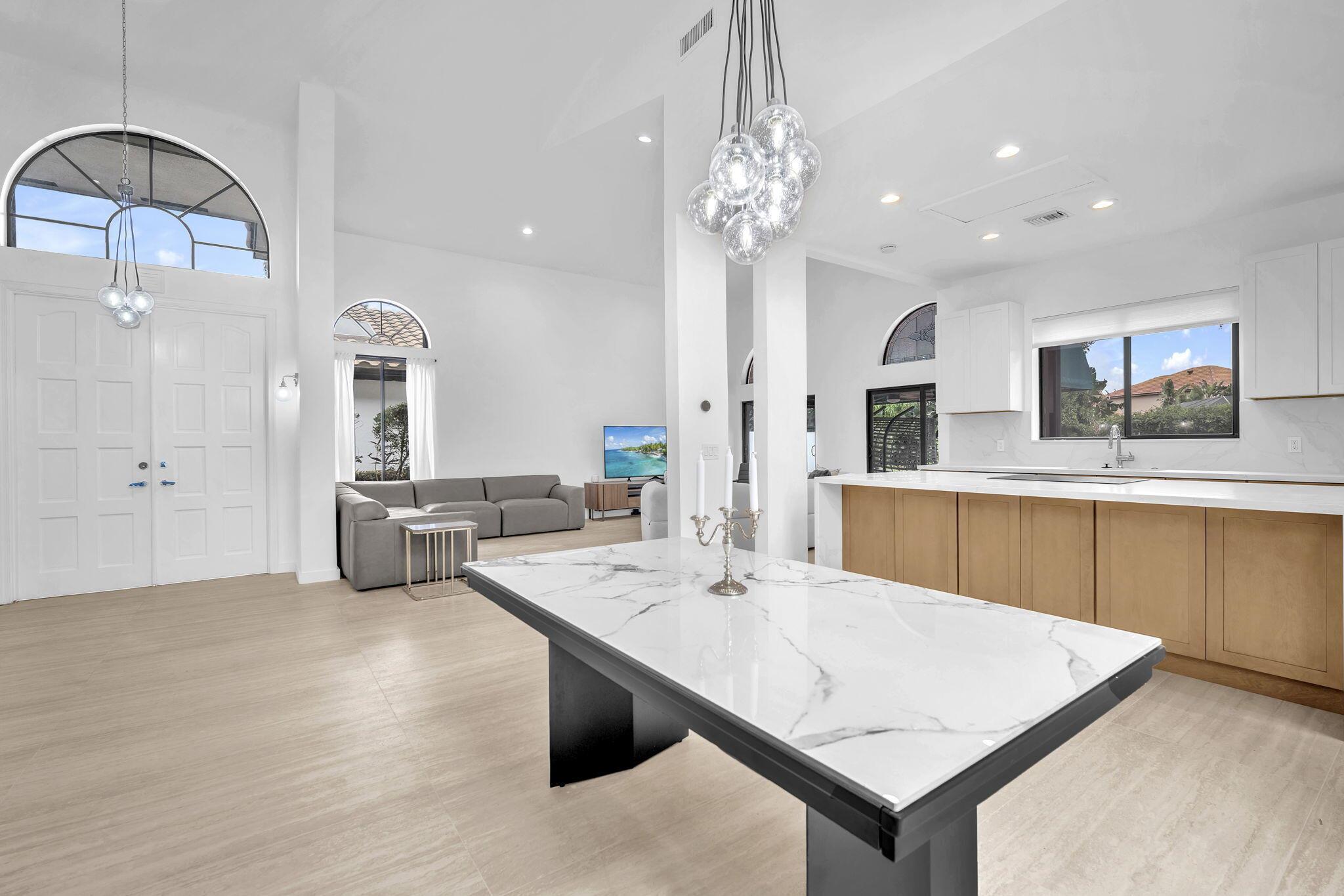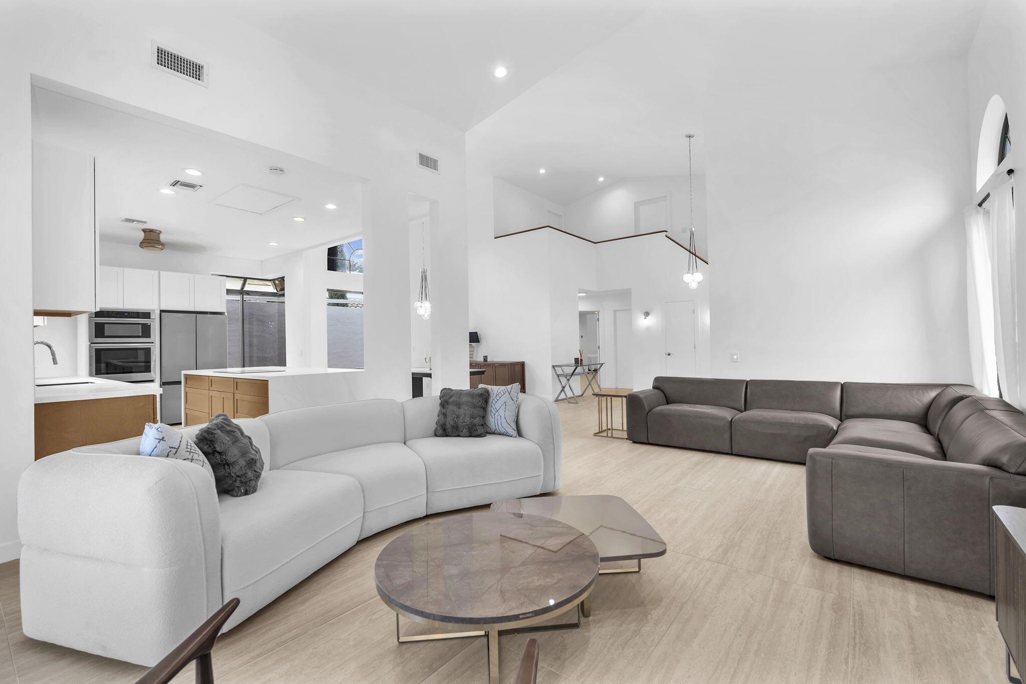 Discover luxury and comfort in this fully renovated 3-bedroom, 2-bathroom home located in the exclusive gated community of Villa Flora at Boca Pointe. Flooded with natural light and designed with soaring ceilings and a sleek open-concept layout, this home is as stylish as it is functional. The designer chef's kitchen is a true centerpiece, featuring quartz countertops, custom cabinetry, and a modern design perfect for both entertaining and everyday living. The spacious primary suite is conveniently situated on the main level, offering both privacy and elegance. This move-in ready home comes fully furnished with high-end finishes and quality furnishings throughout. Additional upgrades include a new AC system, new water heater, roof replaced in 2012, and a 2-car garage.