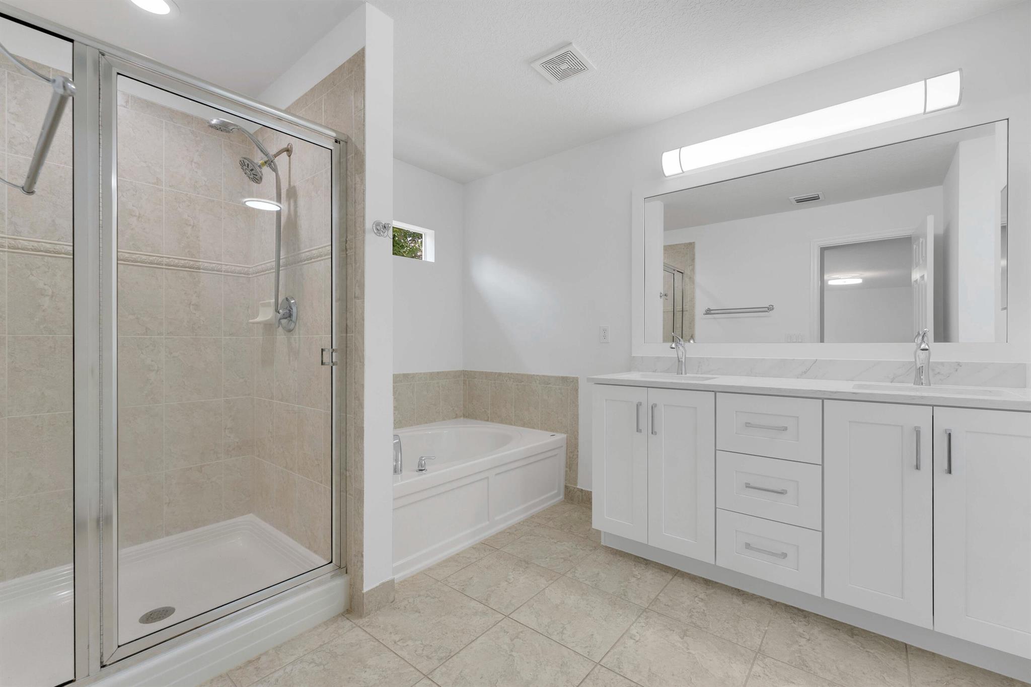 Fully renovated 3BD/2.5BA with 2-car garage in gated community. Features include an updated kitchen with high-end cabinets, wine cooler, custom shelves & added storage. Bathrooms beautifully updated, newer AC, fresh paint & upgraded laundry. Private fenced yard with paver patio, Jacuzzi & serene preserve views. Community amenities: lawn service, pool, clubhouse, pickleball, tennis & playground.