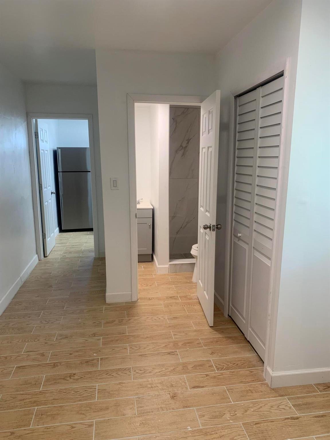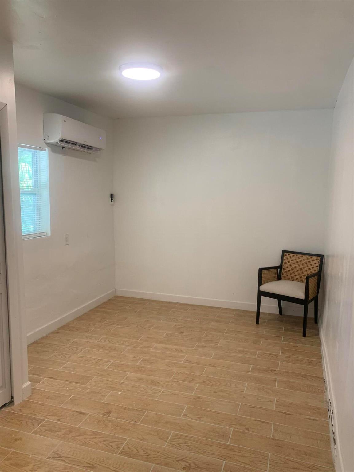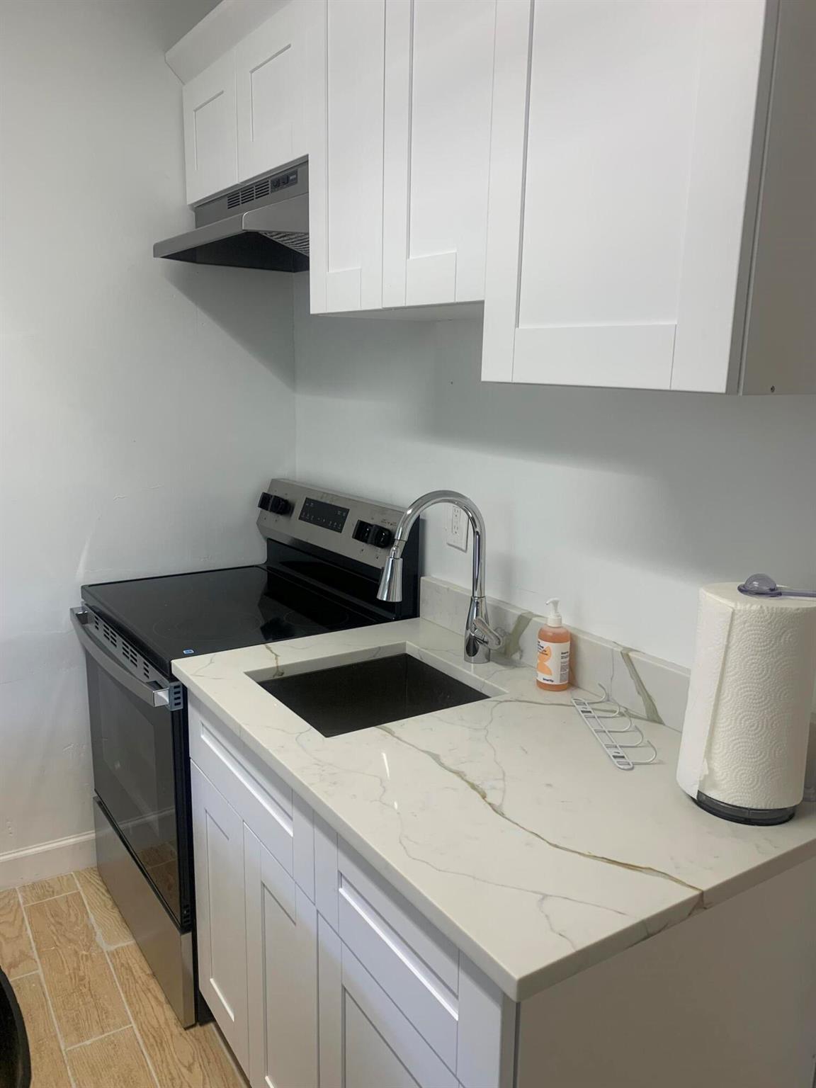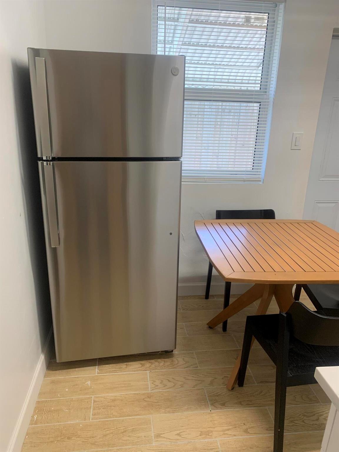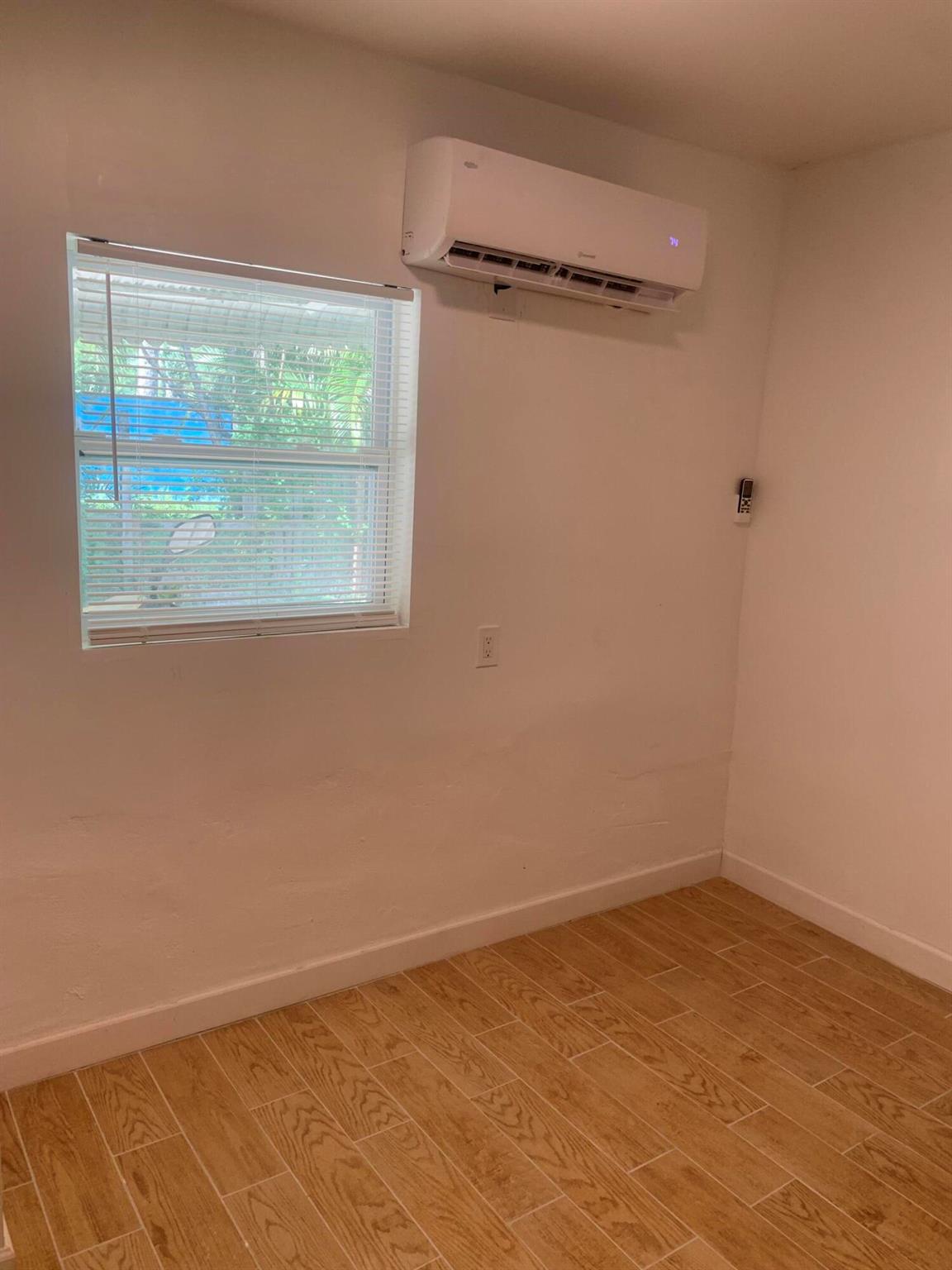 Efficiency with private entrance at the back of the house. It has a newly renovated kitchen with a brand new refrigerator and new stove top oven range, It has a split mini A/C unit to keep the entire efficiency cool, a full bathroom and a room with a closet.