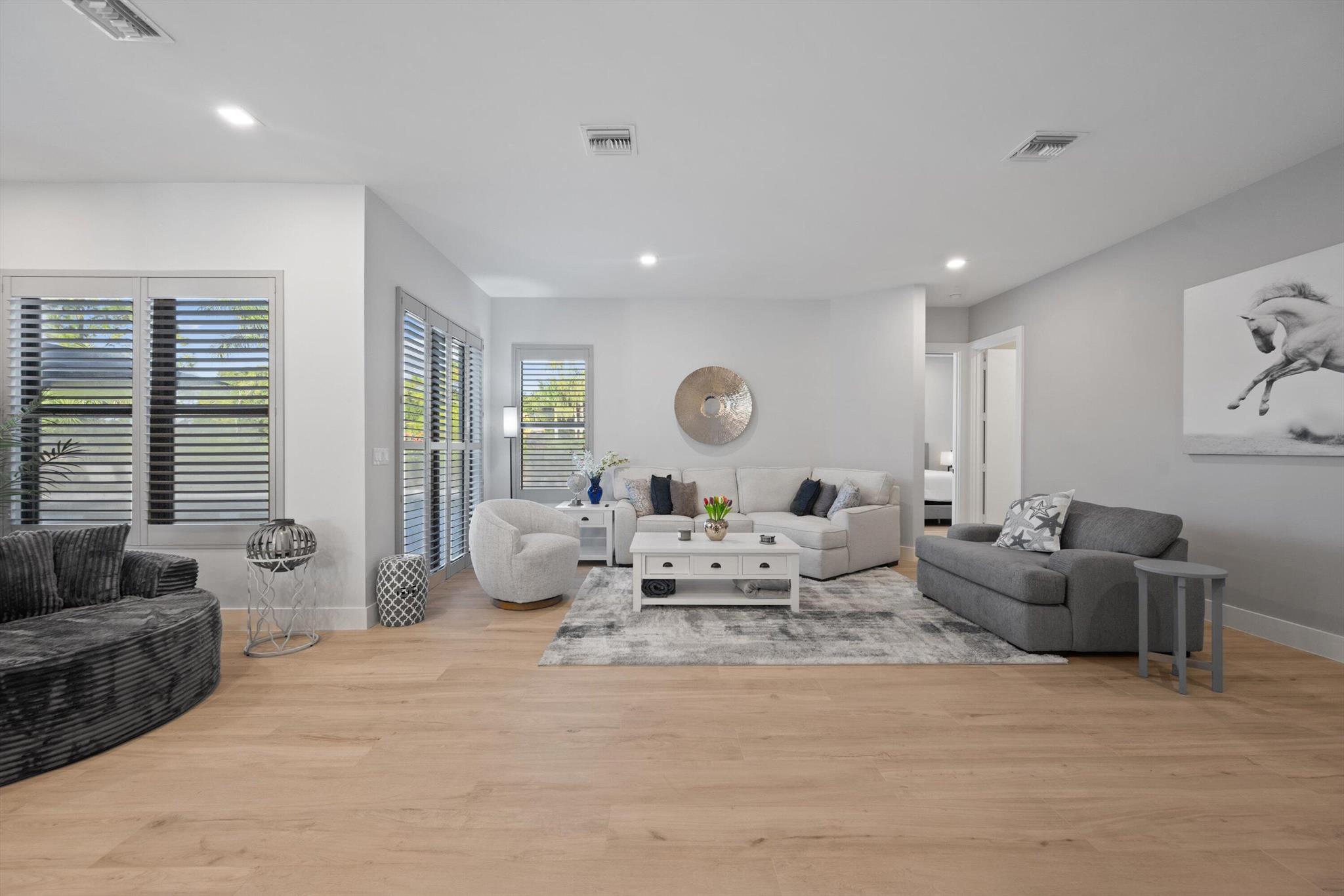 This luxurious fully renovated 5-bedroom, 5-bathroom single-family home in the Lakefield West community of Wellington is the ultimate seasonal rental! Perfectly situated just minutes from the Winter Equestrian Festival and the International Polo Club, the property features a brand-new pool with a newly installed screened enclosure, all-new appliances, and elegant designer furnishings, creating a move-in ready retreat filled with style and comfort. The open floor plan is bathed in natural light, with seamless flow between the spacious living areas, chef's kitchen, and outdoor entertaining spaces, all overlooking picturesque golf course views. Each bedroom offers an en-suite bathroom, providing comfort and privacy for families, guests, or seasonal staff. This home is an oasis of tranquility
