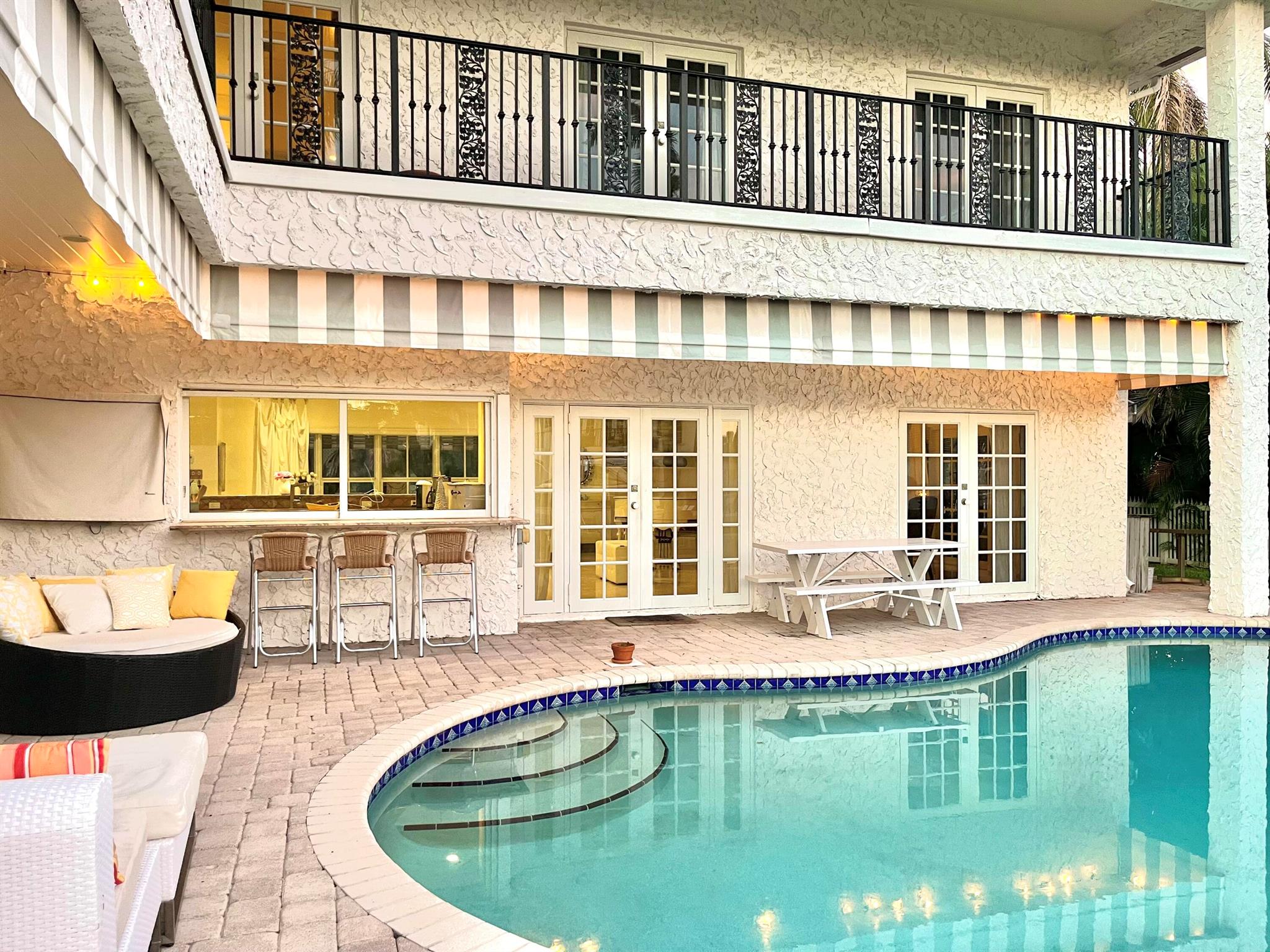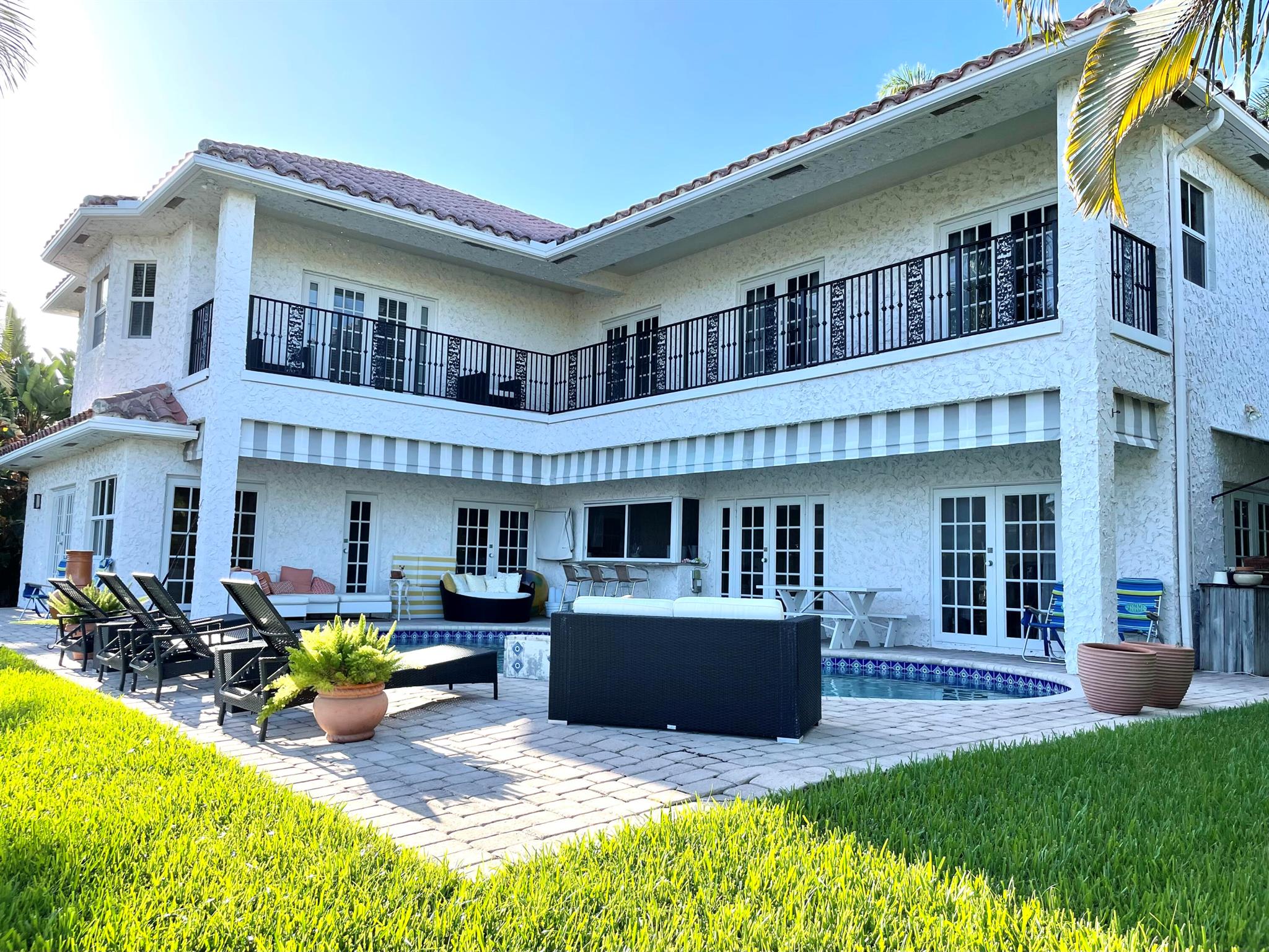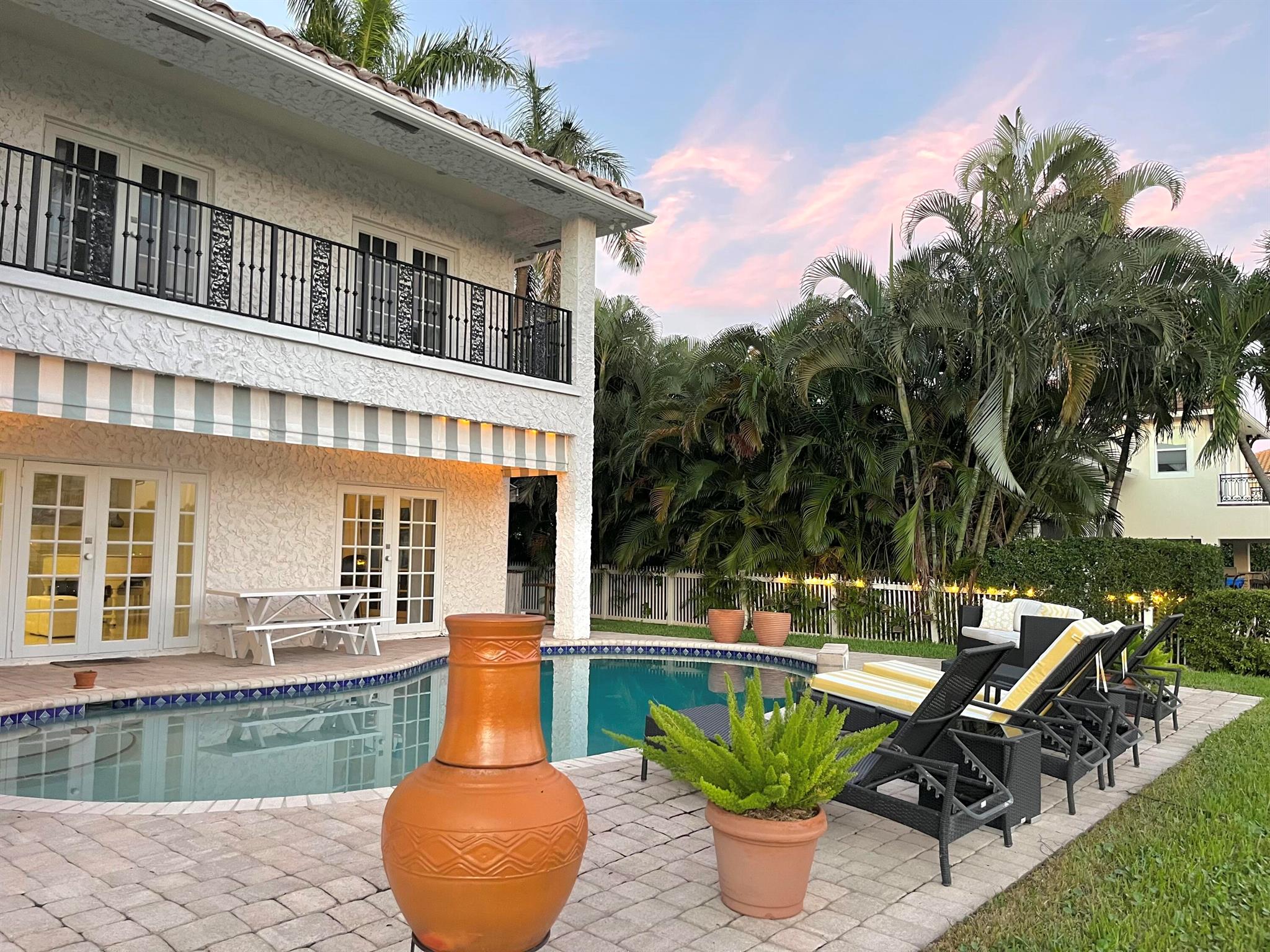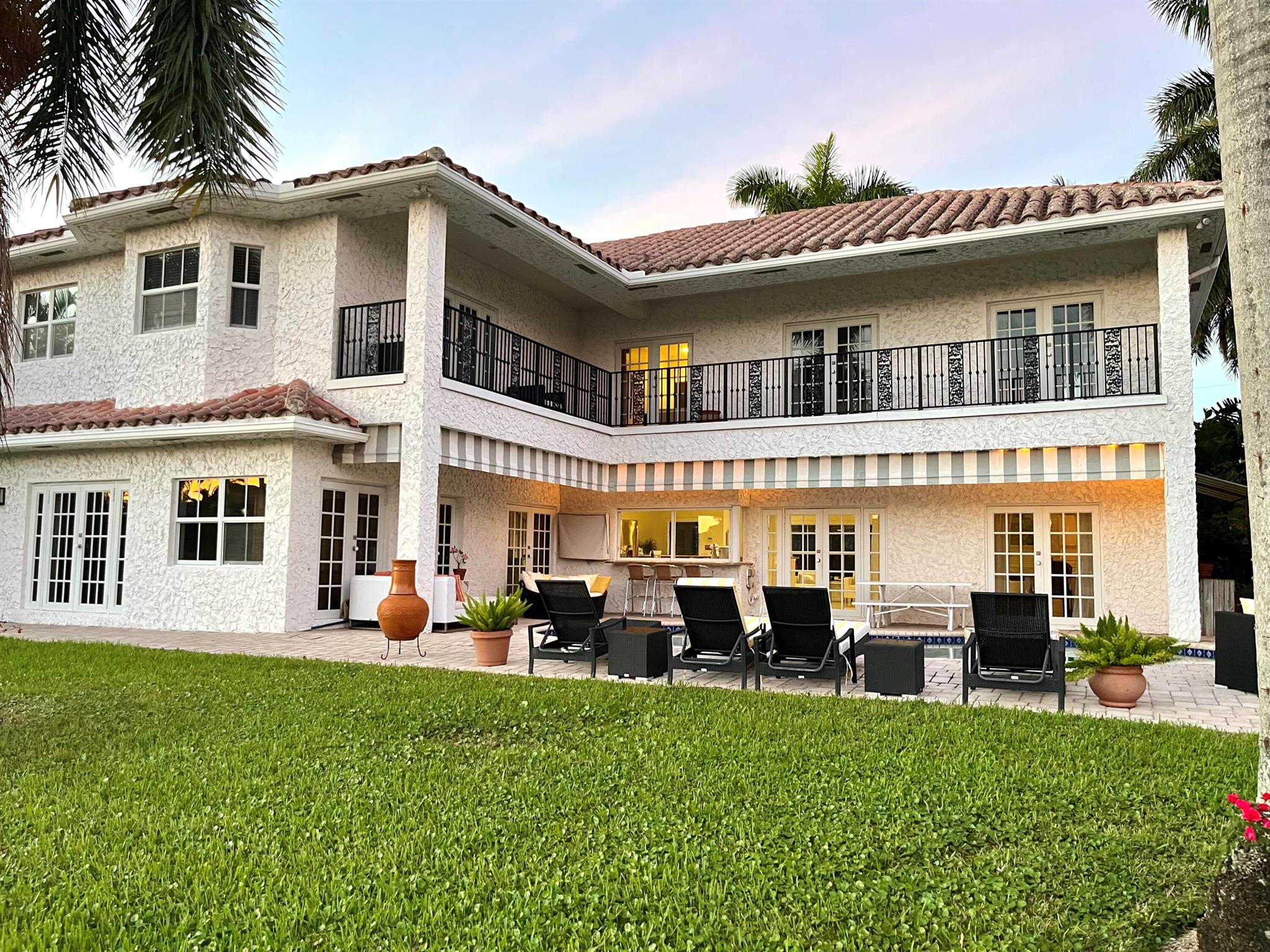 Seasonal or Annual, luxury waterfront living. A short walk to the beautiful Atlantic ocean, or take a quick drive to the vibrant and popular Atlantic Avenue and downtown Delray Beach. A stunning deep-water, pool home offering a 90' dock in the highly desirable Tropic Isle neighborhood. Meticulously maintained with an open and airy floor plan, providing canal and sparkling pool views from every room. Featuring a sumptuous master suite and bathroom, plus an additional three bedrooms, all en-suite. Each bedroom also provides outdoor access via private wrap around balconies maximizing water views. The home additionally features a large, private office/tv/game room, and a spacious two-car garage. A quick boat ride along the intracoastal waterway leads to