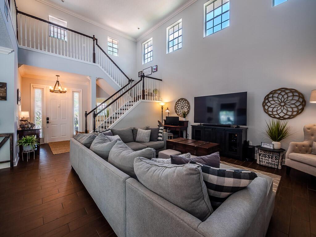 Two Story, 4 Bedroom, 2.5 Bathroom plus loft, 2 Car Garage Home situated on a spacious corner lot, in the 24 hr manned gated community of River Bridge. This home offers a complete set of hurricane panels, making storm prep a breeze. Inside, the interior aesthetic is defined by wood-look tile floors that seamlessly traverse the living spaces. Crown molding, great lighting, high ceilings and neutral colors make this living space fresh and airy. The stairway is the focus point of the living area. Featuring vinyl stair treads and flooring on the upper level contribute to both elegance and ease of maintenance. The updated kitchen features granite countertops, white cabinetry, pantry, and stainless steel appliances.