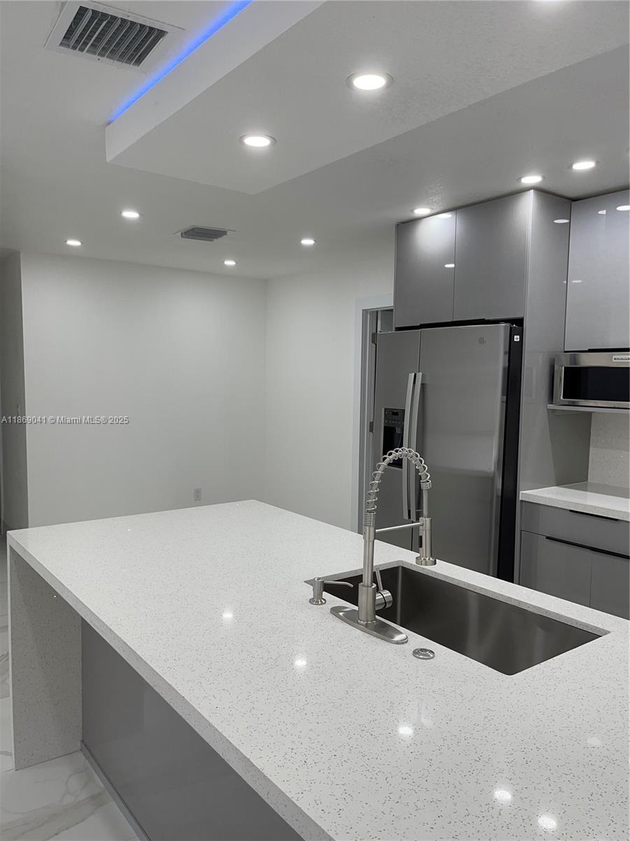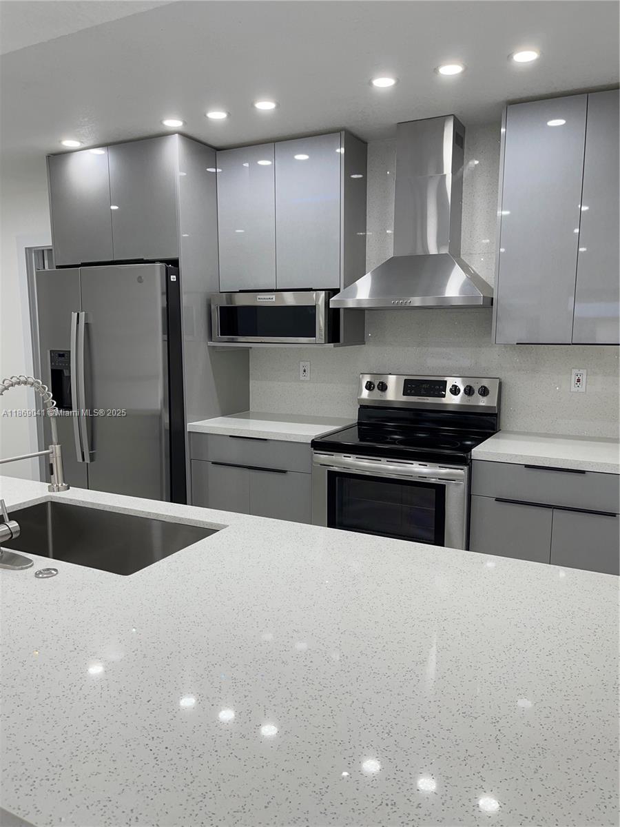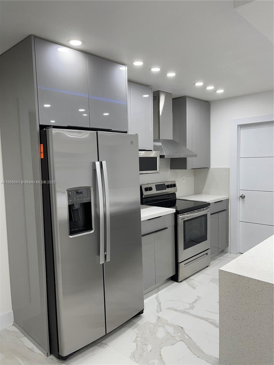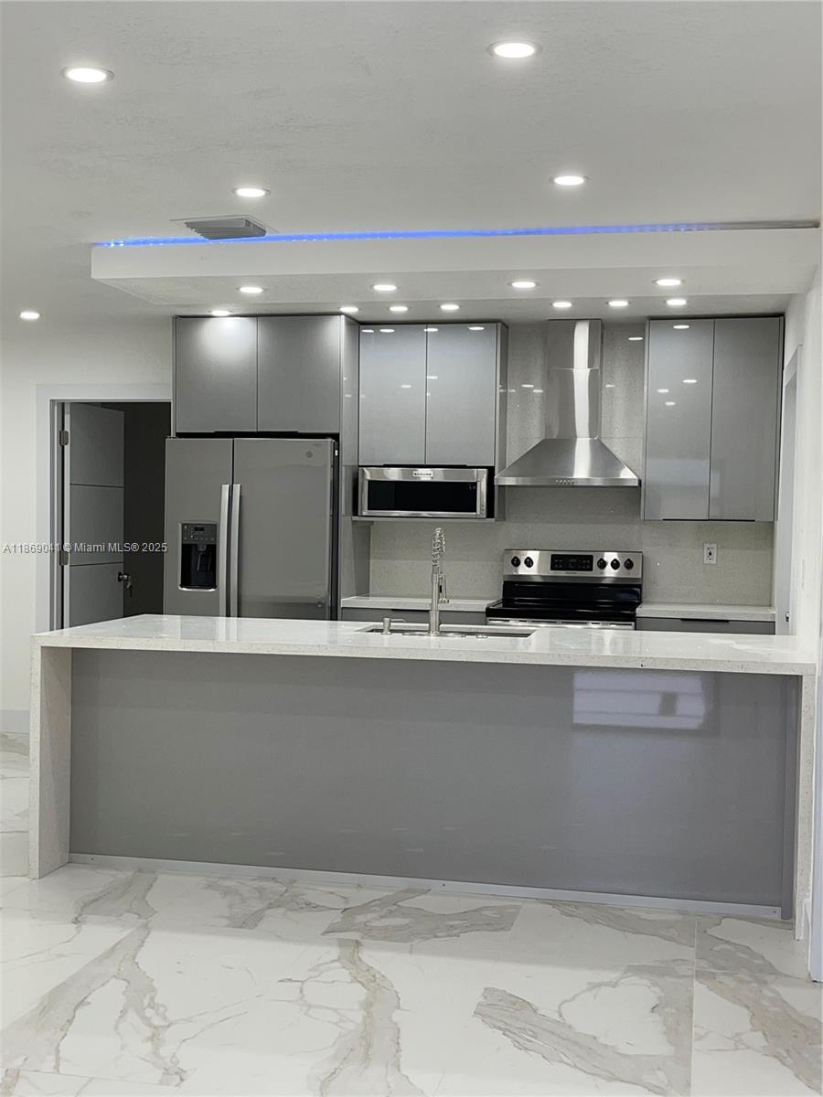 Amazing fully remodeled single house, currently has 5BR/3BA (different from tax roll). The property has been renovated with a high-end materials. It offers new metal roof, new flooring, new impact windows & doors, new A/C ducts, new mini-splits, new blinds (zebra shades) recessed lights, new water heater, new kitchen cabinets w/quartz counter top, new S/S appliances, modern driveway. Walk-in shower in all bathrooms. Washer & dryer combo in the terrace. There is a large patio & terrace with a functional outdoor kitchen having an additional space to prepare and serve food.Hurry! This will not last long!