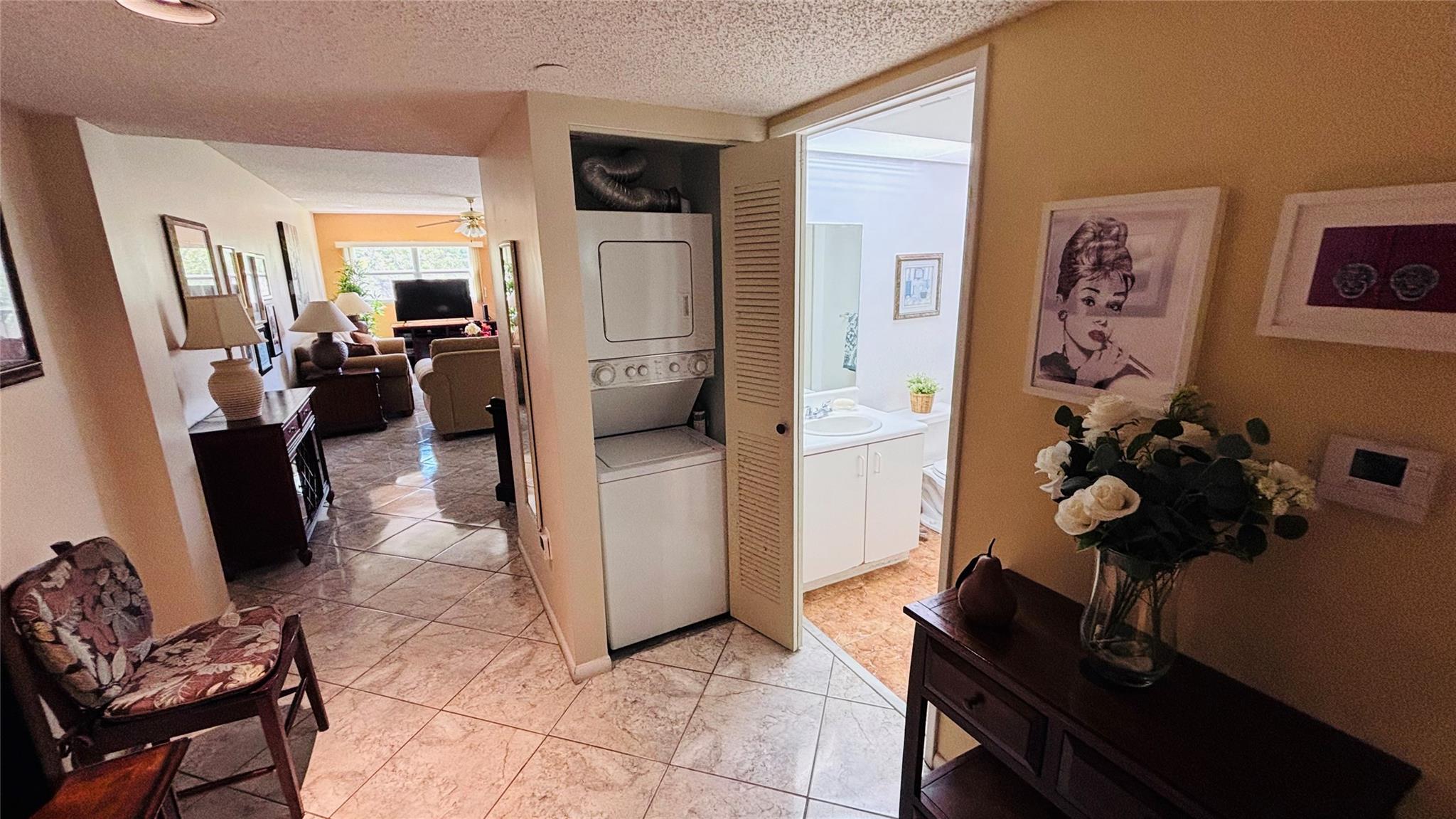 Beautifully furnished 1 bed/ 1.5 bath condo with a cozy, bright vibe in the newest section of Century Village. Features 1,056 sq. ft., tile throughout, spacious bedroom with two closets, and in-unit washer/dryer. Enjoy a beautiful garden and pool view from the balcony, with no building in front and plenty of guest parking. Century Village offers resort-style amenities including clubhouse, pools, fitness center, sauna, theater, tennis, golf, shows, movies, and social clubs. Conveniently located near dining, shopping, medical offices, and hospitals, this community combines comfort, lifestyle, and peace of mind with 24-hour gated security. As per the association: Credit score 700, 1 car per person, maximum 2 cars, only 1 person under 55 years.