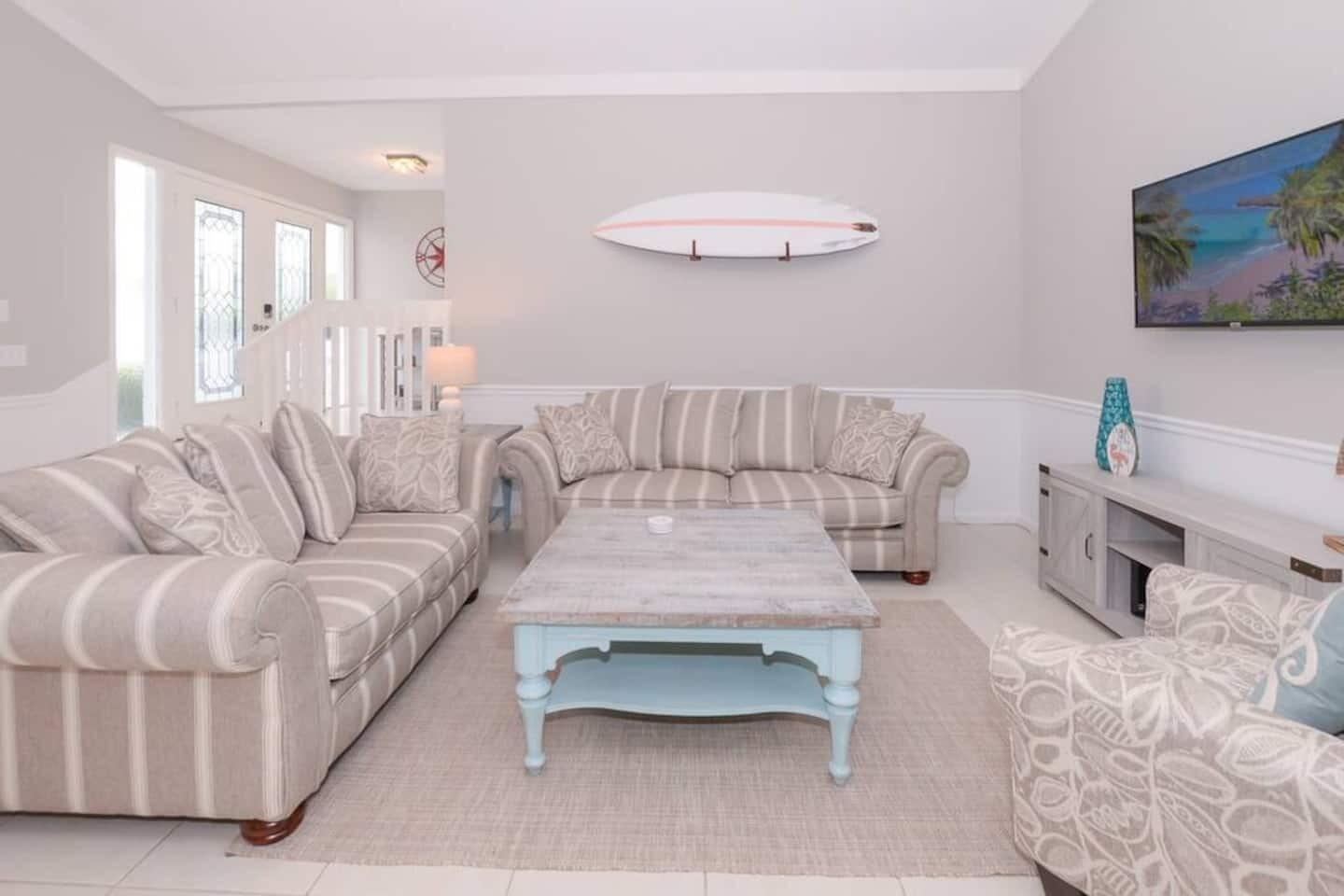 This stunning key west style 3/2 beach house is the perfect way to spend your Florida vacation. Located in a hidden gem community, the house is beautifully accented with light furniture, a private patio and many other amenities that plant you 3/4 mile from the beach! Stocked with just about everything you'll need, this house is just minutes from the beautiful Jensen beaches and downtown. Enjoy your Florida beach vacation to the fullest and book with us today. Join us in paradise. RATES: Off-Season: $4300; Mid-Season: $6500; Season: $8,500. Additional taxes and Move-in Fees apply.
