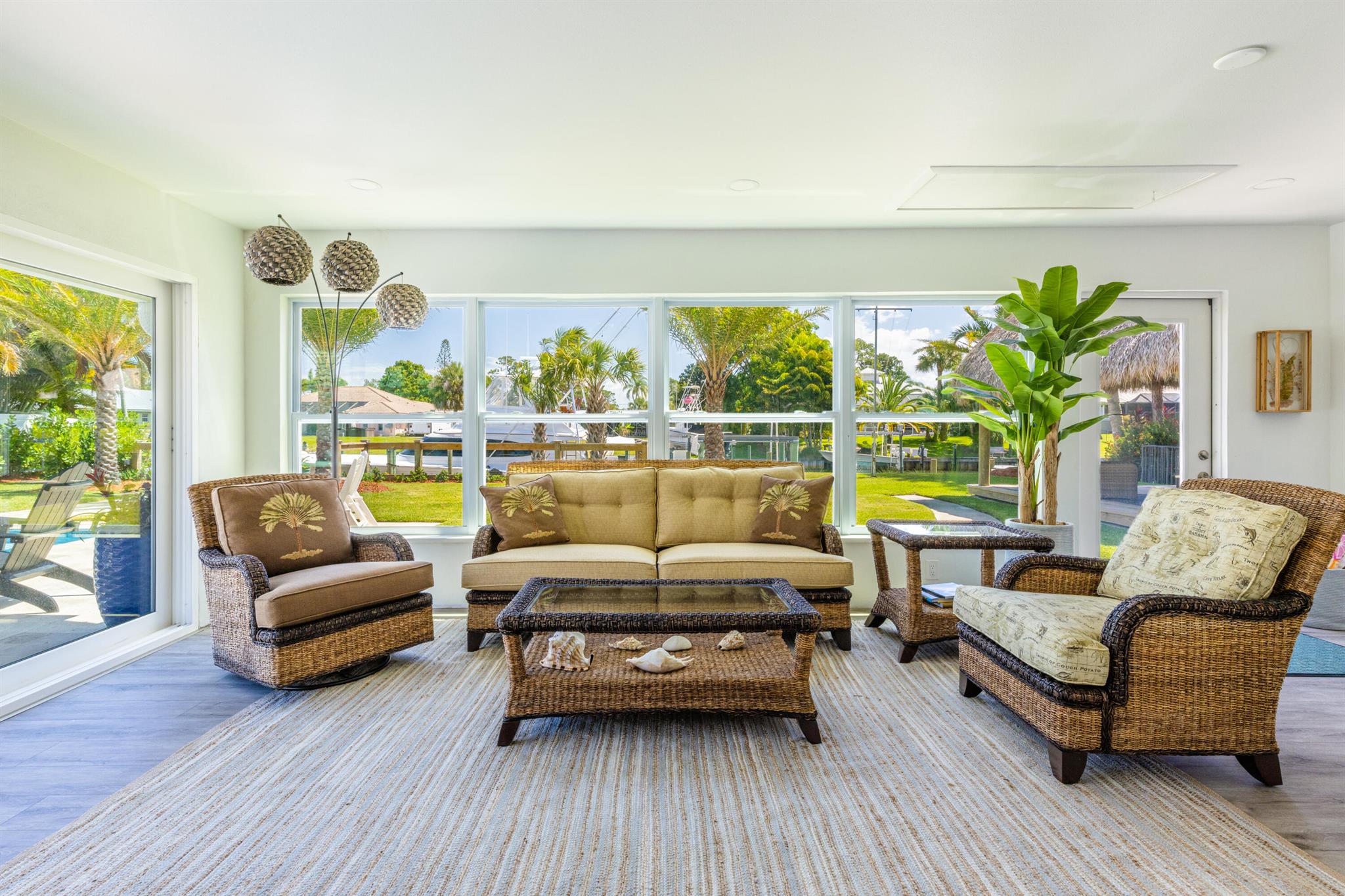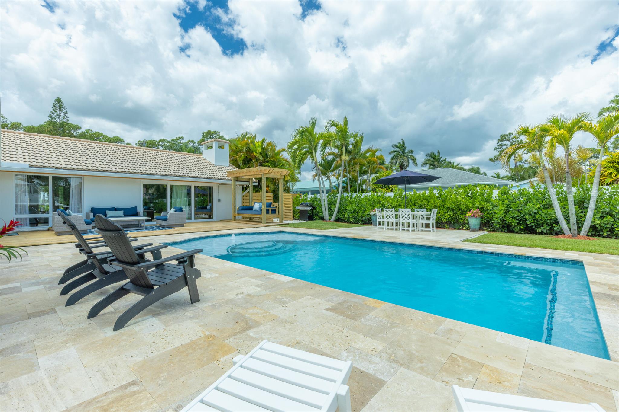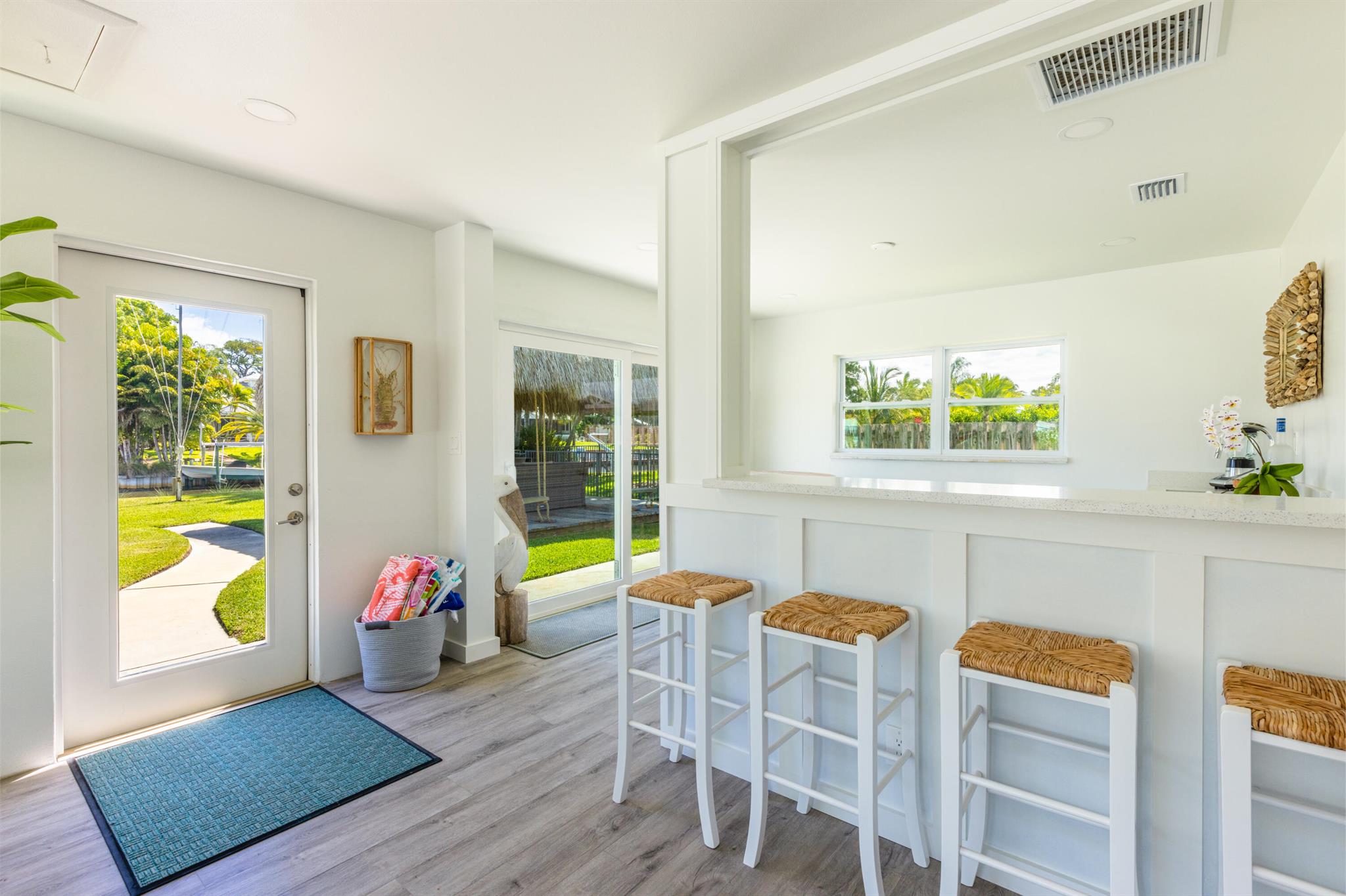 WATERFRONT OCEAN ACCESS & SALTWATER POOL W/ PRIVATE DOCK AND TIKI HUT. Positioned at the St. Lucie River, this beautifully remodeled home is complemented with a modern coastal decor and is fully equipped and furnished for your stay. Whether you're an avid boater or just looking for a gorgeous spot to relax, you're sure to find yourself sunbathing by the crystal clear pool that overlooks a private dock where you can tie up or fish for a variety of species. The dock is equipped with a cleaning station, electric, & water for your watercraft. Relax & swing under the large private Tiki Hut while watching your favorite show & eating your favorite meal fresh off the grill. Currently accepting next season offers Monthly Rates: Off-Season: $8500; Mid-Season:$12K; Season: $16K.(taxes&fees apply)