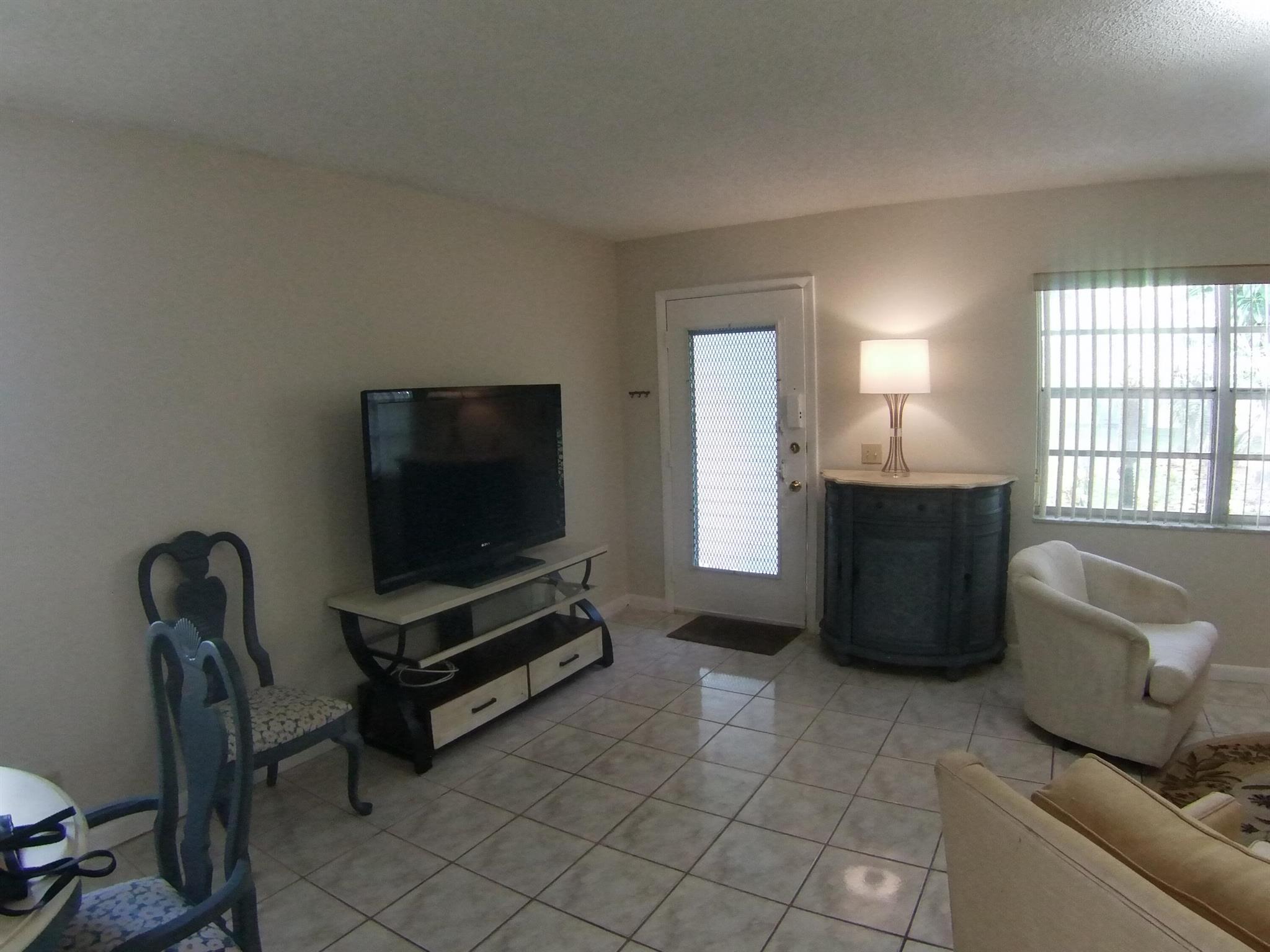 55+SENIOR COMMUNITY-ANNUAL RENTAL-FULL FURNISHED. First floor, furnished one-bedroom condo. Tile throughout. Updated kitchen cabinets. 1.5 bathrooms. Screened patio, easy access to parking from the back patio's door. Washer and dryer. Located 6 miles from the beach and the historic district of Delray Beach. The public library and Delray Market Place are within 2.5 miles of Kings Point. The community has multi-million dollar clubhouses. It also has entertainment, parties, bus service, golf courses, pickleball, tennis, outdoor pools and so much more!