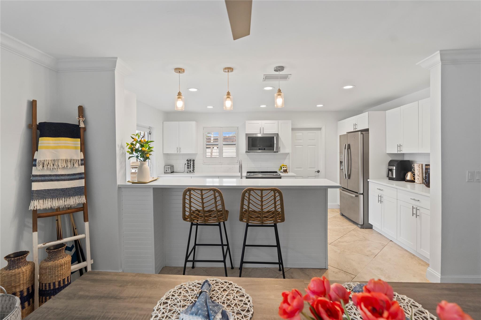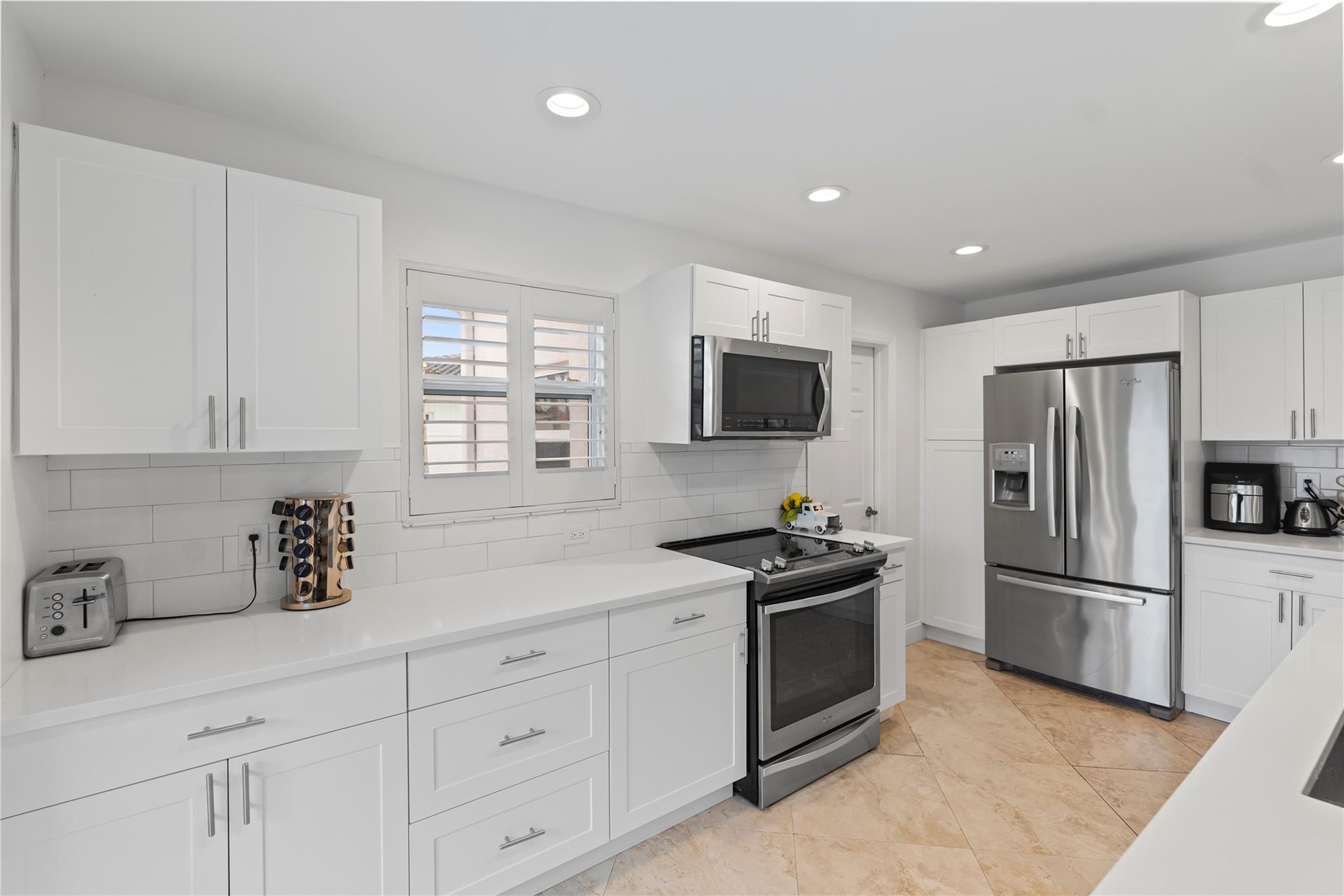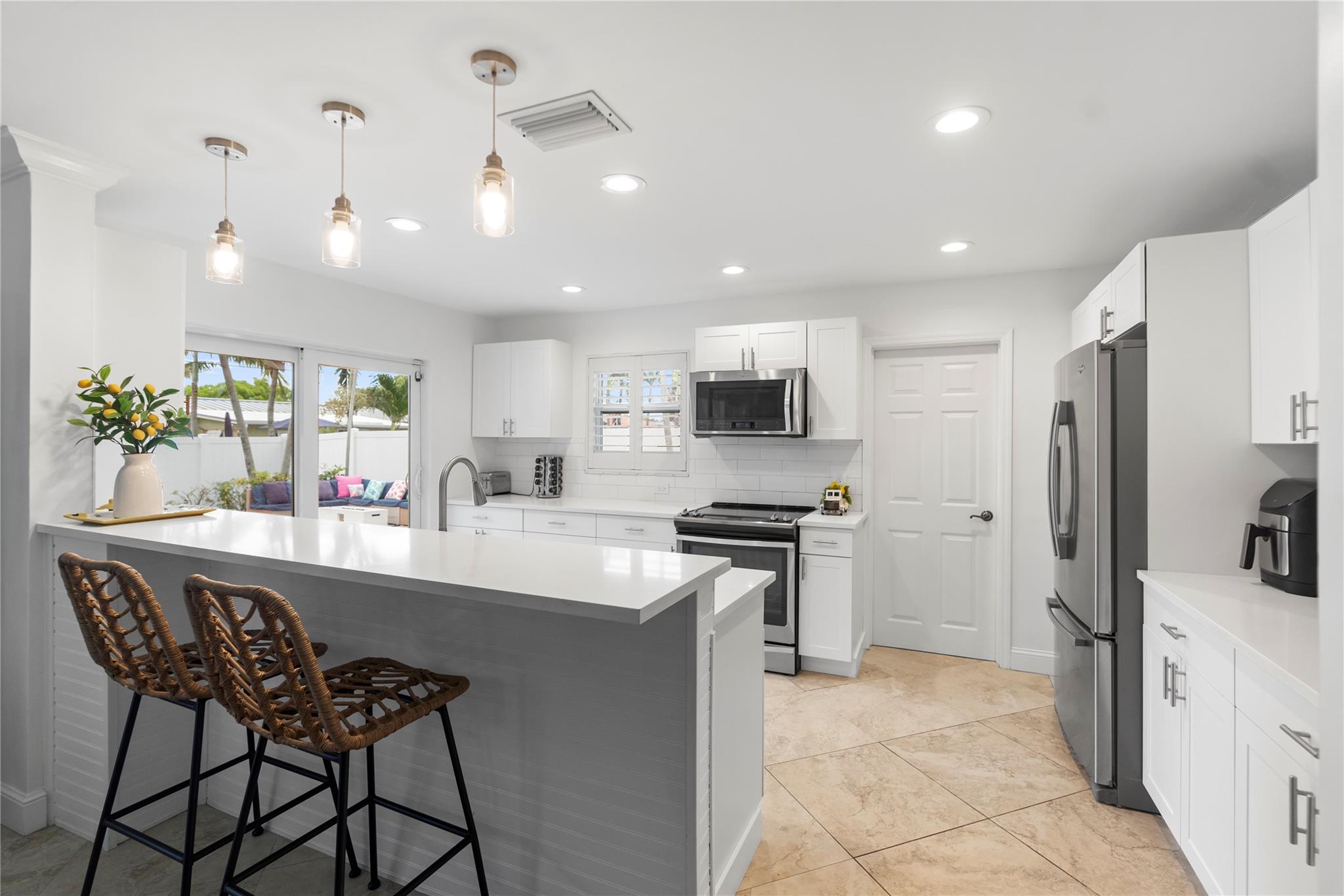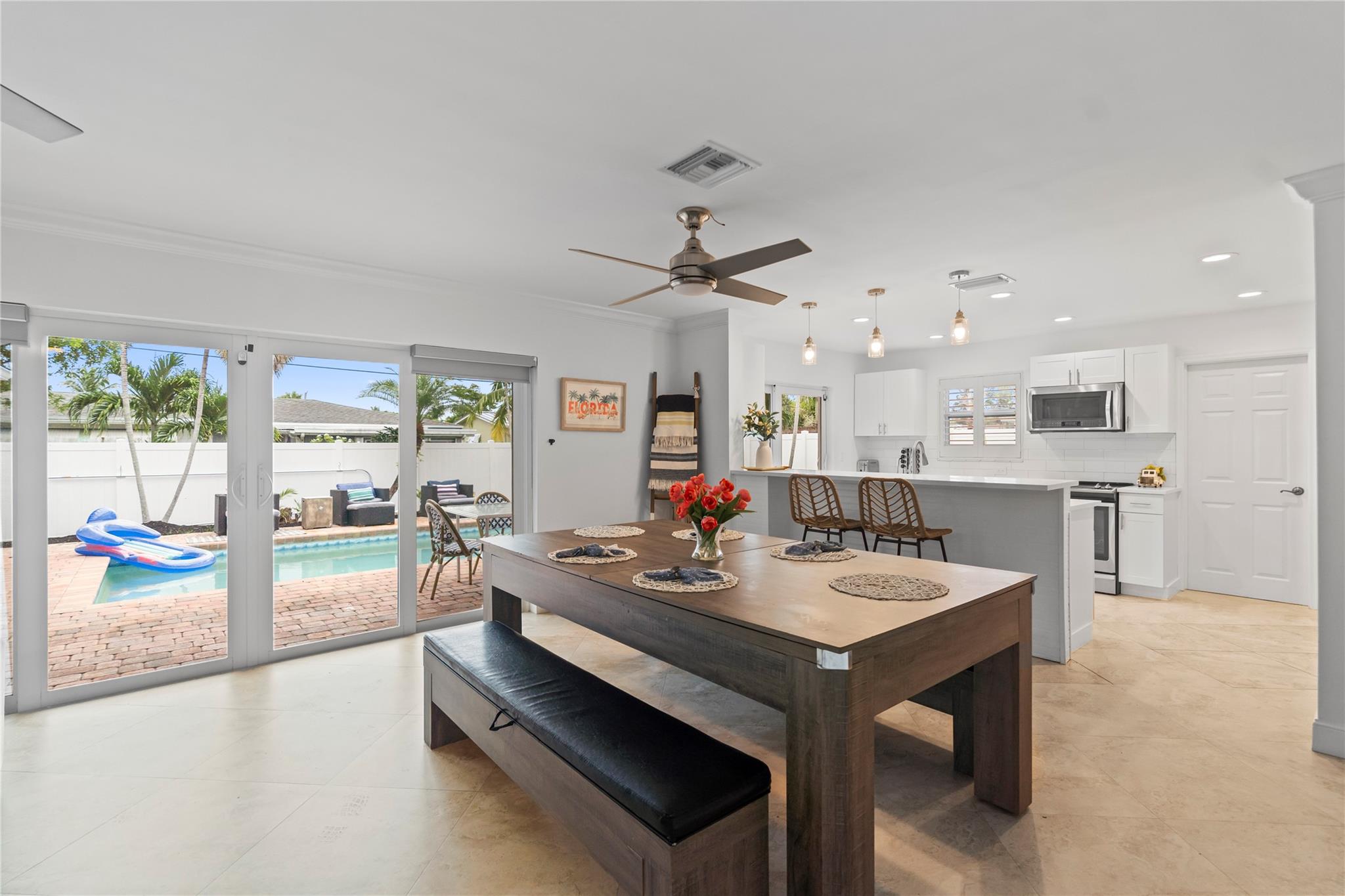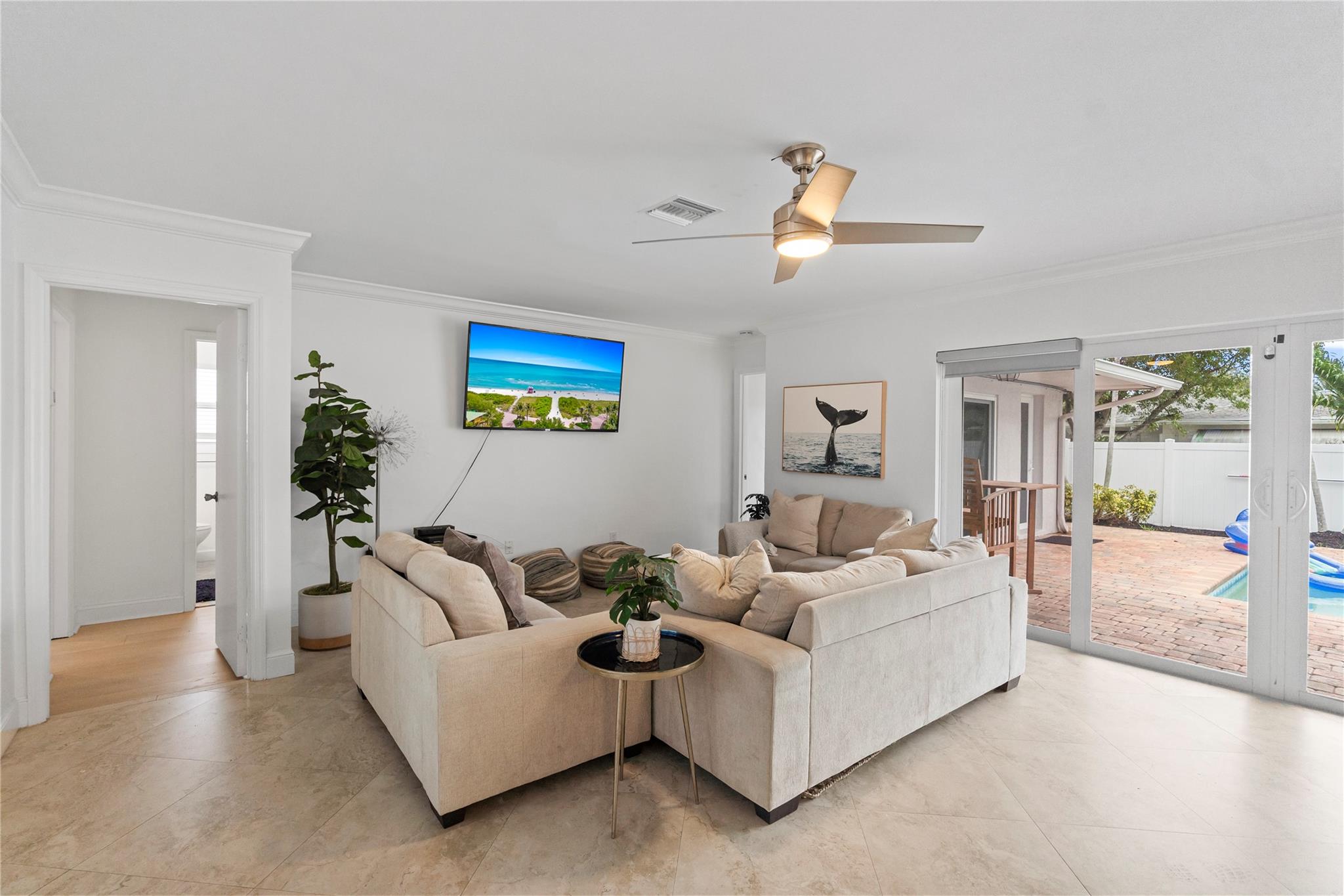 This beautifully updated 4-bed, 3-bath Pompano Beach pool home delivers comfort, privacy, and lifestyle in one of South Florida’s top neighborhoods—perfect for families or multigenerational living near Fort Lauderdale. The split-bedroom design highlights two large primary suites with ensuite baths and walk-in closets—ideal for guests, aging parents, or grown children. One suite offers a private entrance for added flexibility. The open-concept living area flows to a new kitchen with quartz counters, soft-close cabinets, and stainless appliances. Wood-look tile floors, crown molding, and coastal details set a relaxed Florida vibe. Enjoy a heated pool, spa, indoor laundry, plantation shutters, updated baths, and easy access to beaches, golf, parks, shopping, and schools
