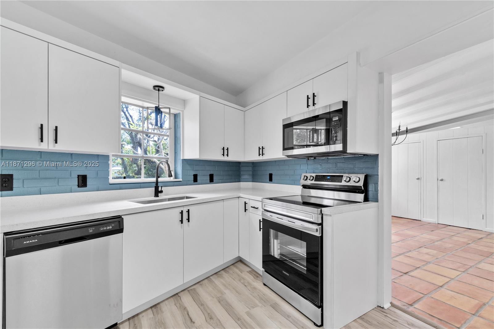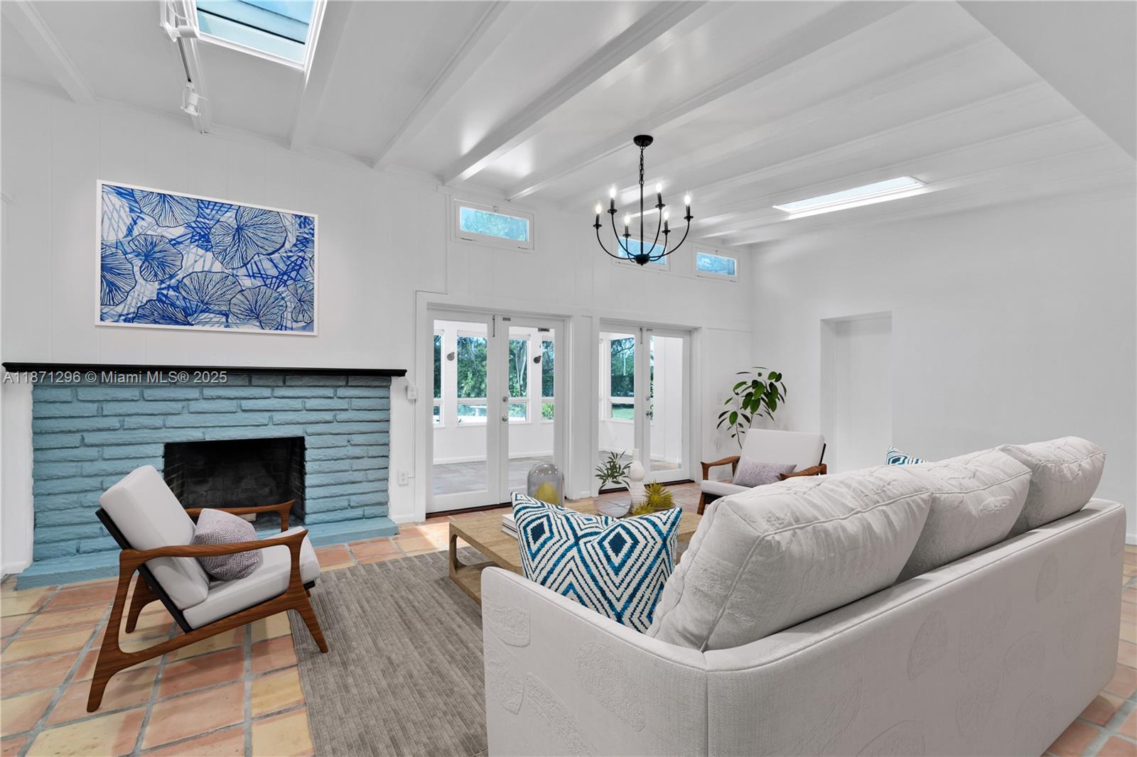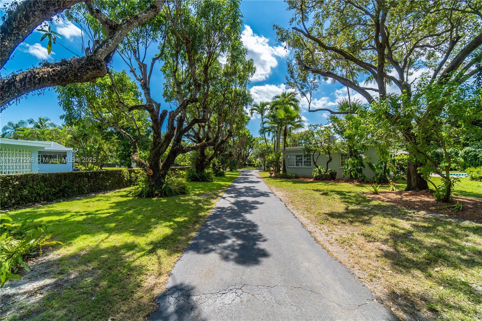 On a serene and private neighborhood block, you'll find this perfect retreat. Upon arriving through the gated entrance, you are transported to a tropical paradise as you are greeted with a tree-lined driveway of mature mango trees. A charming 4/2 home sits on this oversized acre property and boasts an up to date kitchen with all new appliances, newly renovated master and bathroom, beautifully appointed light fixtures and fireplace as the centerpiece of the home. The laundry room located next to the home is also newly renovated with all the laundry necessities. This 43, 560 sq. ft. property includes a full-sized tennis court and pool with jacuzzi. Located in the highly sought-after neighborhood of Glenvar Heights just off of Sunset Drive. Ready for move-in November 3, 2025.