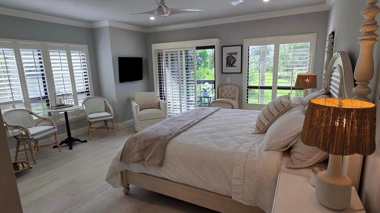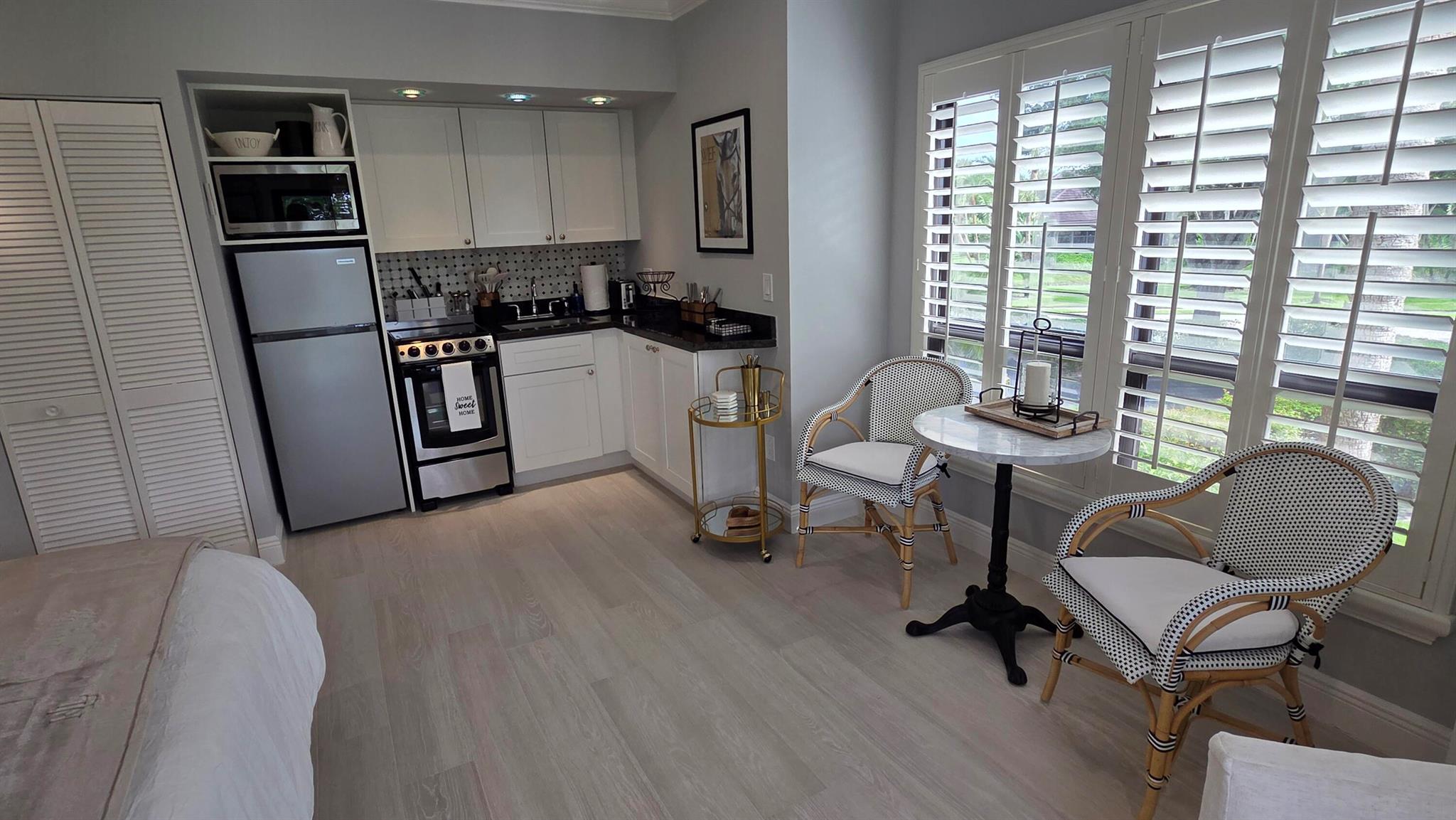 Newly renovated and designer furnished second floor studio apartment located in the prestigious Palm Beach Polo Club just 5 minutes from the horse show. Be the first lucky person to enjoy this completely modernized unit with all new furniture, king bed with brand new mattress, California closets, fully stocked kitchen with new appliances, completely remodeled bathroom, with brand new linens, towels and washer and dryer. Enjoy a cocktail on the balcony and watch the sunset over the serene Park like setting of the Polo Club or take a short stroll to the community pool to soak up the Florida sun. Assigned parking with plenty of guest parking, just bring your clothes and toothbrush. Rent includes water, electric, wifi.