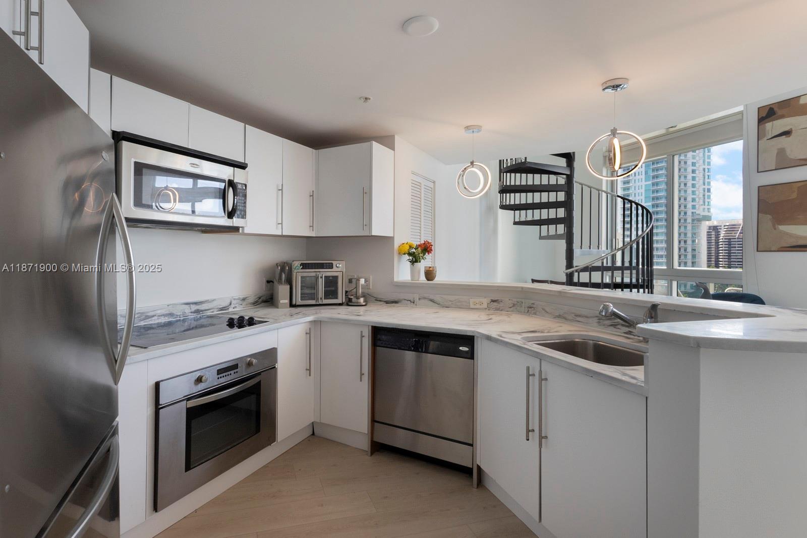 Stunning Fully Furnished Loft with soaring 20-ft ceilings, floor-to-ceiling windows, and stunning water and city views. Features include a split floor plan, granite countertops, tile floors, washer/dryer, large balcony, and high-end Arhaus furnishings. Assigned parking space on the same floor for easy access. Full-service building offers 24/7 front desk, valet, concierge, pool, sauna, jacuzzi, gym, business center, and VIP Silverspot cinema. Prime location—steps to Whole Foods, Zuma, Novikov, Cipriani, and a short walk to Brickell City Centre. All utilities included. Lease available for 6 months, extendable.
