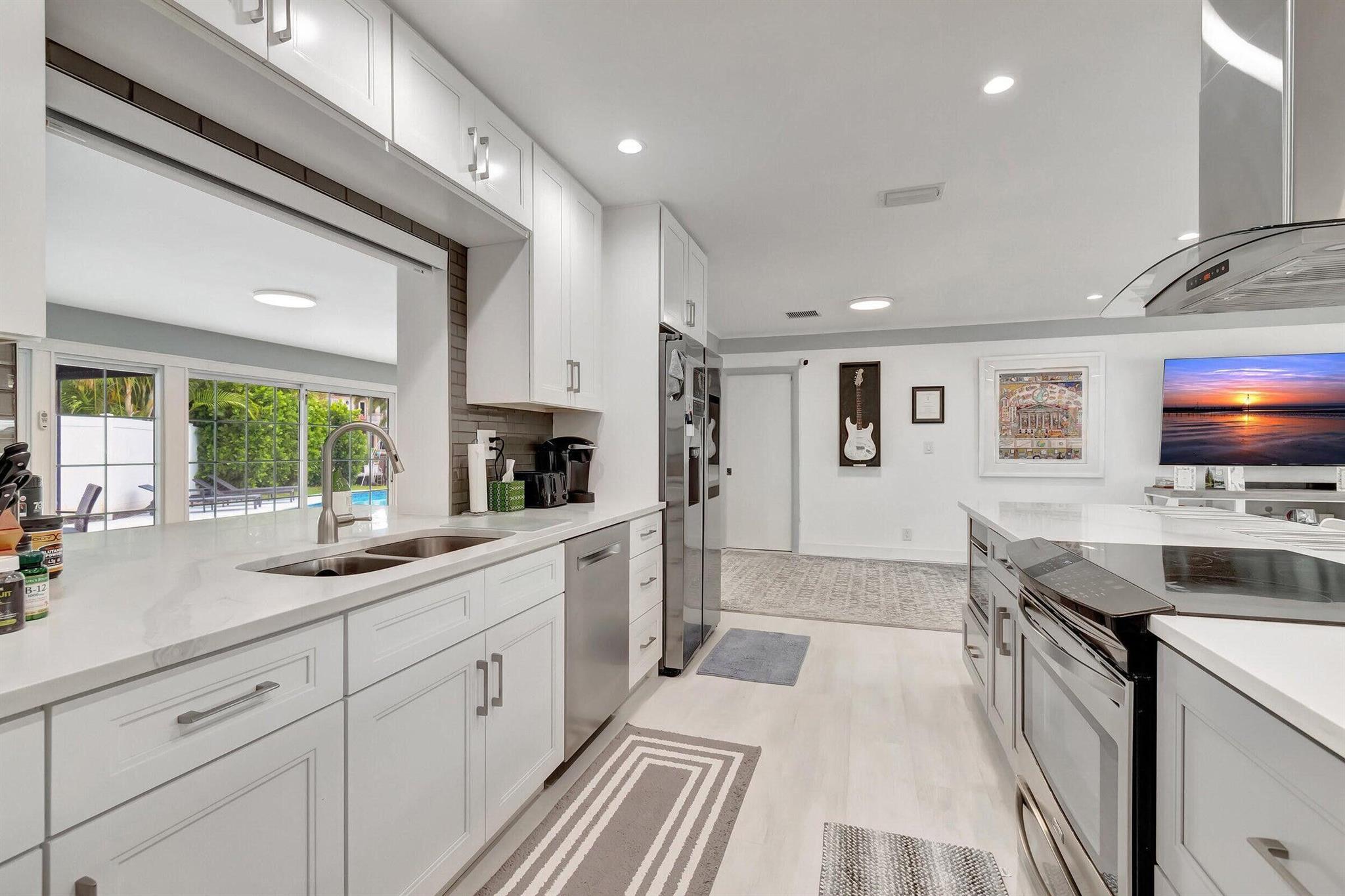 JUST BRING YOUR BOAT! Stunning, fully renovated waterfront pool home with a guest house in prestigious Lighthouse Point, just off the North Grand Canal. This 3-bed, 2-bath gem on an 11,000+ sq. ft. corner lot is a boater's paradise with deep water access and a quick ride to the Hillsboro Inlet. The guest house is perfect for visitors or extended family. Enjoy breathtaking views of the pool, patio, dock, and waterway from multiple vantage points, including the beautiful Florida room. Located just steps from Dan Witt Park Complex for easy access to outdoor activities and family fun. SEASONAL TERM RENTAL AVAILABLE AT $15,000 MONTHLY.