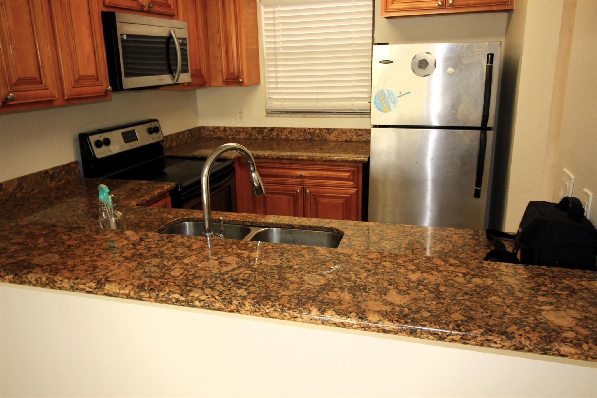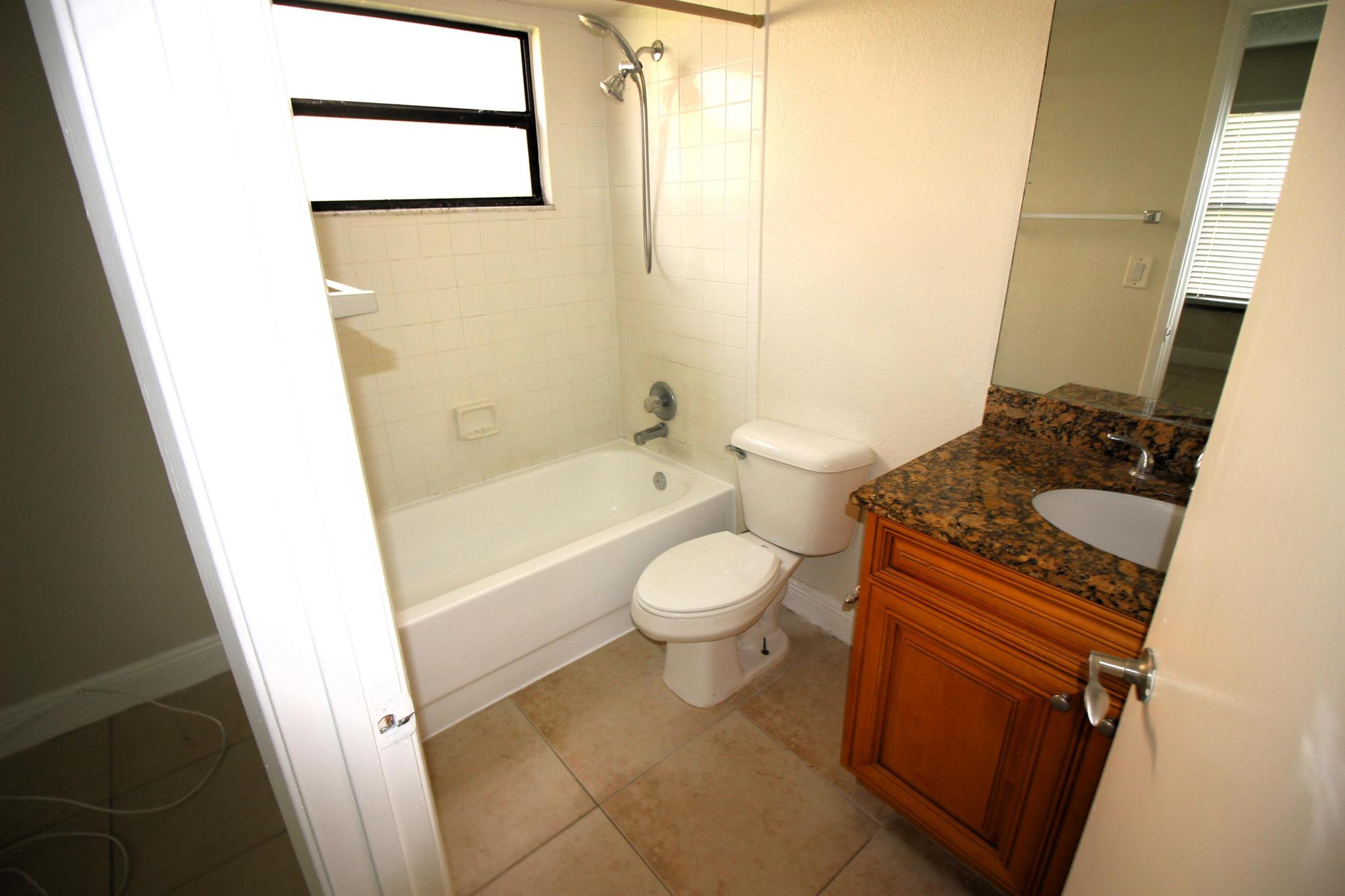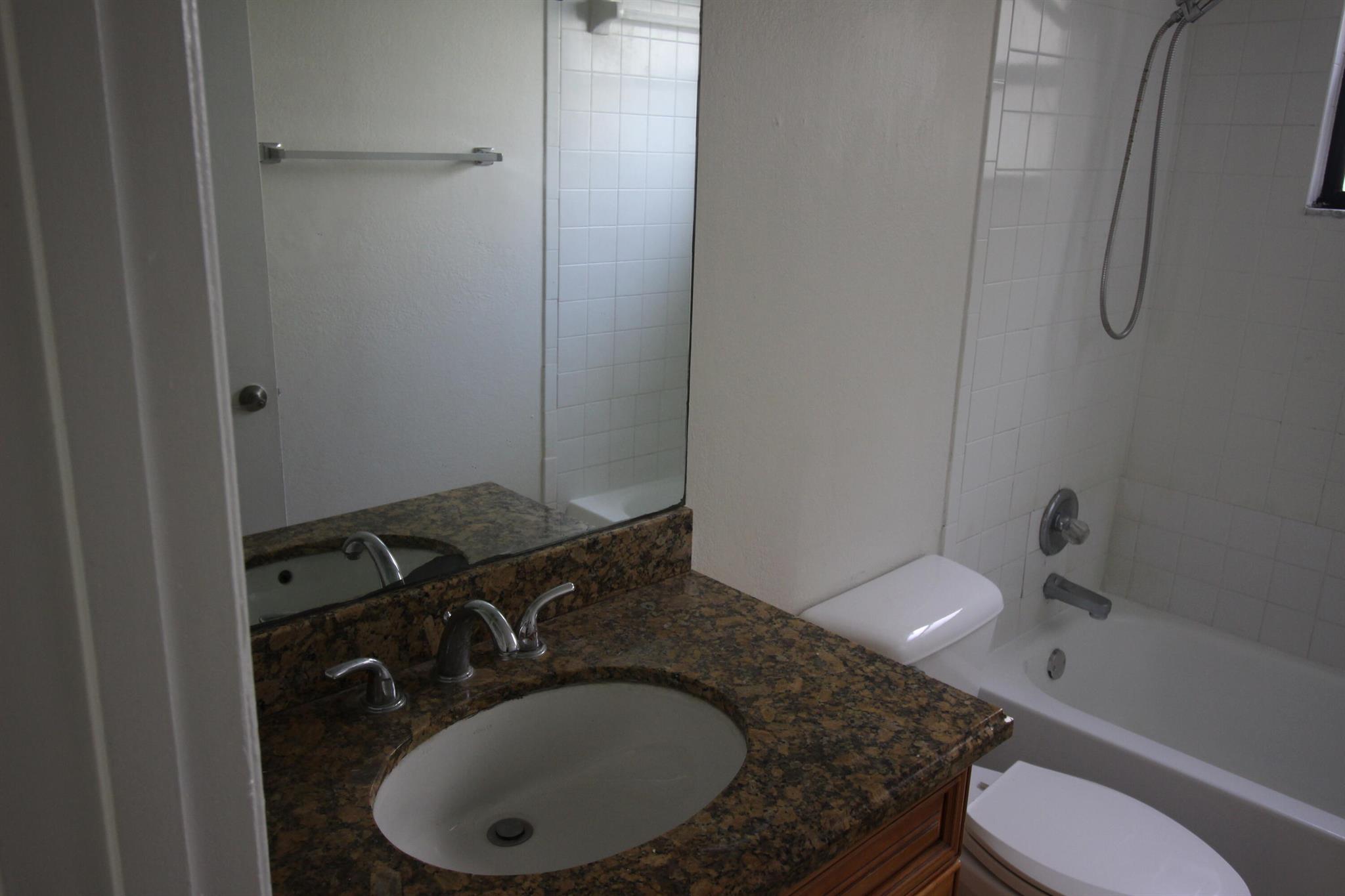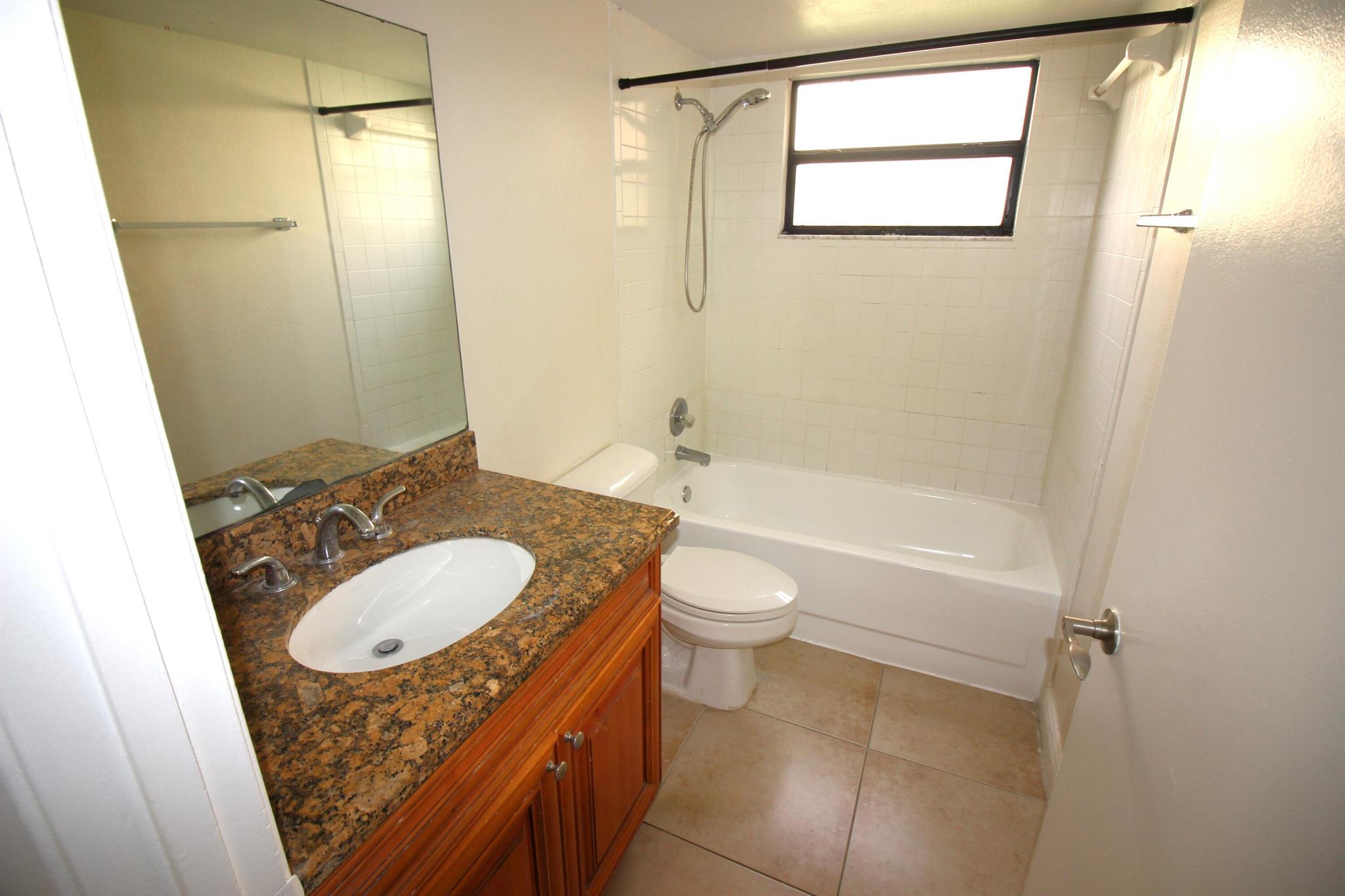 Peaceful beautiful community. The back faces the pond. Two bedrooms and two full bathrooms Clean and painted first floor. Includes full size washer & dryer in the unit. Granite counter tops in the kitchen and the bathrooms. Tile flooring throughout. The community offers swimming pool and tennis courts.