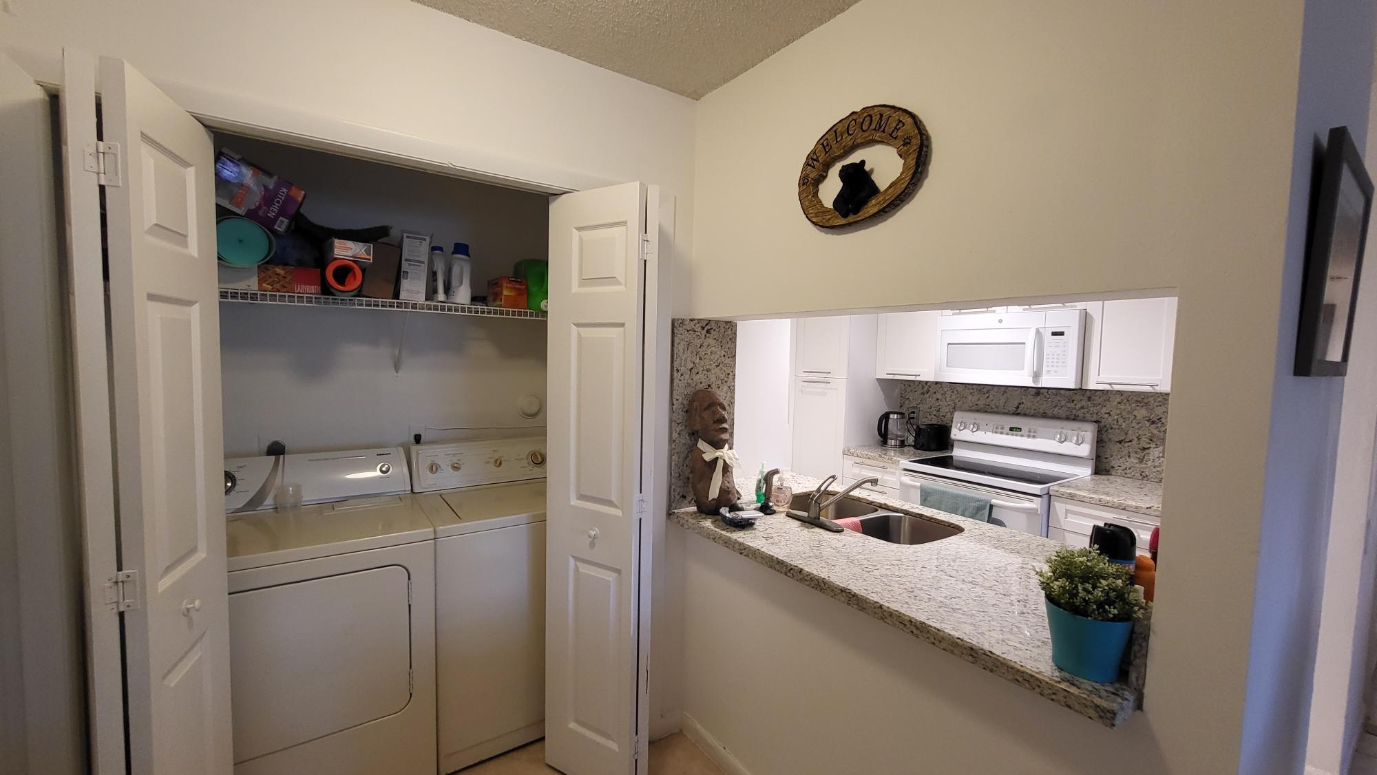 Welcome Home to his beautiful, cozy, move-in ready condo in gated community with roving security. Fully furnished 2/2 with Amenities: 2 pools, jacuzzi, 2 tennis courts, fitness center, jogging path w/ golf course views Ideal for winter home, students, flight trainees, or work relocation. Centrally located, just minutes to Turnpike & I-95, close to beaches, shopping & dining. Enjoy convenience, comfort, and community living in Palm Aire Gardens!