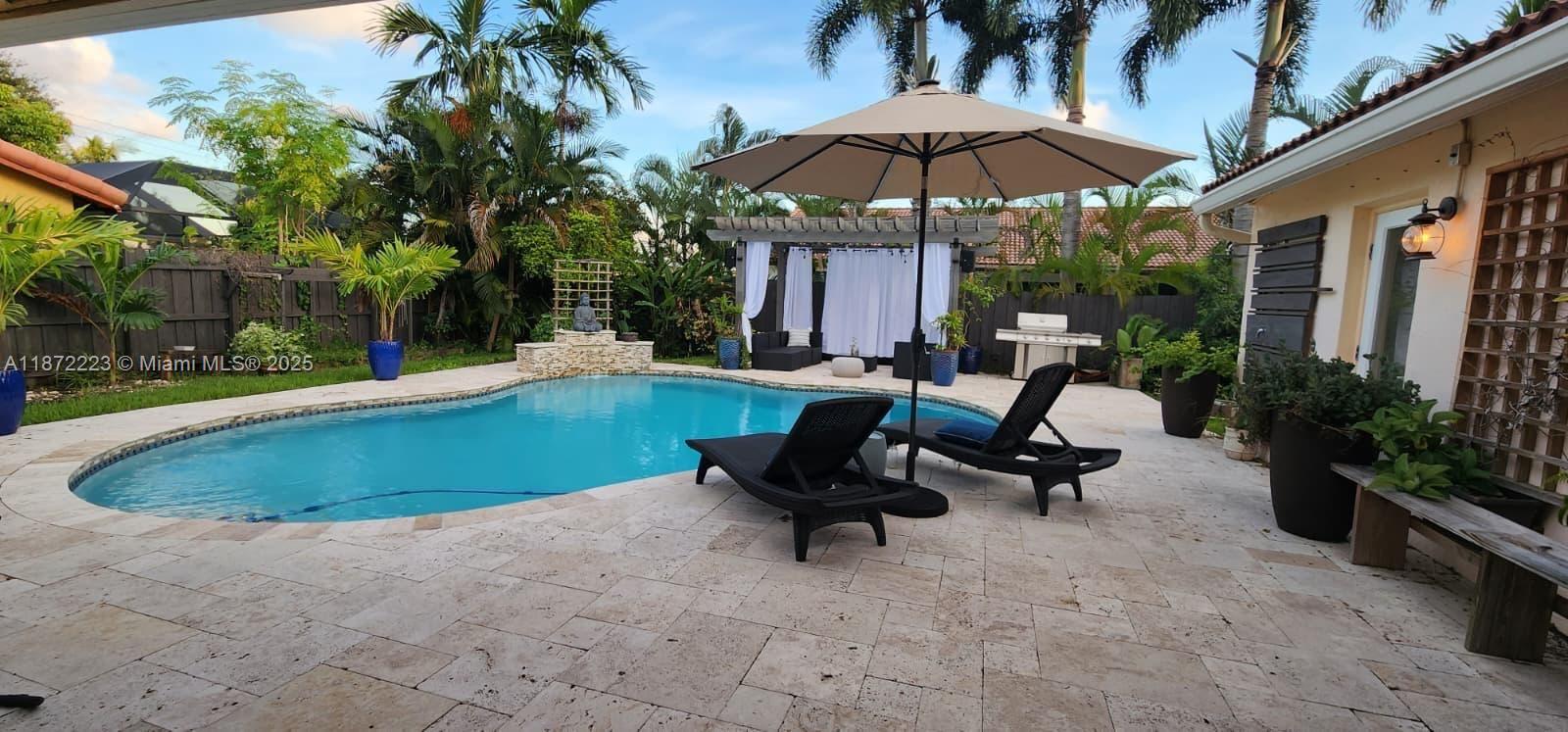 Elegant 4BR/3BA home with a versatile flex room in a highly sought-after A+ school zone. Split floor plan features a private master suite, separate guest suite, and flexible space ideal for office, nursery, or studio. Outdoor living shines with a saltwater pool, LED lighting, fountain, firepit, and pergola. Modern upgrades include EV charger, generator transfer switch, tankless water heater, new AC, and parking for six plus two-car garage. Conveniently located near I-75, 595, and Turnpike. Pool and lawn care included.