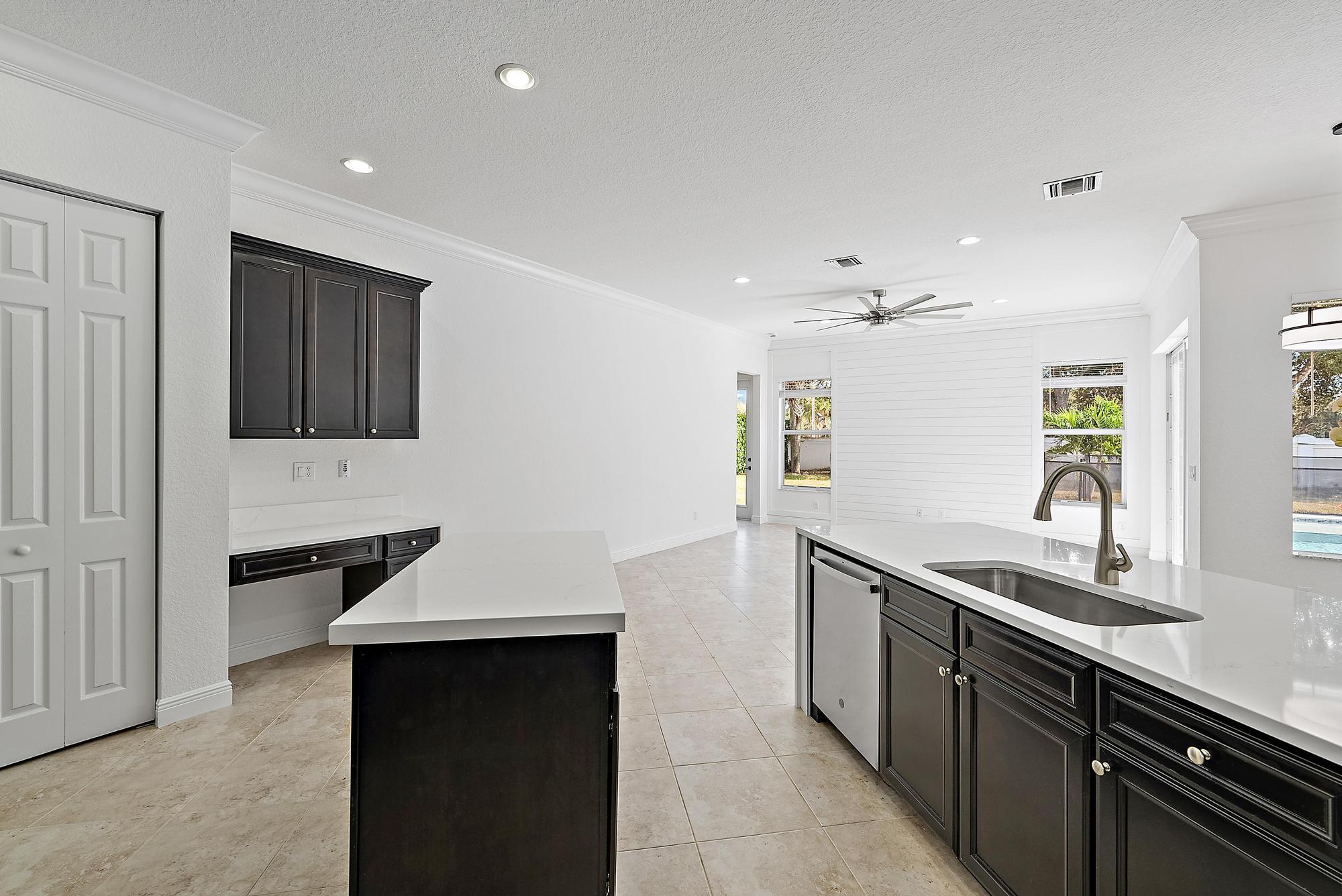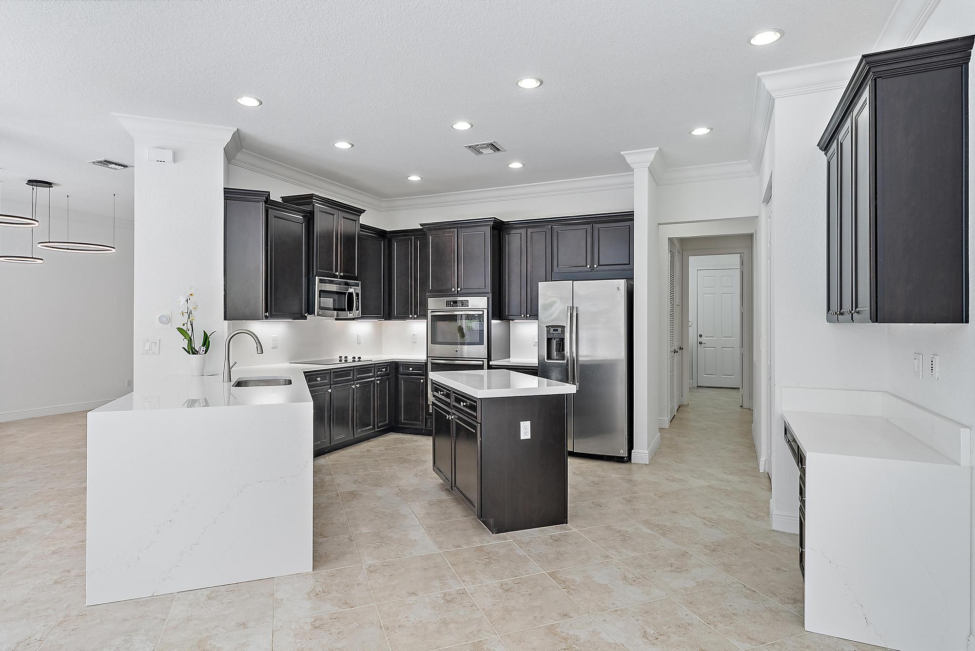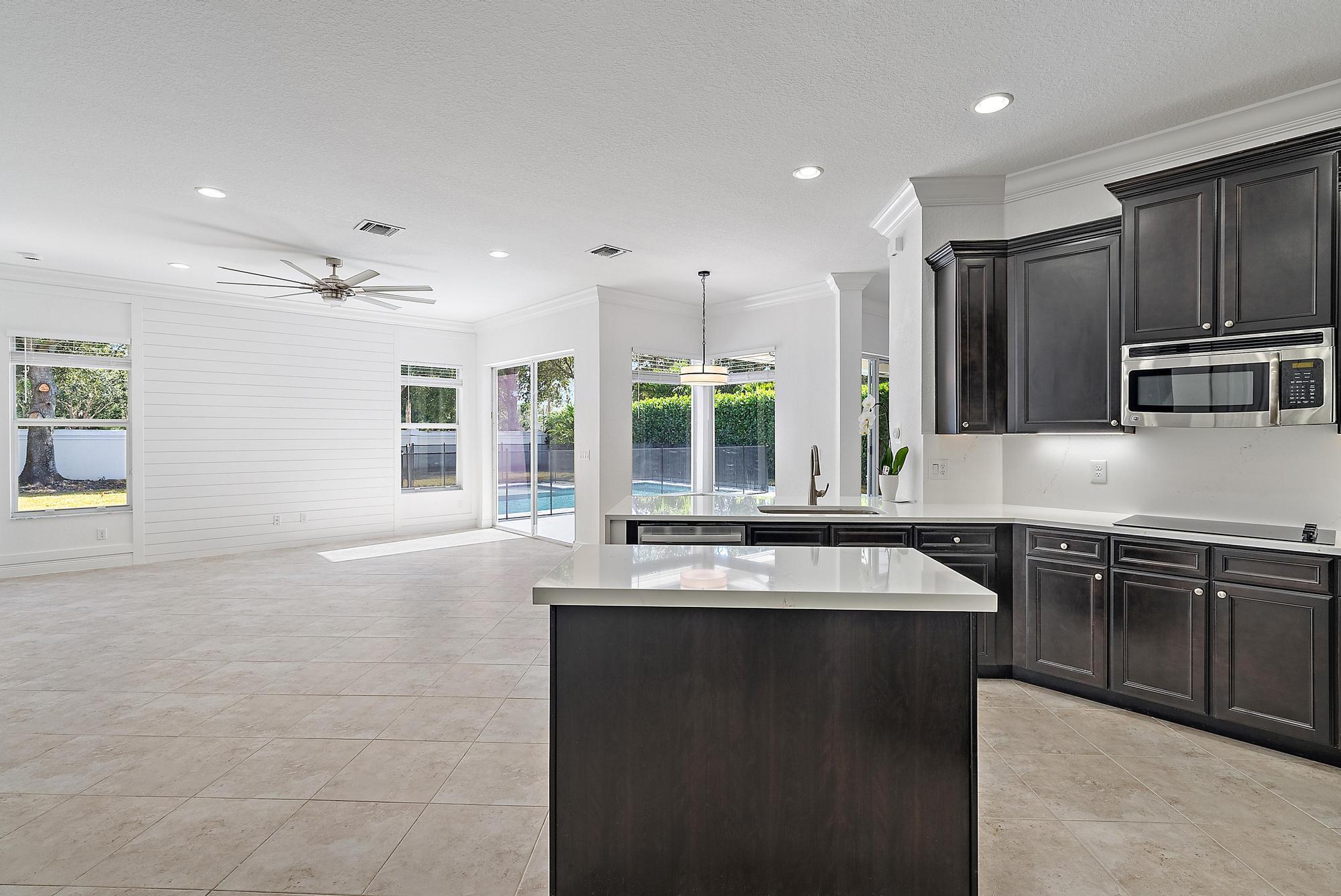 Beautiful CBS ALL IMPACT WINDOWS Single Story 4 Bedroom + Office/Den, 3 Full Bathroom, 3 Car Garage POOL House. Nestled in Jupiter, In The Gated Community Of ''Rialto''. This Gorgeous Home Offers A Wonderful Split Bedroom Floor Plan; Which Includes A Spacious Master Bedroom With His & Hers Walk In Closets and A Large Ensuite Bathroom With Dual Vanities. The 3 Bedrooms Are All Very Spacious and Include Walk in Closets. The Kitchen is Equipped with SS Appliances, 42'' Raised Saspodilla Wood Cabinetry, NEW KITCHEN QUARTZ COUNTERTOPS BEING INSTALLED. This Great Design Offers An Open Kitchen With a Large Great Room & A 4th Bedroom