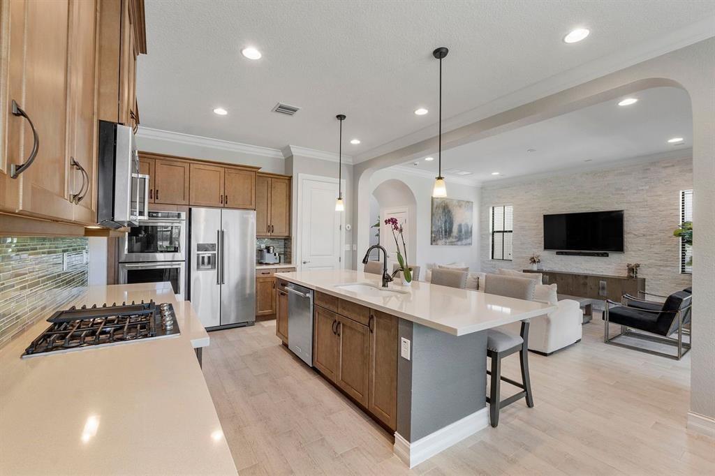 One of the best deals in Parkland! Turn-key 5 bedroom 3.5 bathroom home in one of the most desired neighborhoods. This incredible resort style home has a salt water pool with a large sunshelf, a porcelain and turf back yard, beautiful pergola, outdoor summer kitchen and is fully fenced and landscaped for complete privacy. Interior features wood-look tile throughout with custom California closets in the master and bedroom 2. There's no carpet in this home! Garage has custom wall cabinetry, overhead storage rack and epoxy flooring. This home is in immaculate condition and will not last.