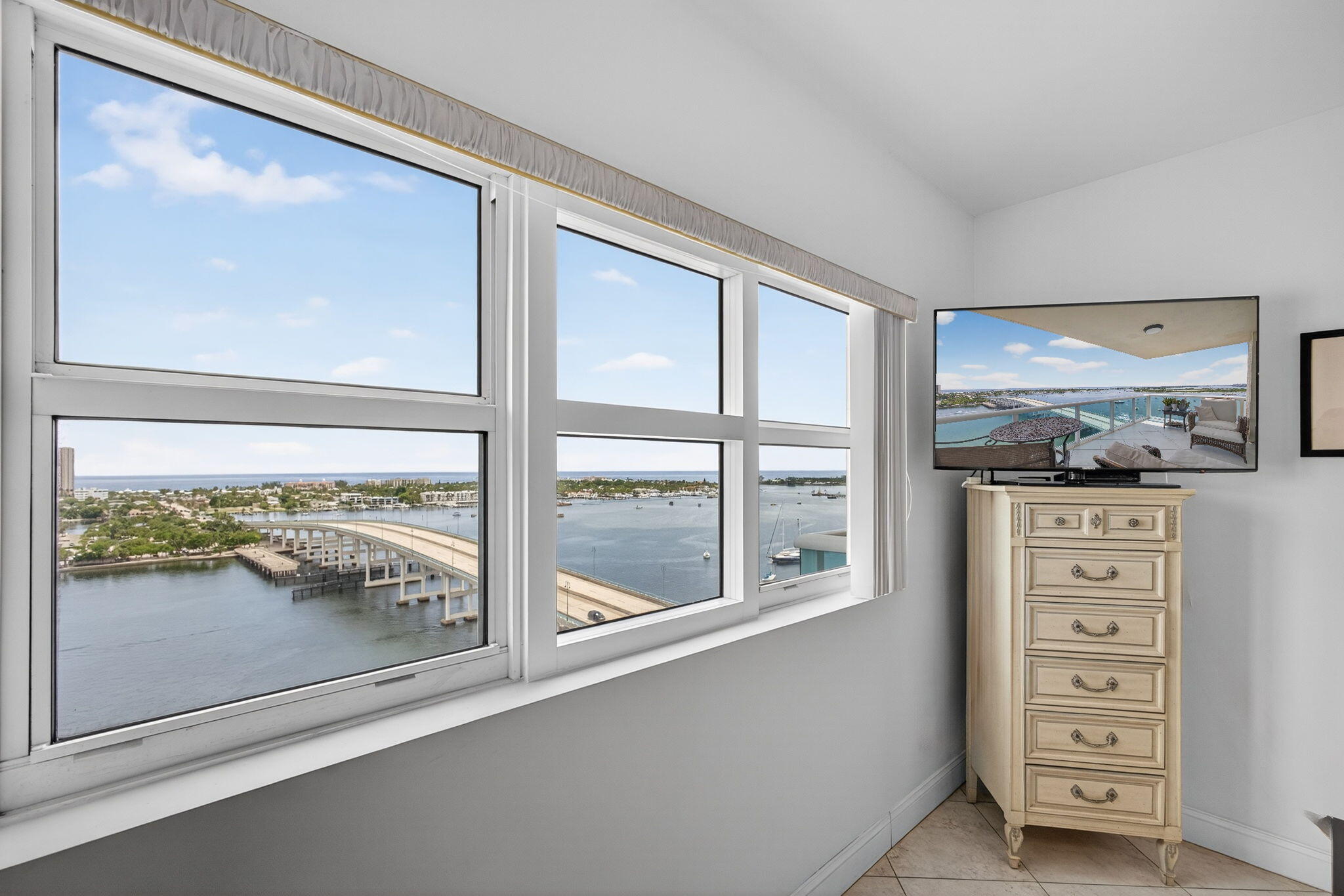 Breathtaking views on the corner unit 17th floor direct east facing Intracoastal condo. This 3 bed 3 bath condo has fantastic natural light and fabulous view of Peanut Island, Palm Beaches, and the Inlet. Coastal Decor bring that Florida relaxed vibes with water views from every room.Newly renovated rooftop pool deck with BBQ area and Jacuzzi Hot tub for you to enjoy this upcoming season! New PickleBall , Bocce and Tennis Courts- Large Gym, Sauna and Steam room. Manned gated community with valet service and a Marina adjacent to the property. Minutes to the Beach, Airport, Restaurants and Shops!