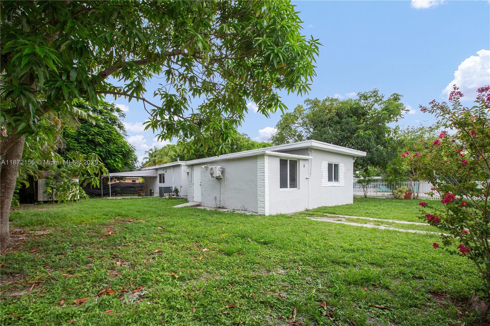Welcome to this beautifully remodeled single-family home situated on a large corner lot, offering plenty of space for parking and entertaining. This home features 3 bedrooms and 1 bathroom, with updated kitchen and bathrooms, sleek finishes, and recessed lighting throughout for a bright, modern feel. Enjoy the comfort and security with hurricane impact windows plus the convenience of an in-unit washer & dryer. Additionally, the property also includes an efficiency with private entrance and bathroom—perfect for extended family, guests, or a private workspace.