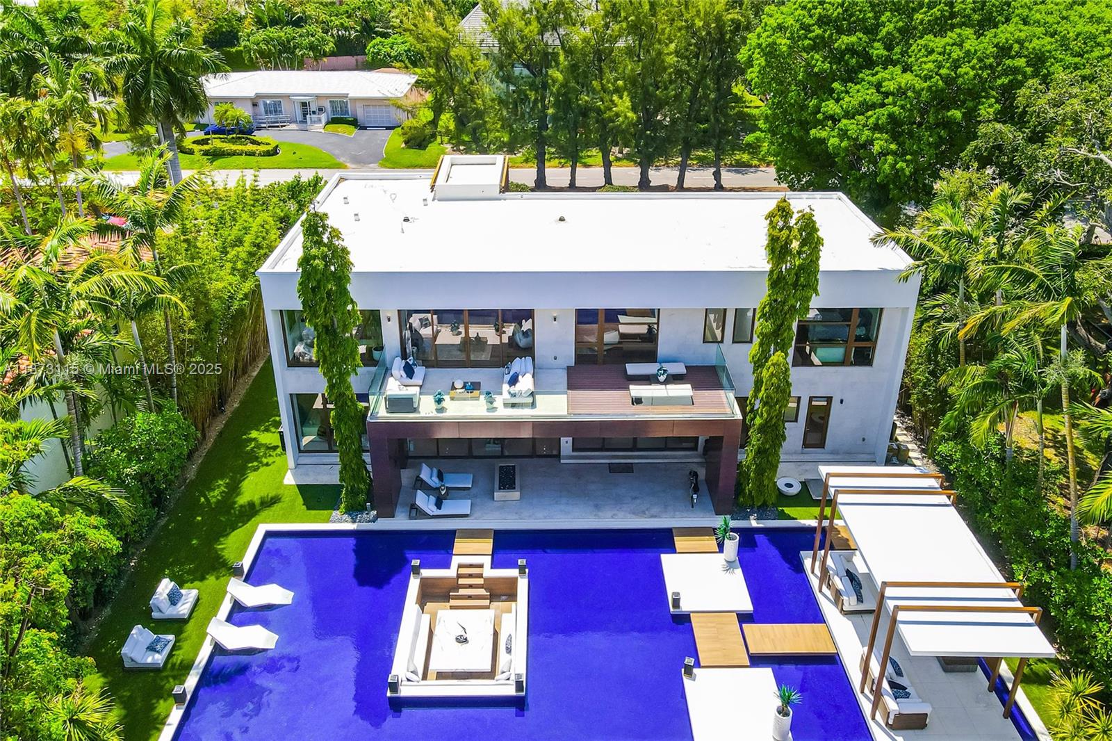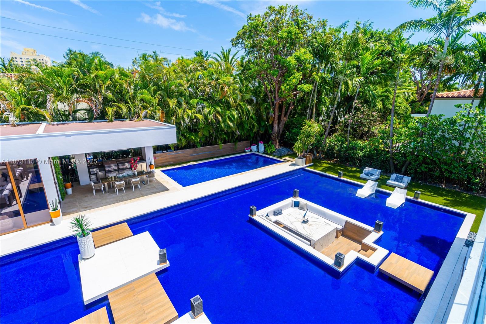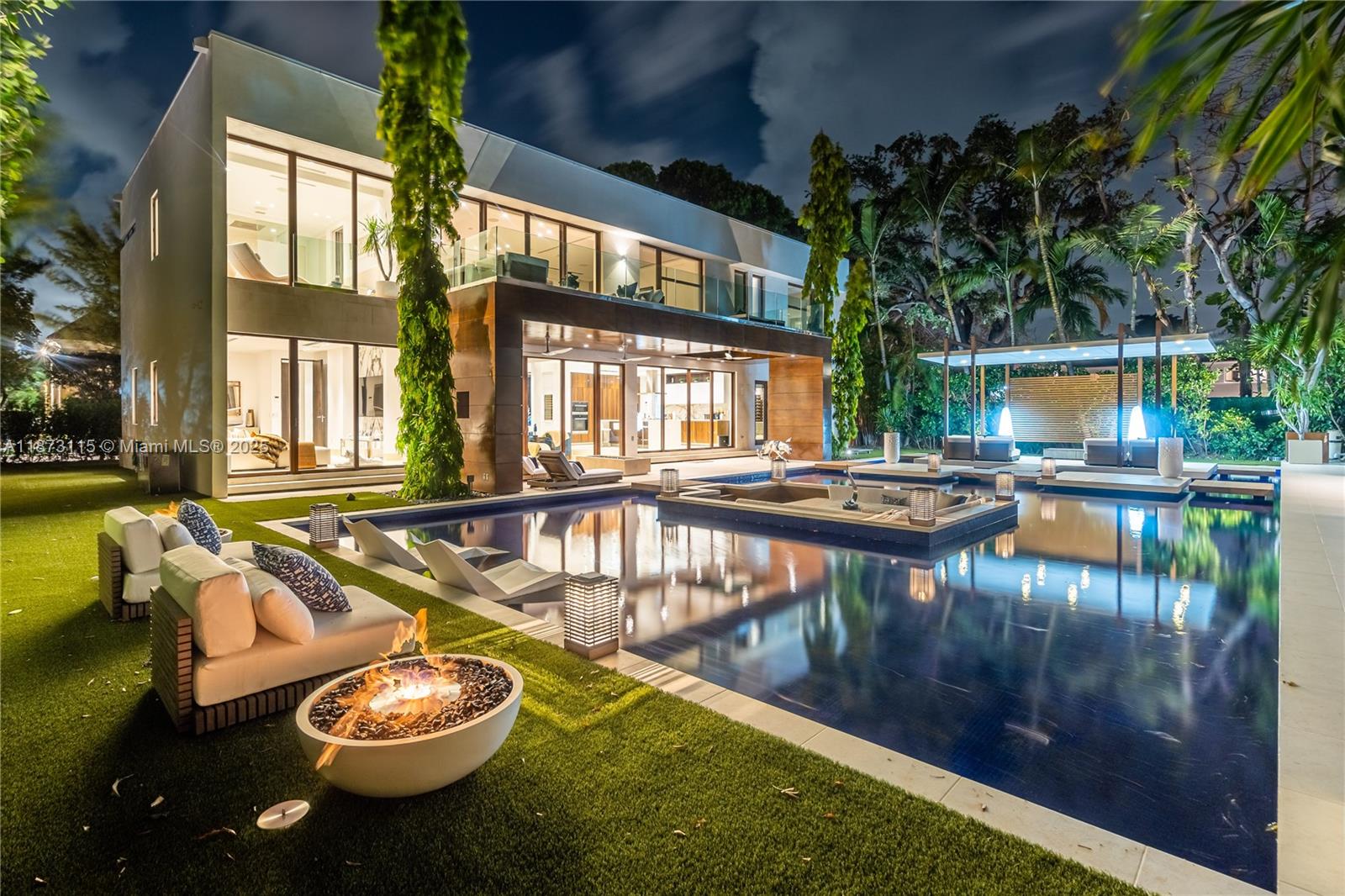 Exquisite modern residence is a stunning expression of contemporary luxury in one of Miami Beach's most exclusive neighborhoods. Spanning 5,119 SF + 14,300 SF lot, home features 4 beds/4.5 baths & open, light-filled design w/ bespoke detail throughout. Great room is framed by floor-to-ceiling glass, seamlessly connecting to lush landscaping by Lewis Aqui. Marble & quartz flooring on the 1st level transition to warm oak upstairs, complemented by elegant Delta lighting. Snaidero kitchen w/ Miele appliances, double ovens + sleek cabinetry. Spaces include office, den, pool house + gym. Outdoors, shimmering pool, summer kitchen & dining areas provide the perfect setting for entertaining. The home's refined aesthetic is enhanced by Prodema cladding, while a full-house generator adds convenience.