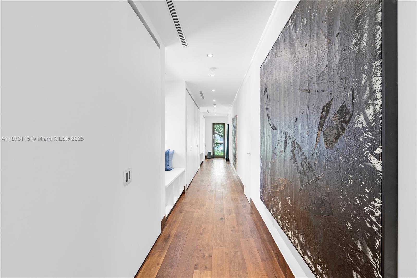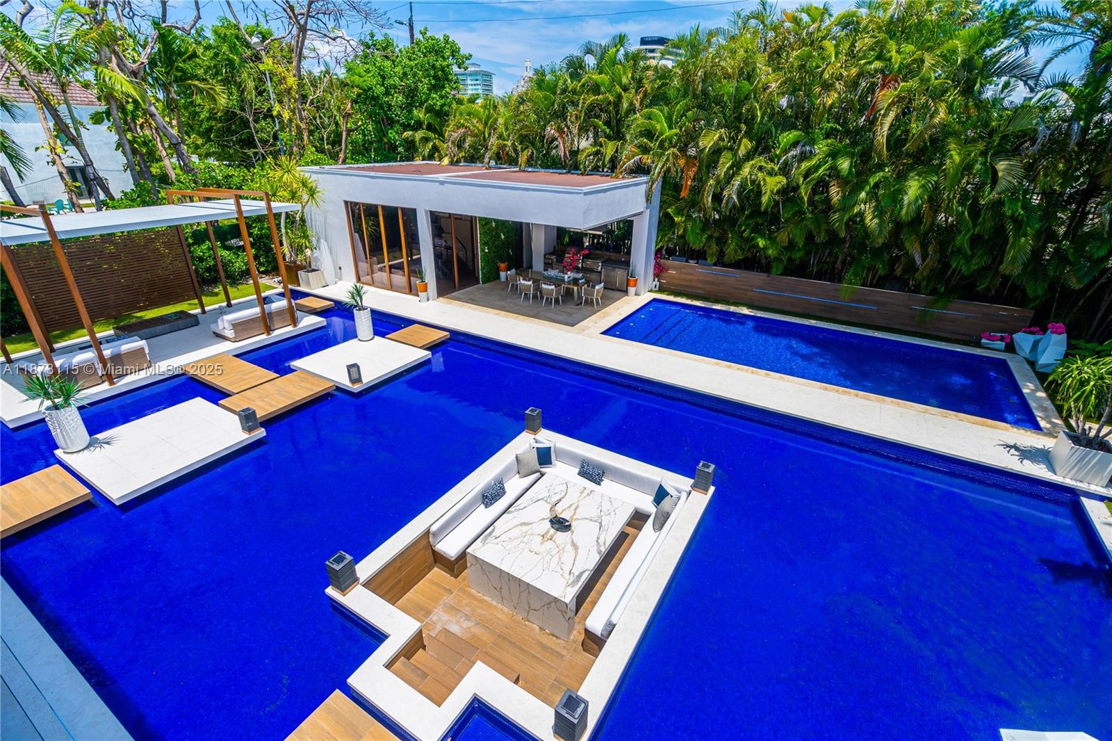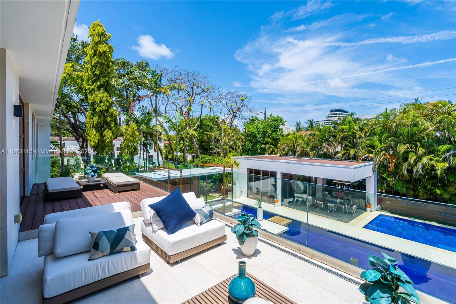 Exquisite modern residence is a stunning expression of contemporary luxury in one of Miami Beach's most exclusive neighborhoods. Spanning 5,119 SF + 14,300 SF lot, home features 4 beds/4.5 baths & open, light-filled design w/ bespoke detail throughout. Great room is framed by floor-to-ceiling glass, seamlessly connecting to lush landscaping by Lewis Aqui. Marble & quartz flooring on the 1st level transition to warm oak upstairs, complemented by elegant Delta lighting. Snaidero kitchen w/ Miele appliances, double ovens + sleek cabinetry. Spaces include office, den, pool house + gym. Outdoors, shimmering pool, summer kitchen & dining areas provide the perfect setting for entertaining. The home's refined aesthetic is enhanced by Prodema cladding, while a full-house generator adds convenience.
