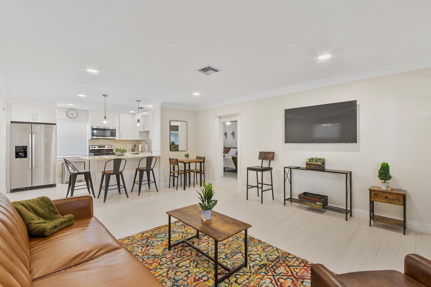 Walk to the beach! Located on a cute quiet street, this fully furnished, newly renovated 2-Bedroom, 1-Bath unit offers central A/C, Impact Windows, Stainless Steel Appliances + additional locked storage area with Washer and Dryer. Water included. Minutes to Premier Golf, Downtown and Beaches.