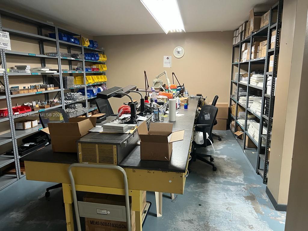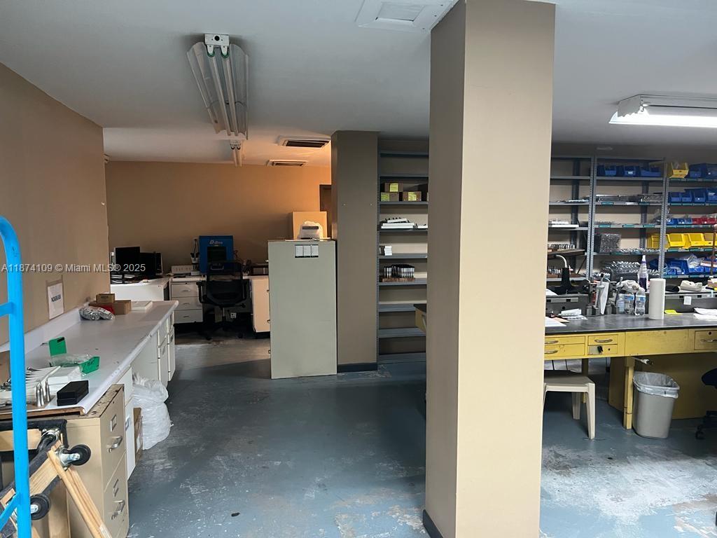 1st Floor Warehouse: 3,300 +/- sq.ft. of opened space, 18 ft height with an office in the reception area 2nd Floor Offices: 1,650 +/- sq.ft. 1 large executive office/ conference room, 1 regular size office and a large open area with 2 additional offices. 3-Phase- 600 amps electric system 2 central A/C’s 5,000 and 12,000 tons Air compressor lines in warehouse area Roll-up door with City assigned loading zone on side street Insulated walls and ceiling in the warehouse Zoned: 7100 light industrial/manufacturing, as per the City of Sweetwater Type of businesses that can fit in the space: light distribution, manufacturing, training center, offices, retail, some medical and many other. Can be leased with furniture and warehouse racks; or vacant