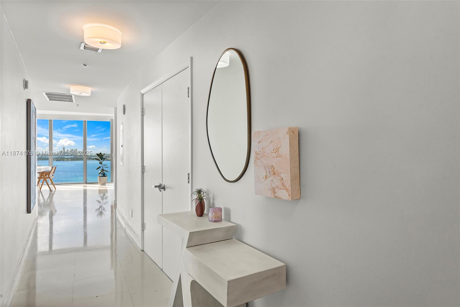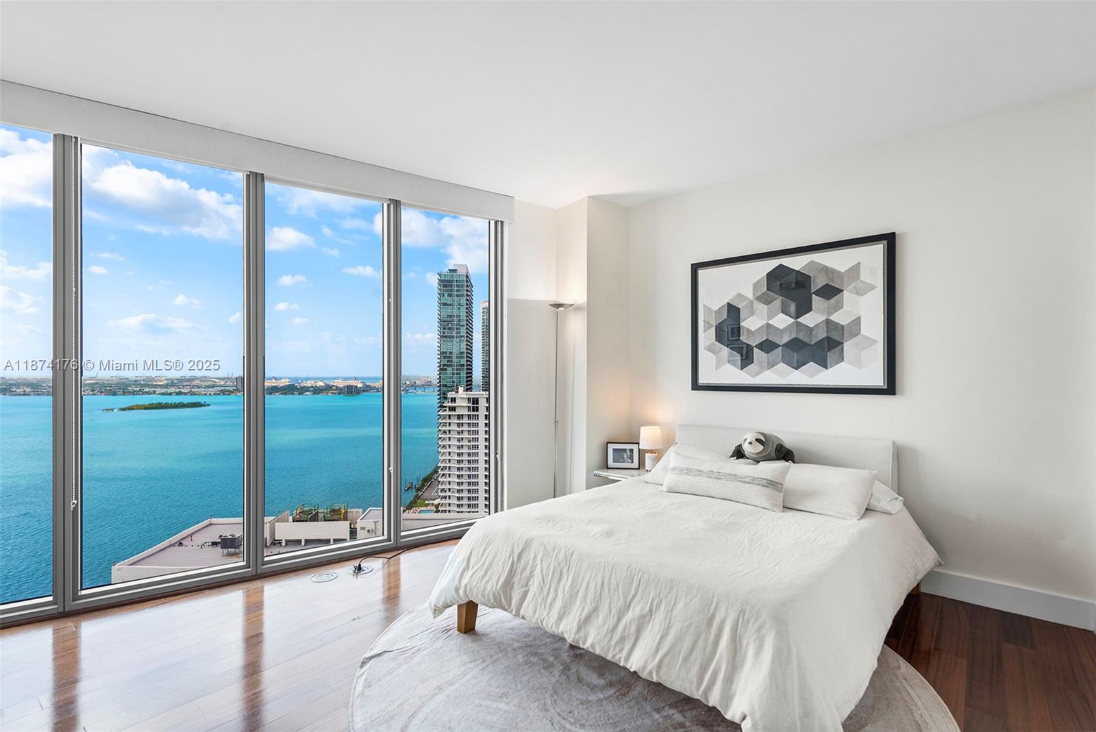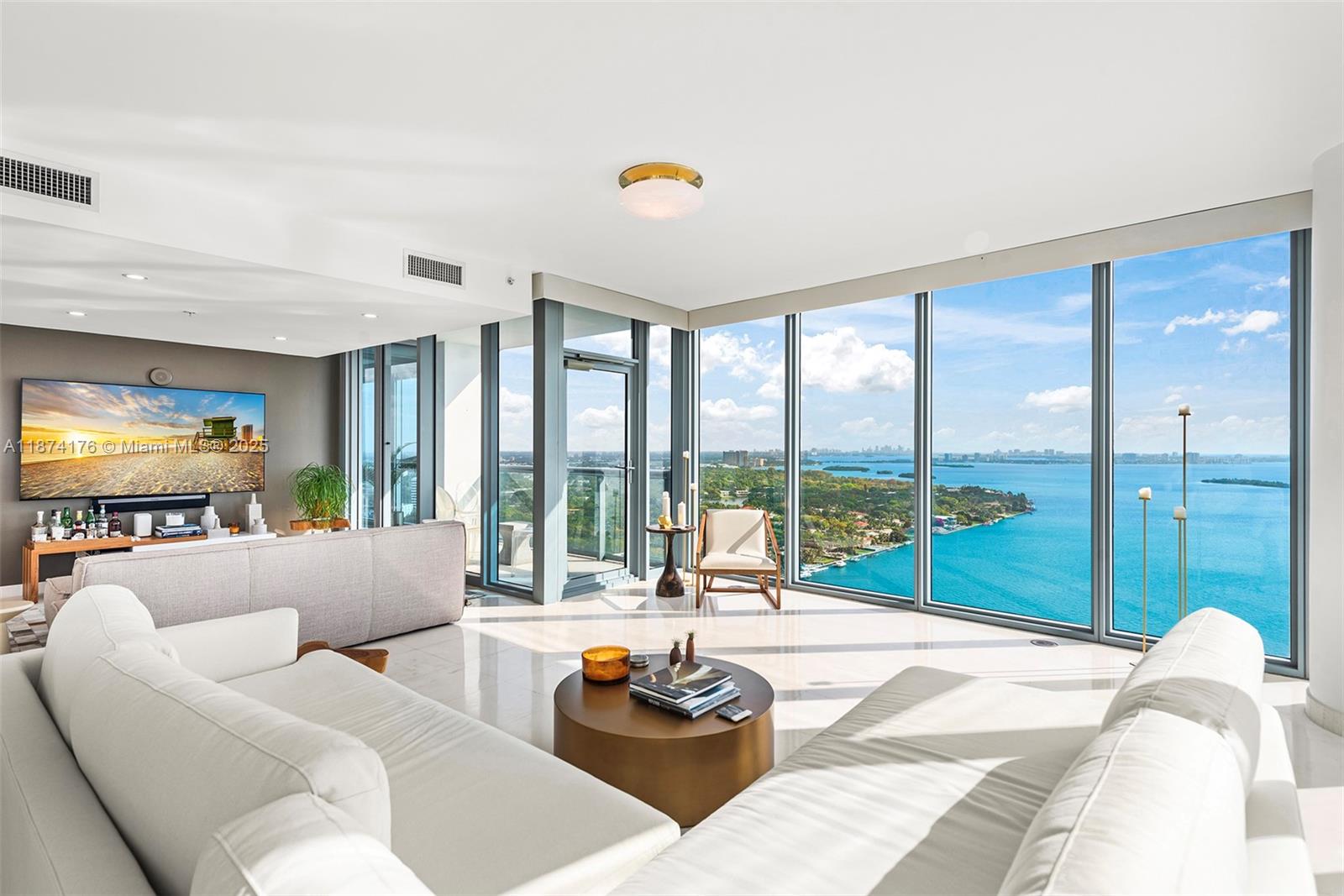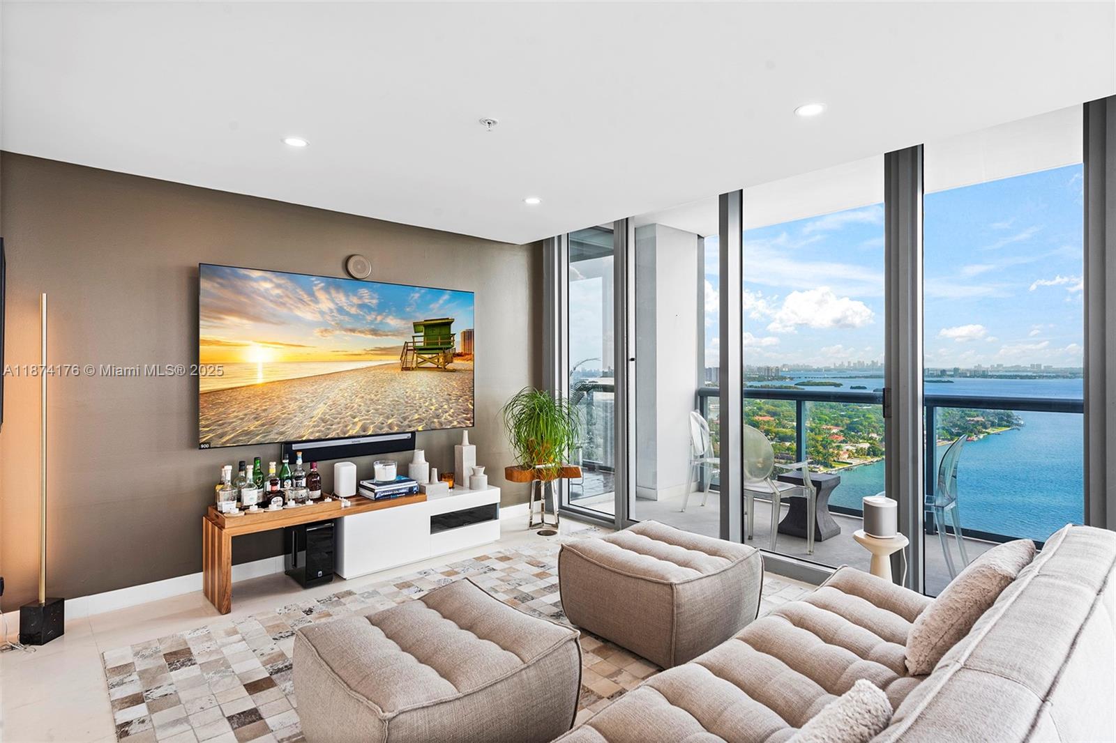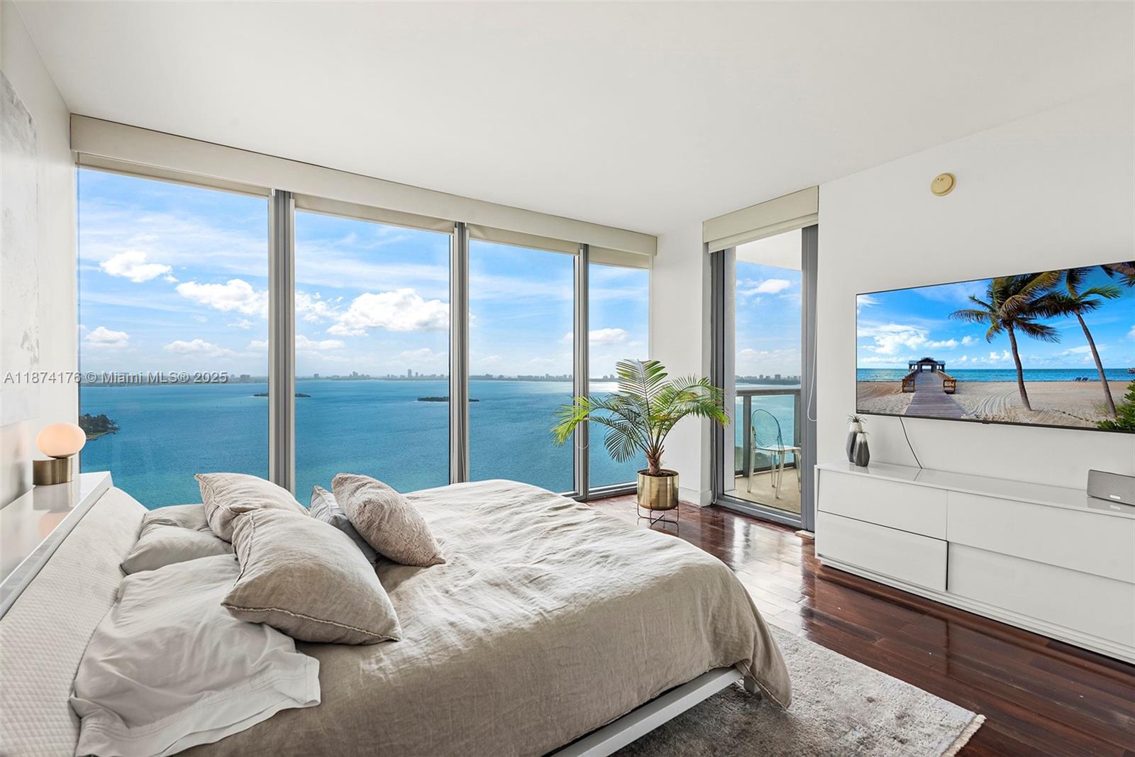 Step into elevated waterfront living with this stunning 2-bedroom, 2,5-bath waterfront residence located in the heart of Edgewater, just steps from Midtown and Design District. This is the largest non-penthouse unit at Blue Condo, offering panoramic views of Biscayne Bay and Miami Beach through floor-to-ceiling windows in every room. The open-concept layout features a modern kitchen with granite countertops, custom built-in closets, and en-suite bathrooms in both bedrooms. Ideally situated minutes from Miami Design District, Wynwood, Brickell, Miami Beach, and MIA Airport. Building amenities include 24-hour concierge, valet parking, two pools, a fitness center, sauna, barbecue area, movie theater, business center, party room. Resort-style living at its finest!