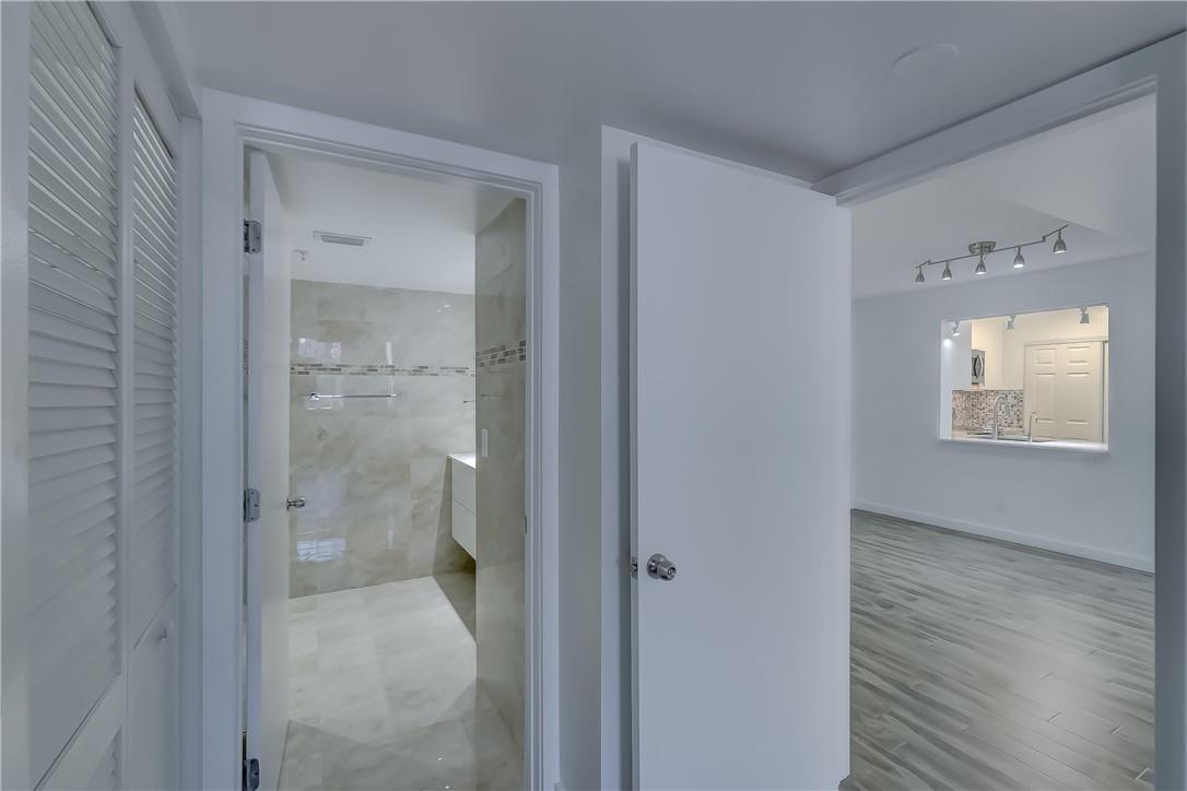 The complex is in a great location, east of US1, close to the beach, airport, and shopping. The unit has tastefully renovated bathrooms and kitchen, newer appliances, laminated floors, new indirect lighting in the living room area. There is a walk-in closet in the master bedroom and a utility closet for the washer and dryer in the kitchen. Min Credit Score 650
