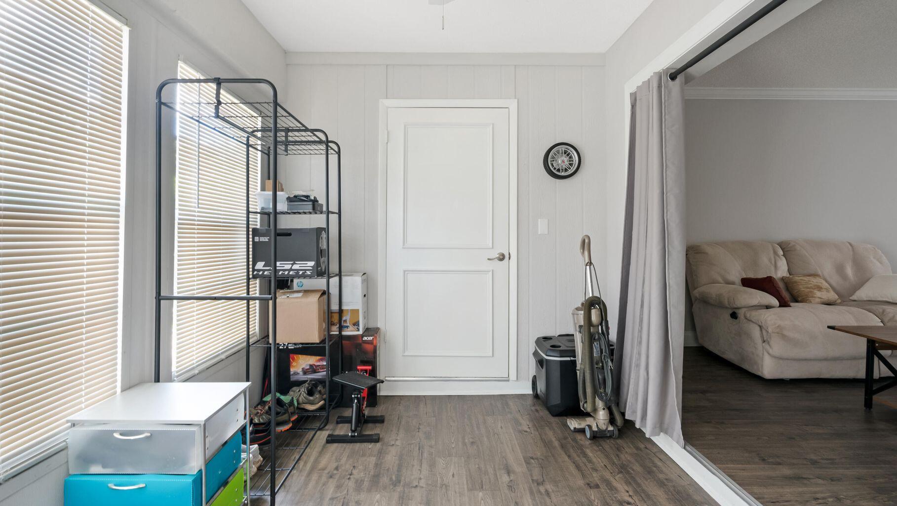 This fully remodeled villa presents a stunning kitchen and bathroom featuring premium wood cabinets, granite countertops, and upgraded white appliances. Elegant vinyl plank flooring runs throughout, accented by fresh baseboards, knock-down ceilings, and tasteful crown molding. Enhancements include a new hot water heater, upgraded bathroom vanity, shower, and toilet, along with a modern electrical panel, plumbing, exterior door, and ceiling fans. The enclosed porch has been opened to expand living space, and interiors showcase fresh paint and designer finishes throughout.
