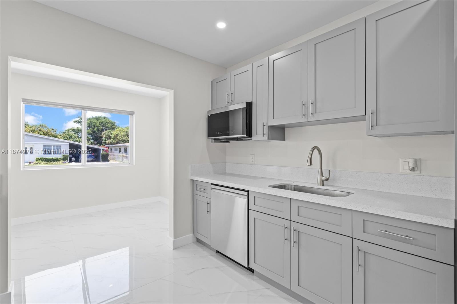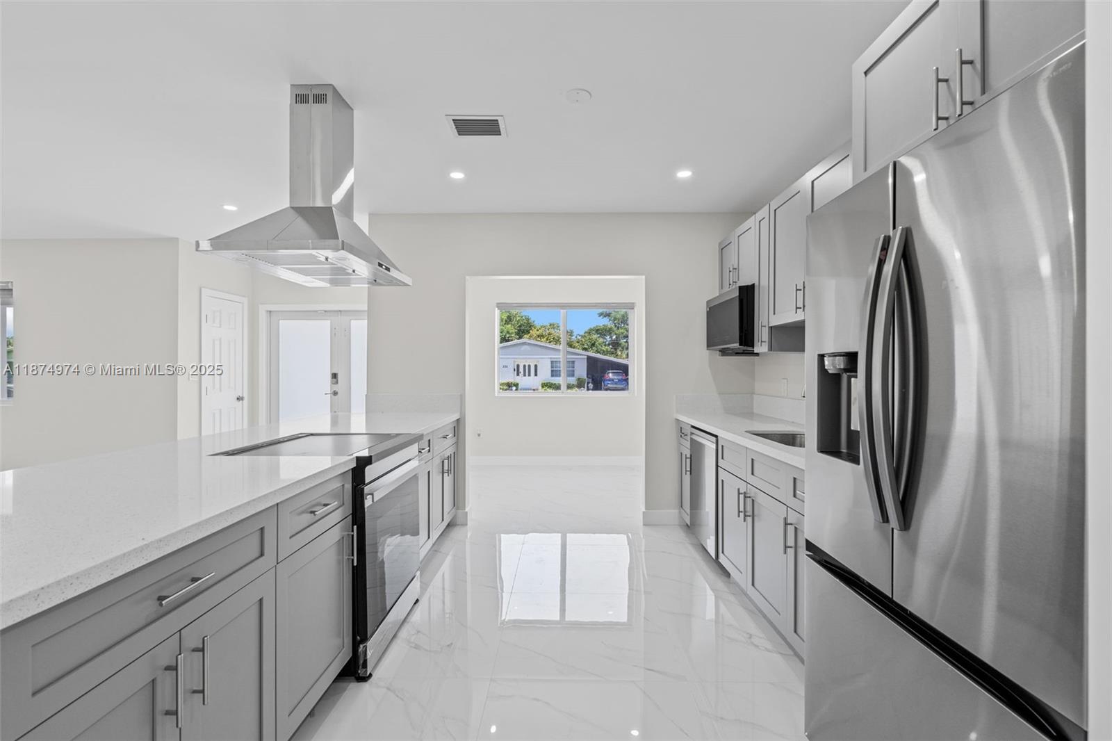 Fully remodeled 3BR + flex (easy 4th) / 2BA single-family home with ~2,000 SF of living area on a quiet street. Sleek, sun-filled open layout flows to a modern kitchen with oversized island cooktop, custom cabinetry, and brand-new stainless-steel appliances. All NEW: roof, hurricane-impact windows & doors, fence, window blinds, and a security system with cameras. Dedicated laundry room with storage. Covered carport plus driveway parking. Expansive private backyard with mature mango tree—great for relaxing or entertaining. Minutes to Downtown Fort Lauderdale, Las Olas, beaches, and FLL airport. Move-in ready and easy to show—schedule your tour today.