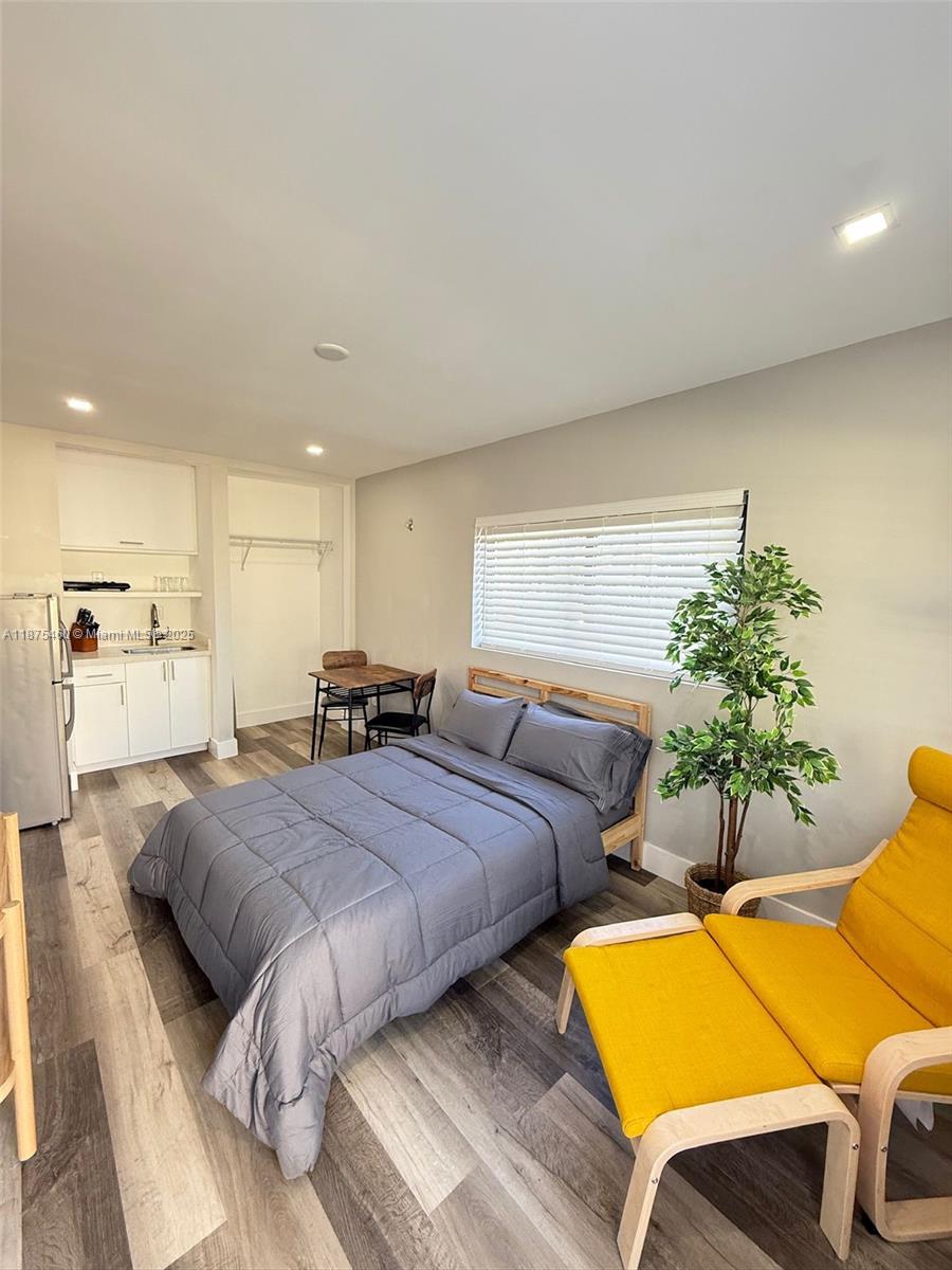 Spacious studio apartment with kitchenette, assigned parking space, and private bathroom. Shared laundry room. Utilities (water and internet) are included.