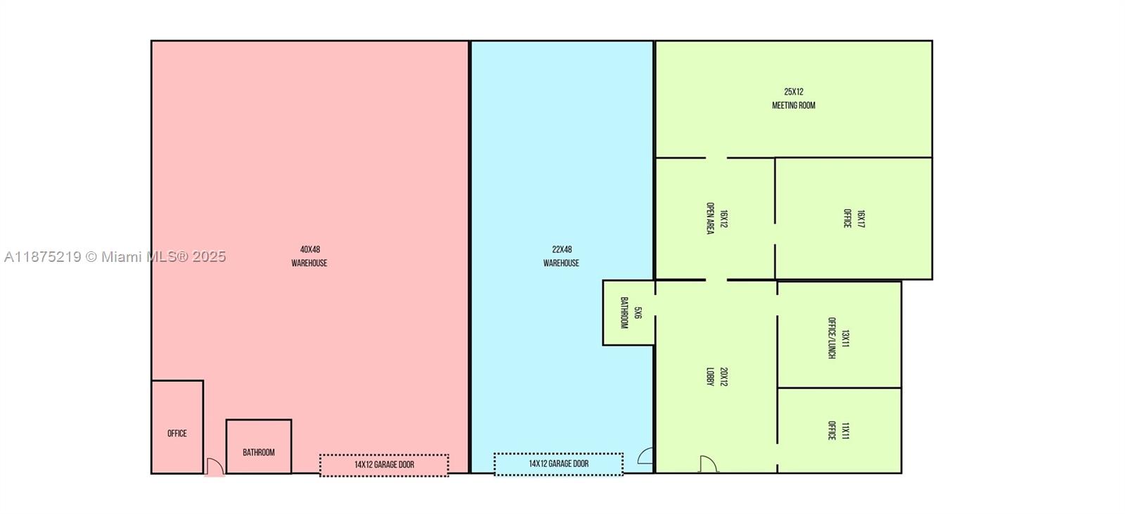 Prime office space available inside warehouse setting with over 1,300 SF under A/C. Recently updated with new tile flooring throughout. Flexible layout offers up to 3 private offices (2 large enough for multiple desks), a spacious conference/meeting room, lobby/reception area, open workspace, lunch/break room, and bathroom. Great opportunity for a professional or growing business. See estimated floorplan in MLS images. **This lease is for approximately 1,300 square feet of office space only; no warehouse space is included, and tenant will not be leasing the entire building.**