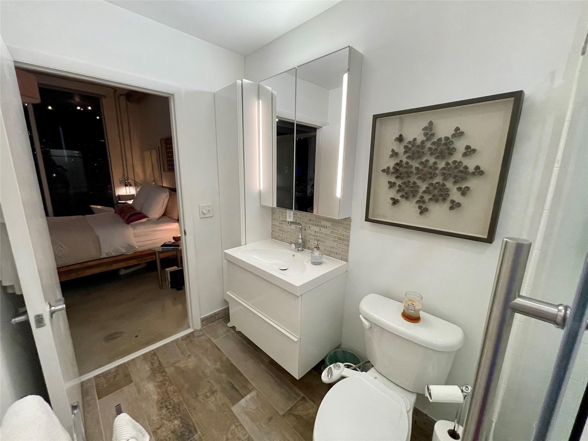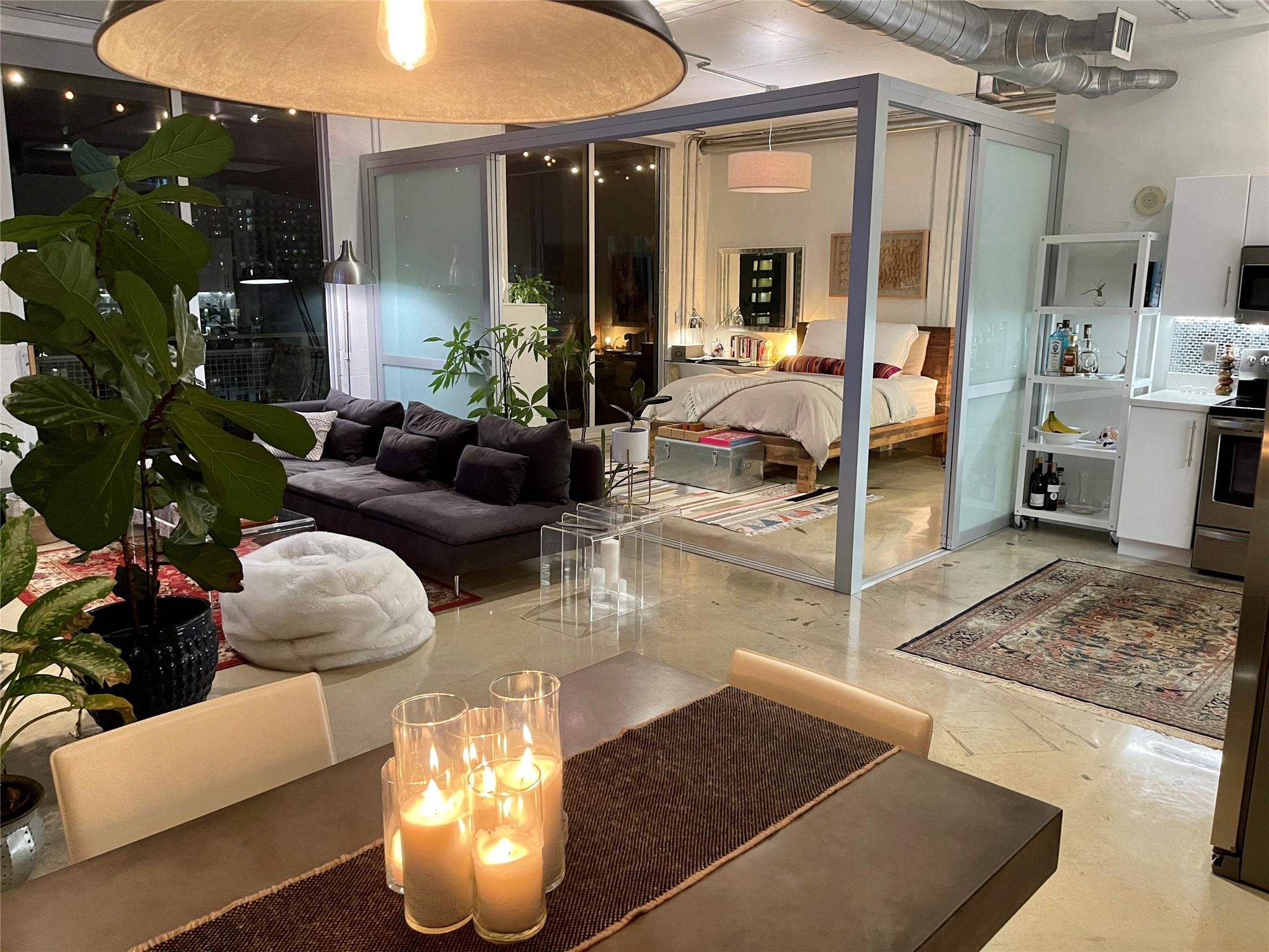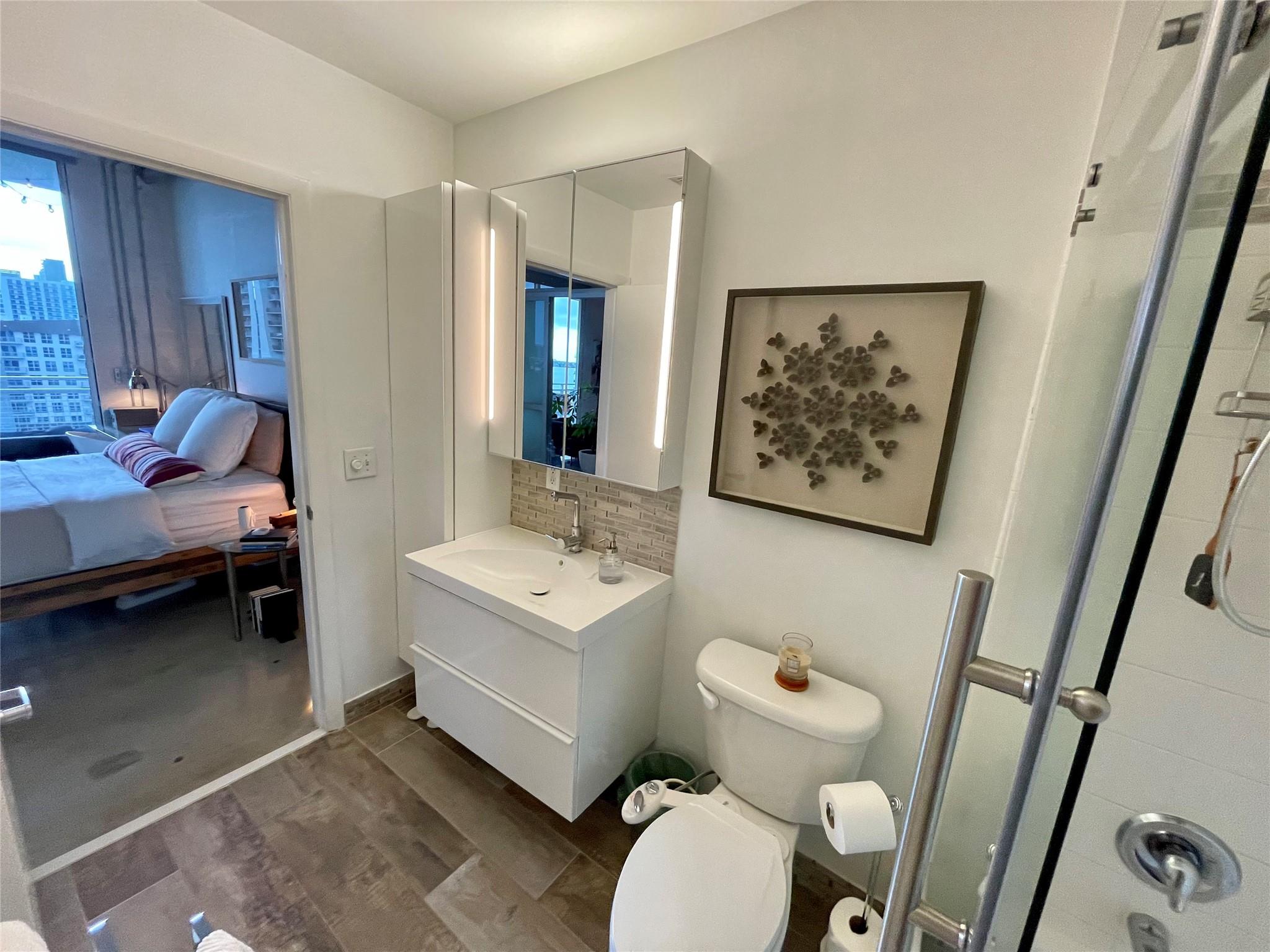 Unique artistic industrial loft-style 2/2 condo located in trendy Edgewater close to everything. Boutique 62-unit building. South facing unit with lots of natural light. Beautiful views of the city skyline & bayside water views from every room. Upgraded kitchen & bathrooms, electric blackout blinds throughout with floor-to-ceiling windows, 10’ ceiling heights, custom retractable glass partition walls in the bedroom, polished concrete flooring. Open concept living space, perfect for entertaining. 35’ covered balcony runs entire length of the unit. Laundry in unit. New AC. Community heated pool, hot tub & fitness center. 1st floor assigned secure garage parking. Bike storage. Rent includes: Water, sewer, garbage, internet & Private storage locker. 8 minutes from Miami Int Airport.