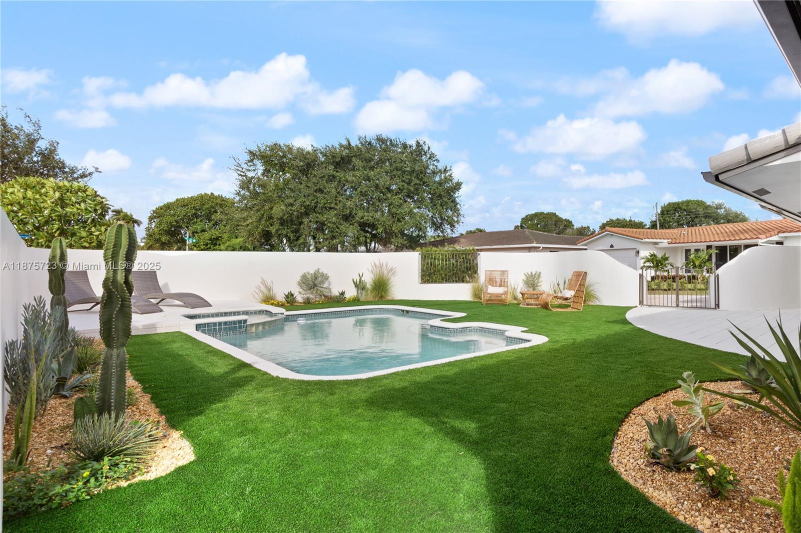 Welcome to this stunning Palm Desert mid-century modern oasis! Built from the shell in 2023, this immaculate home boasts a 4 bedrooms / 3 bathrooms split layout floor plan. Step inside and be greeted by the spacious living areas, flooded with natural light and adorned with sleek finishes. The heart of this home is the chef's kitchen, featuring top-of-the-line appliances and an abundance of storage space, making it a dream come true for culinary enthusiasts. Indulge in outdoor living at its finest with a pool and hot tub gracing the front yard, creating an idyllic setting for relaxation and entertaining guests. Located within walking distance to some of the best schools in the state, this home offers an ideal setting for families seeking a quality education for their children.