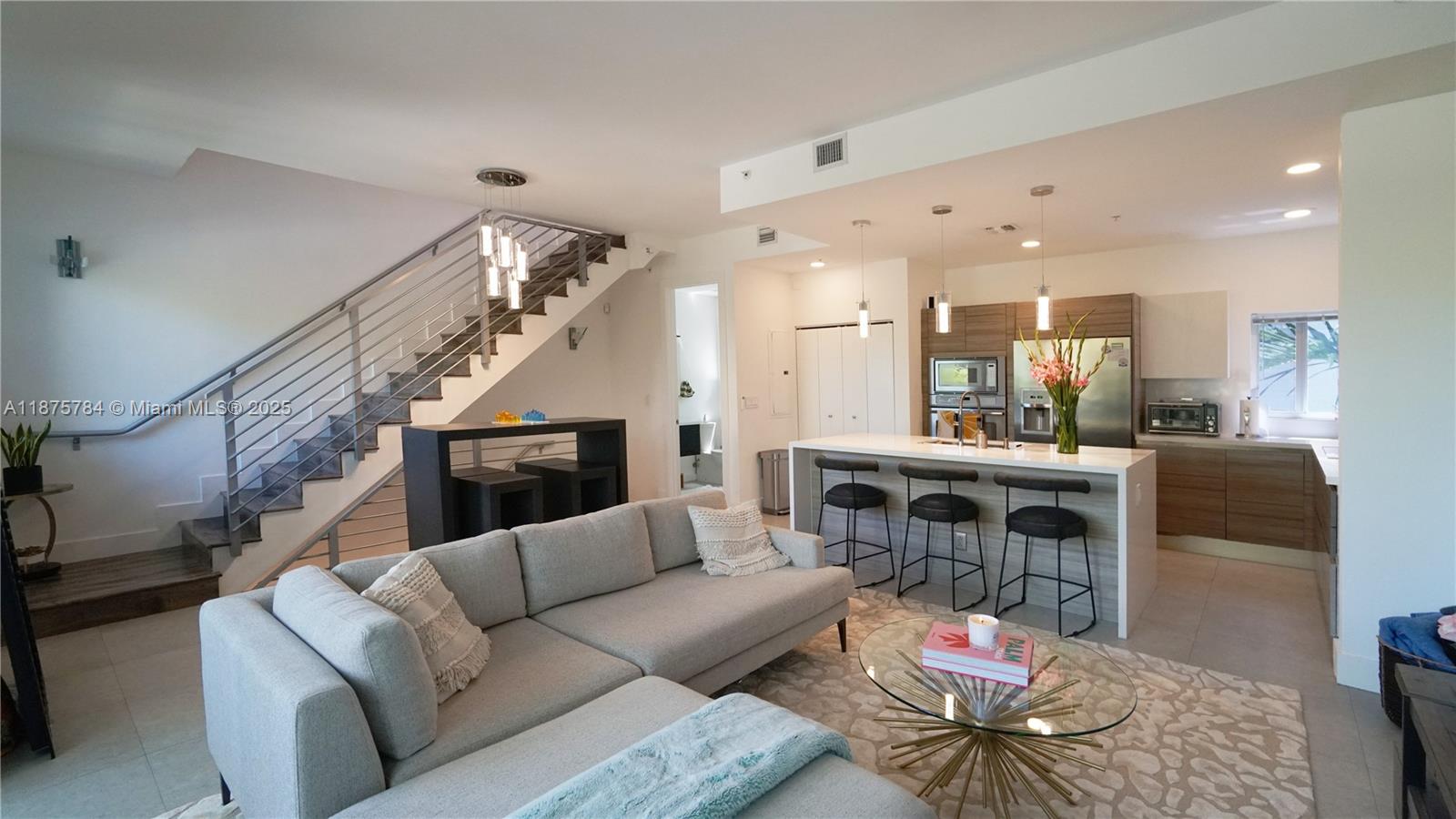 Victoria Park Contemporary loft-style home available for rent. Las Olas, bars, restaurants, Whole Food and shops within walking distance. Three floors of cool, modern design with oversized porcelain tile, Euro cabinetry and sleek fixtures. This floor plan offers a foyer entry with a ground level bedroom suite and patio courtyard access. The spacious master suite and separate loft are on third while the kitchen, laundry and dining/living area are mid-level. Both the living and master have balcony access. A spacious, 1.5 car garage affords covered parking and additional storage.